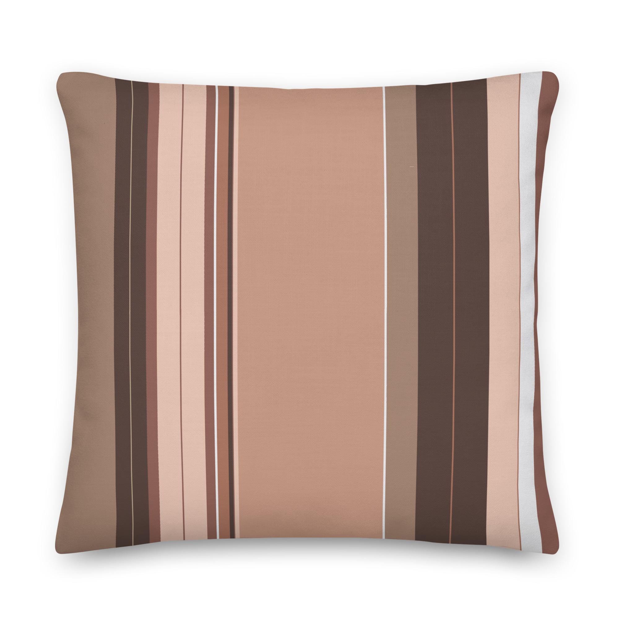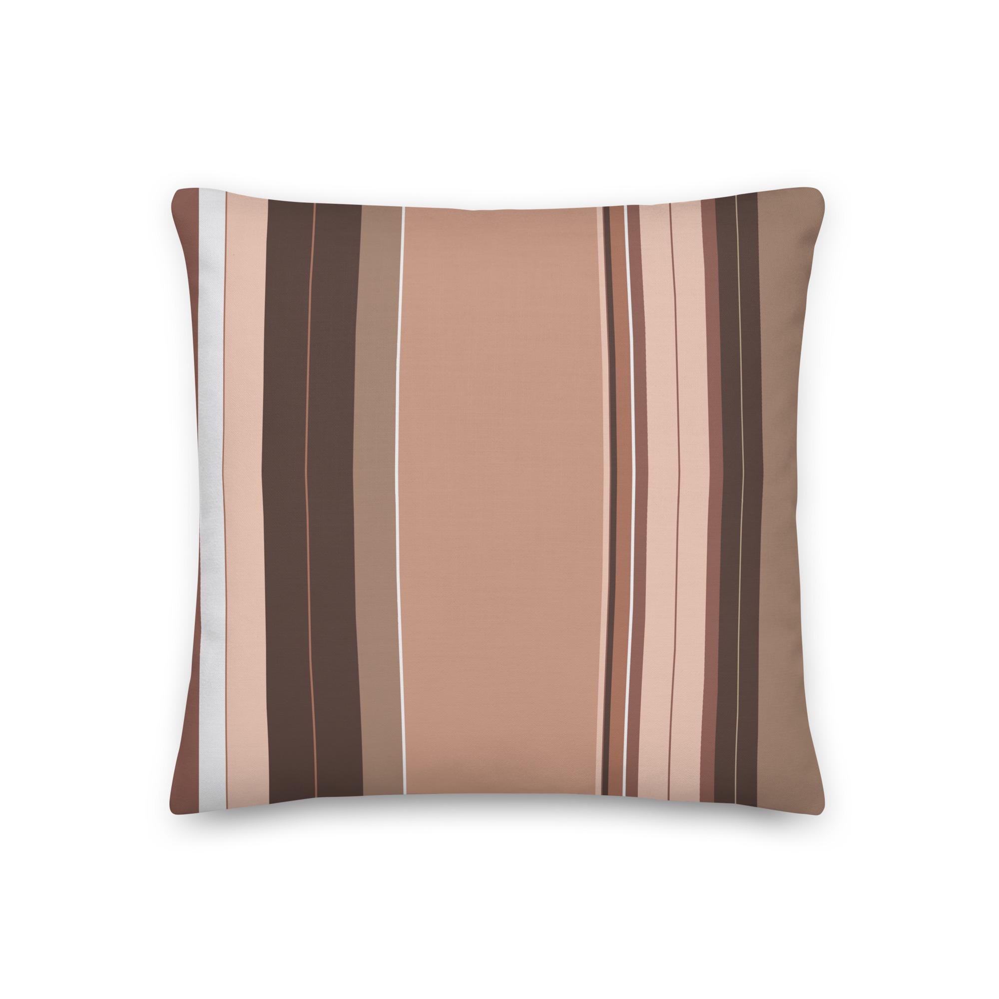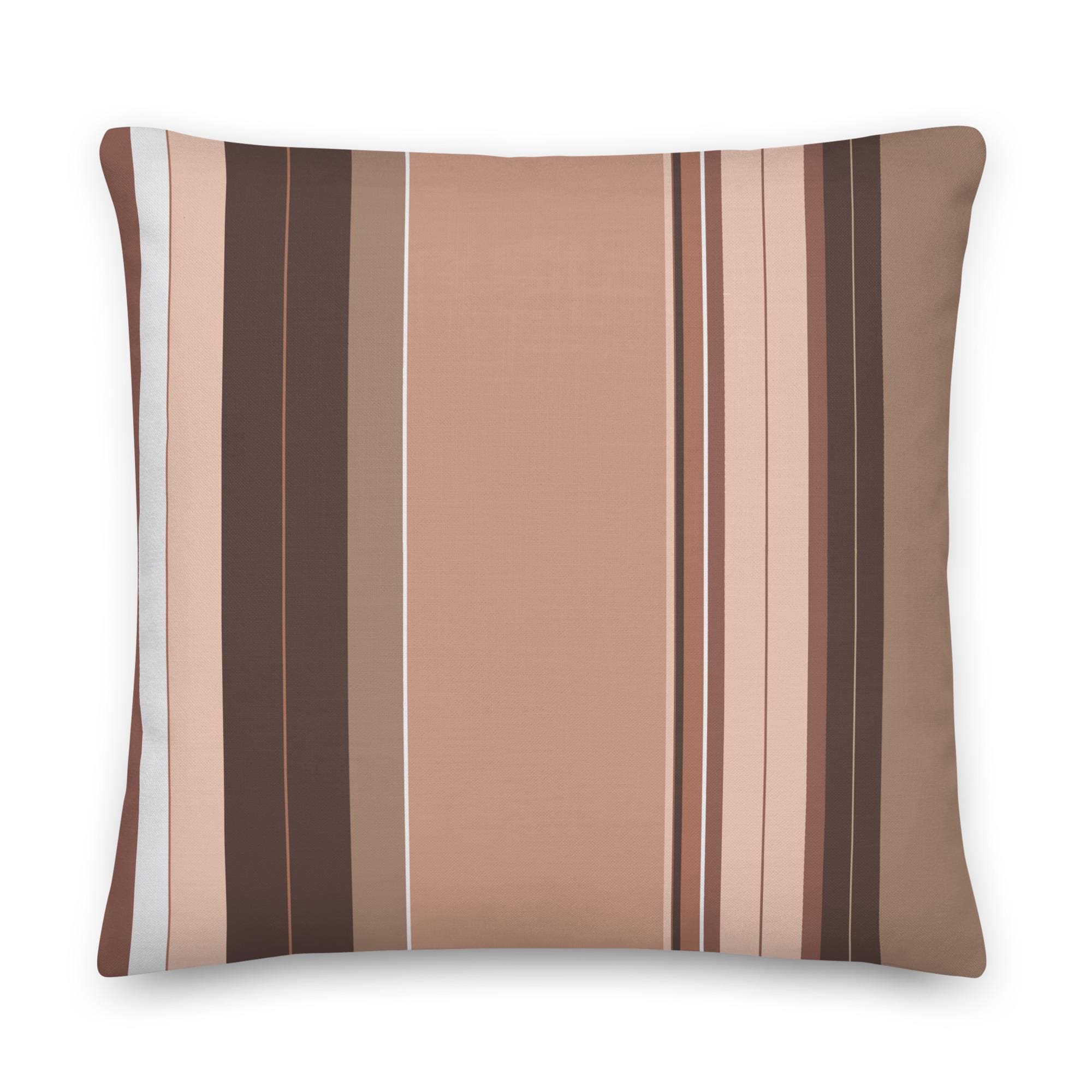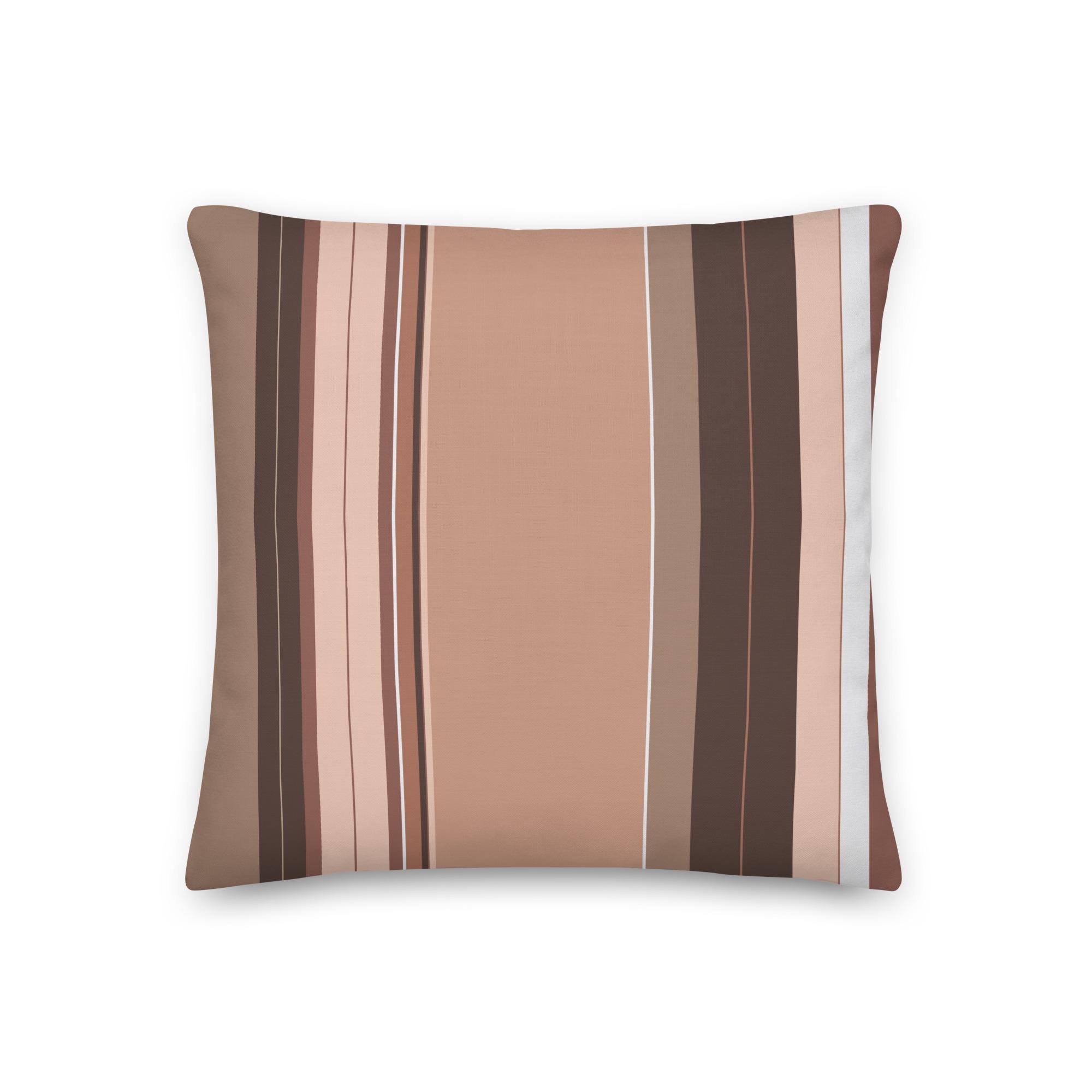 Premium Throw Pillow- Stripes Brown Tan Beige White