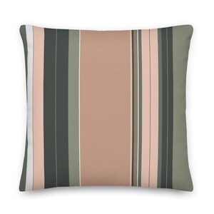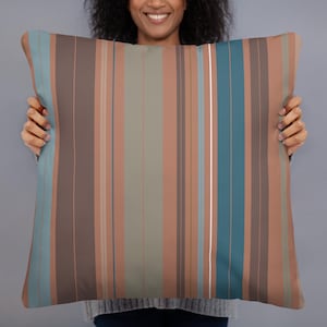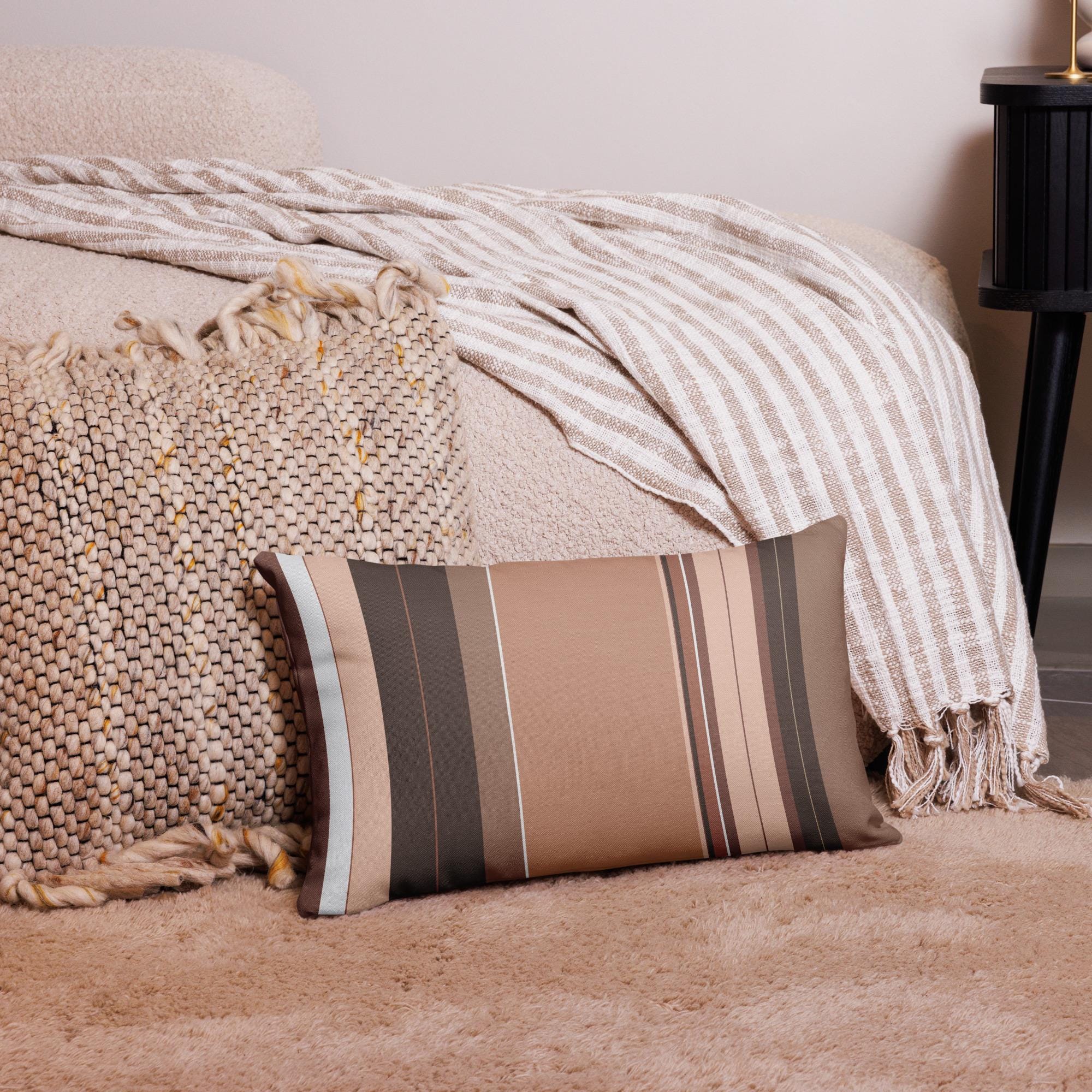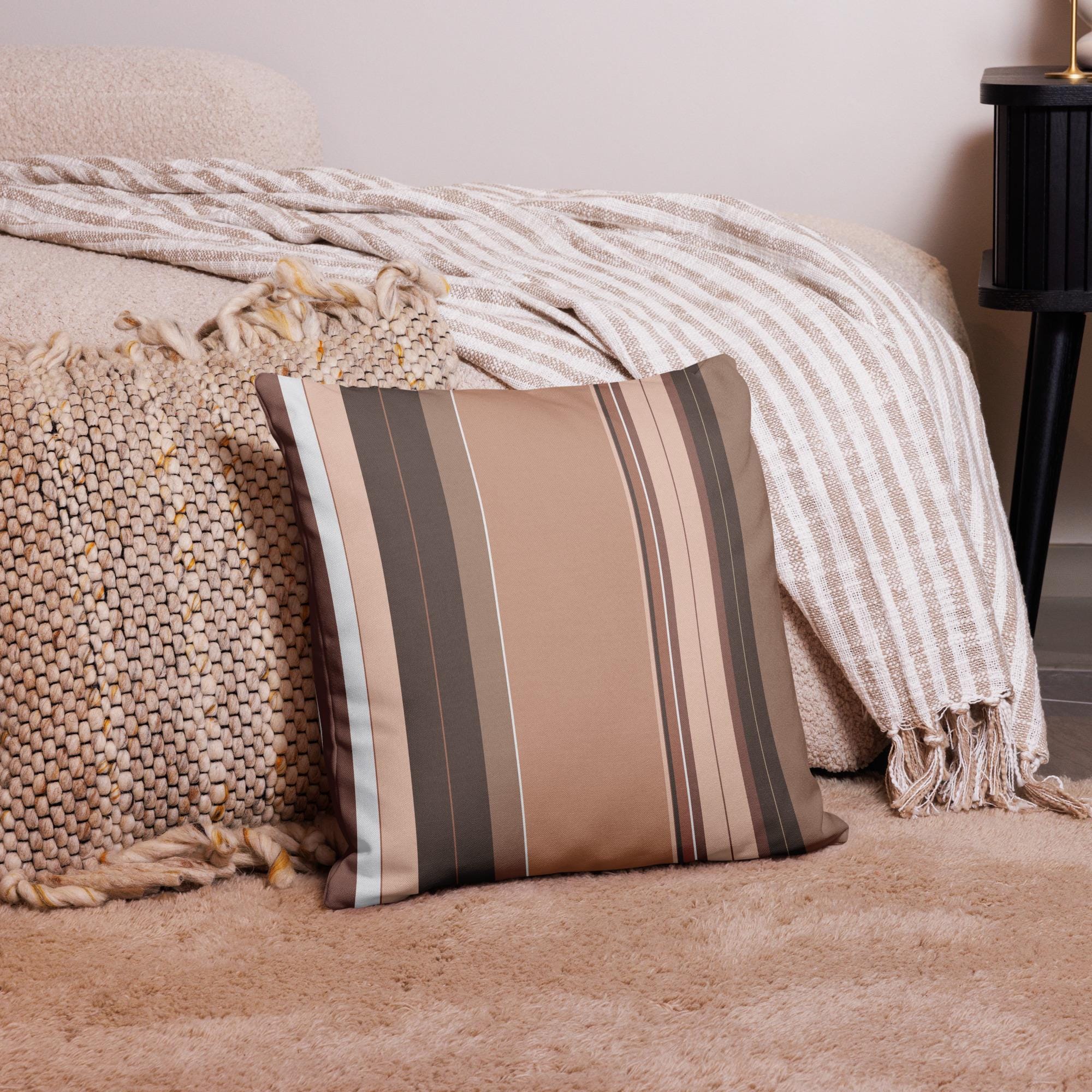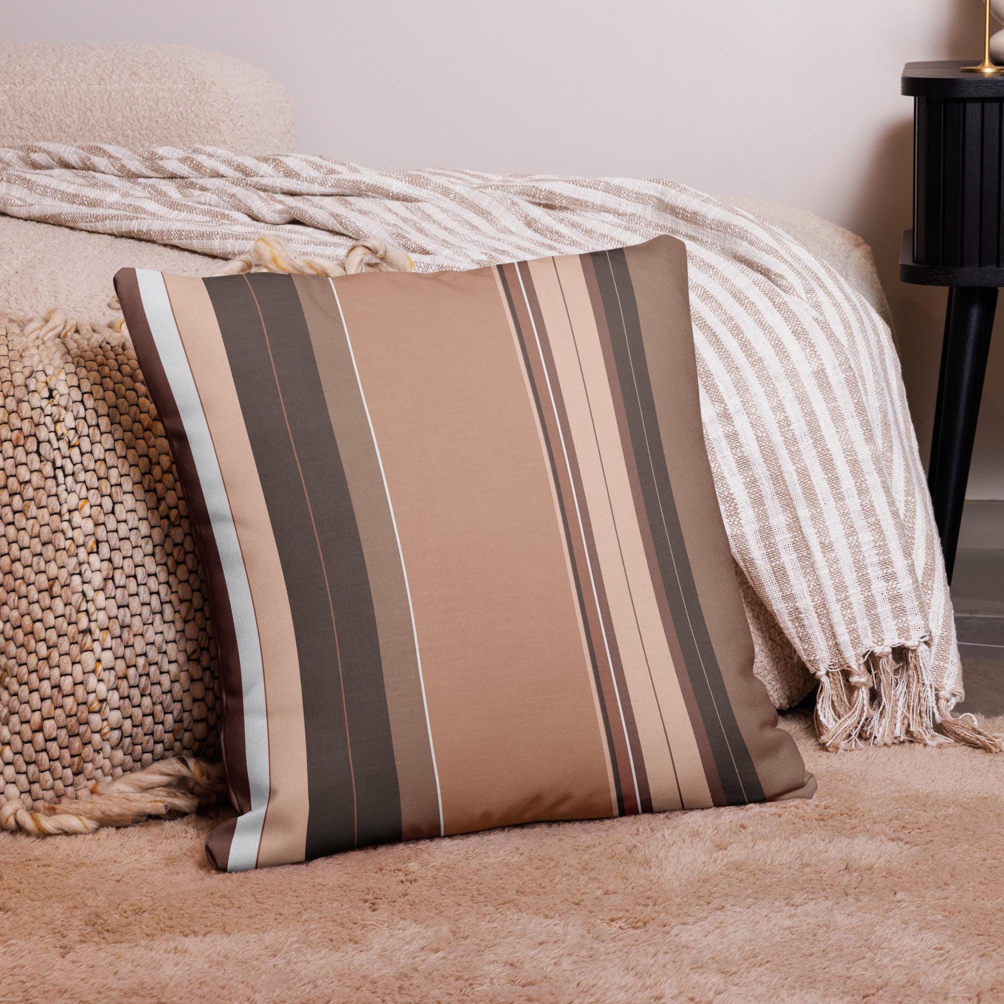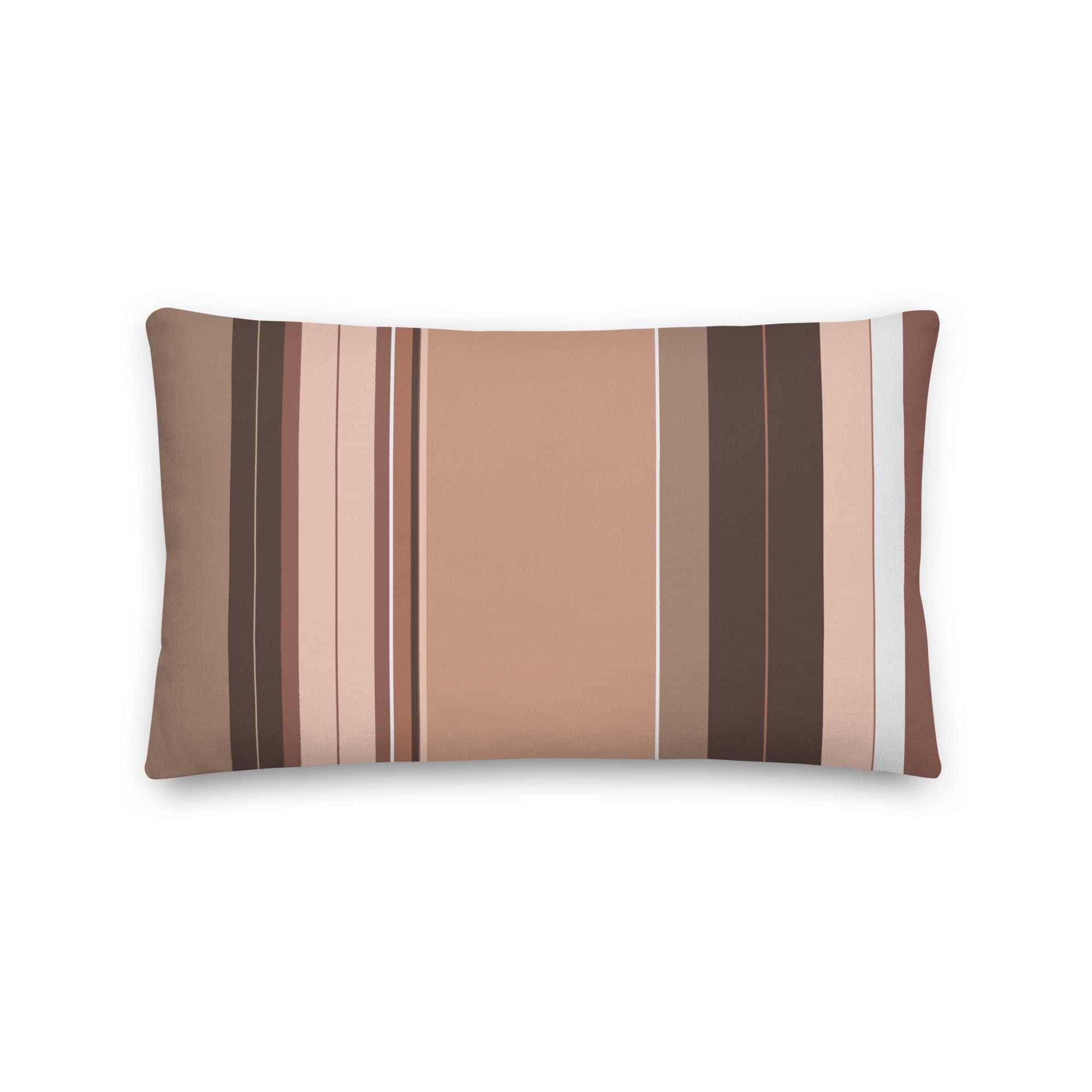 Premium Throw Pillow- Stripes Brown Tan Beige White