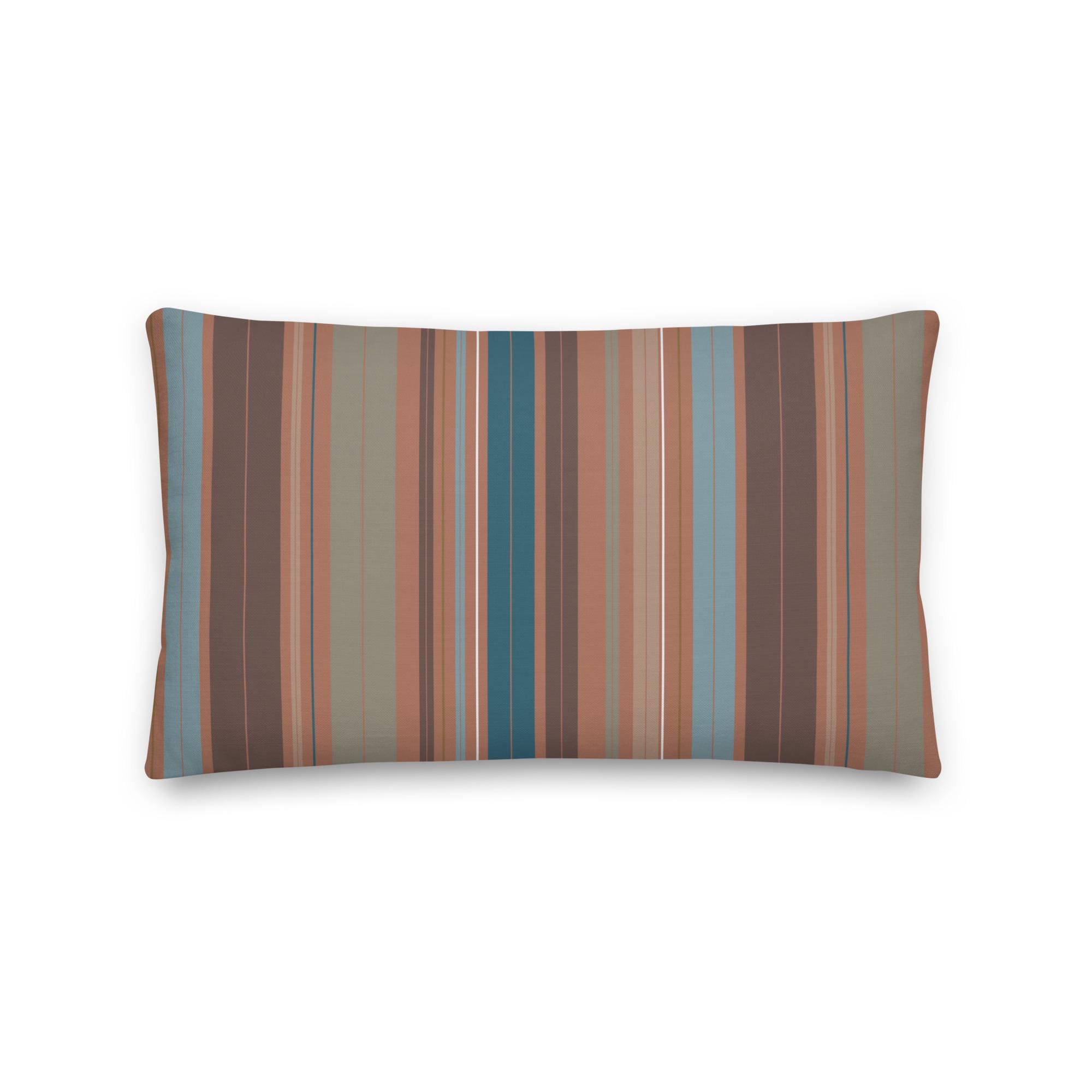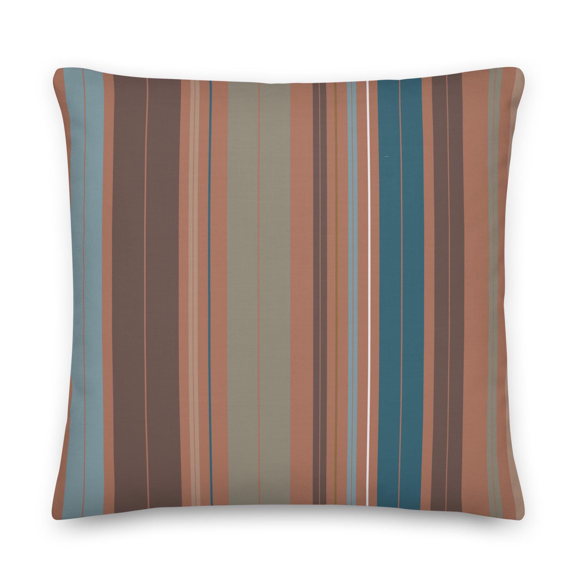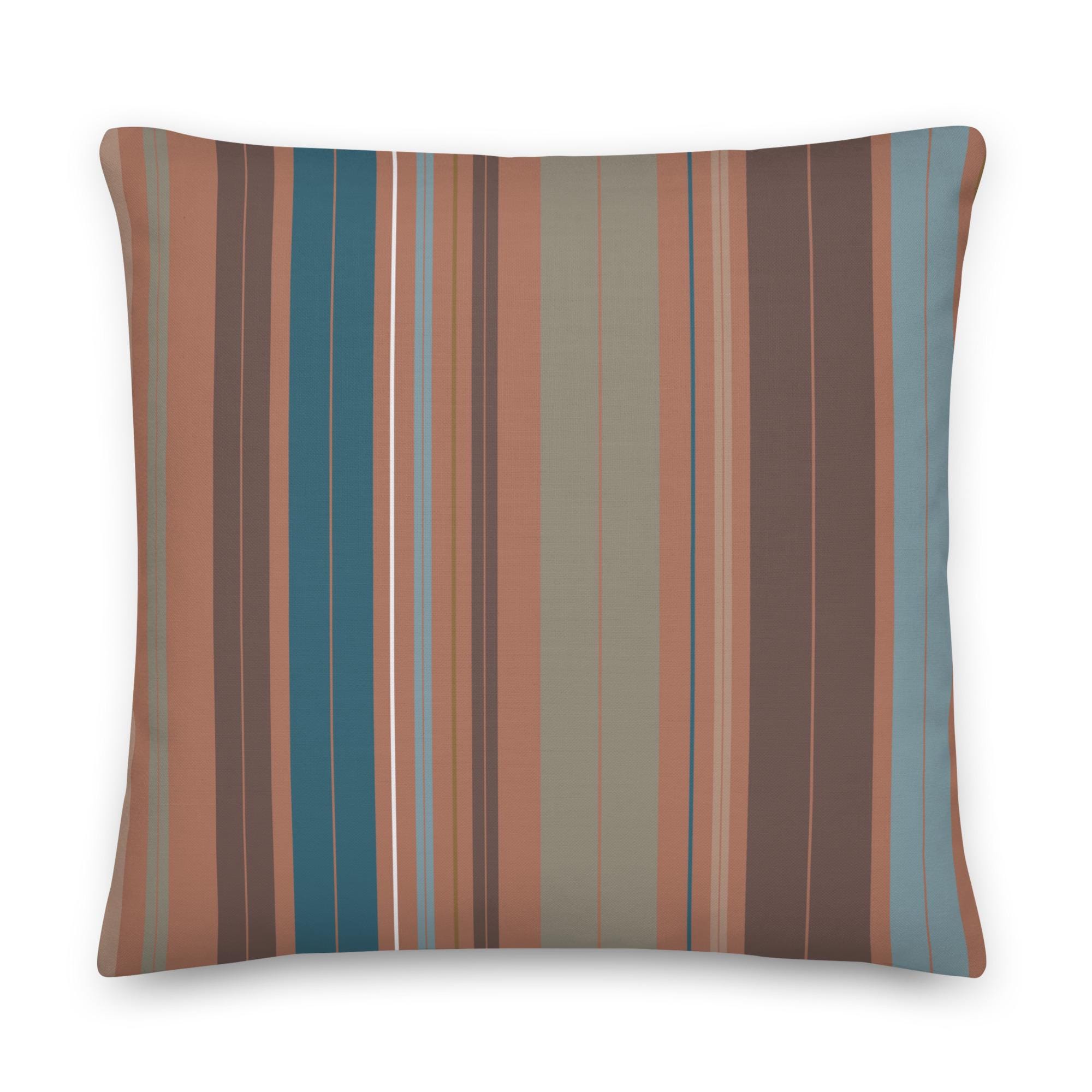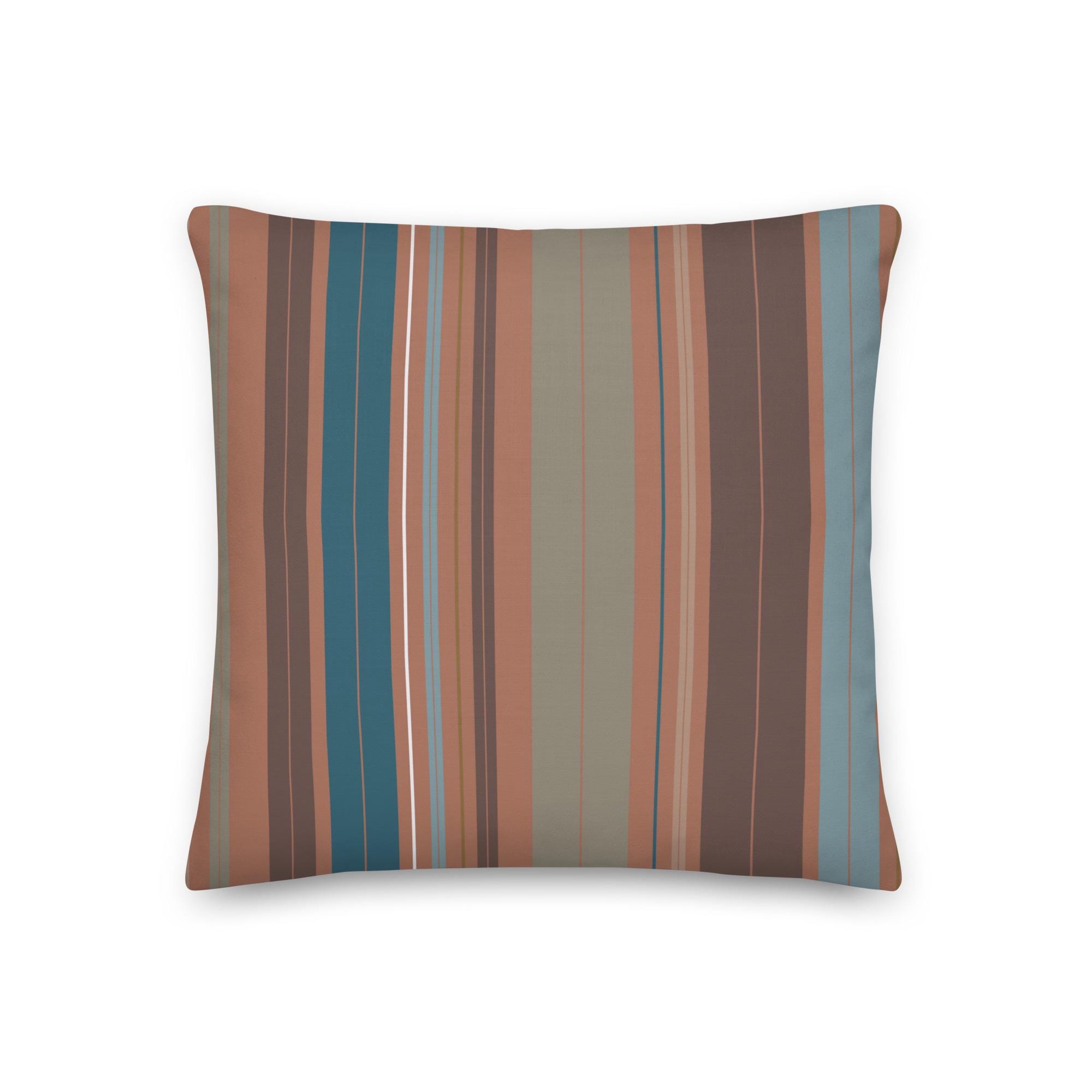 Premium Throw Pillow- Stripes Coffee Mocha Foam Green Blue