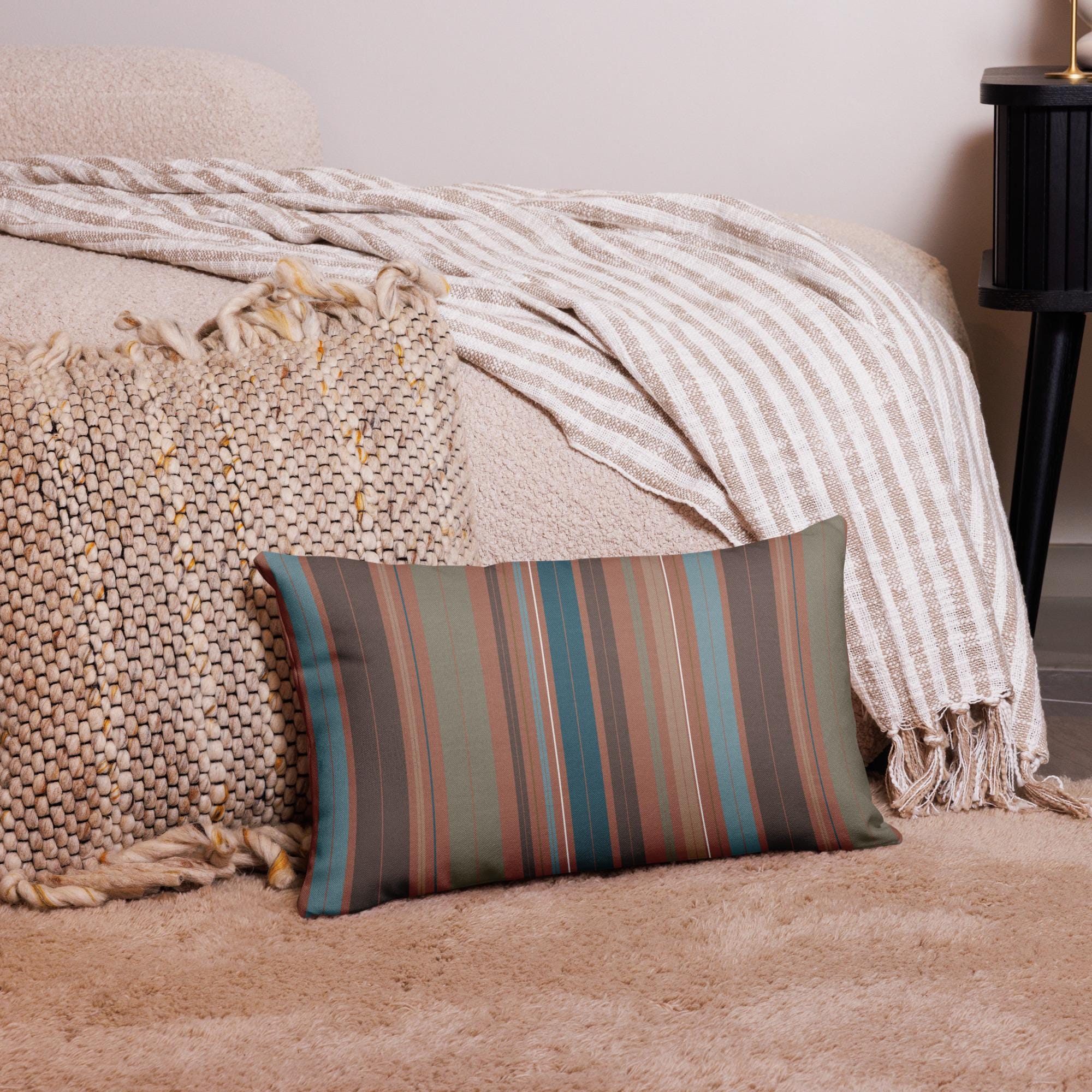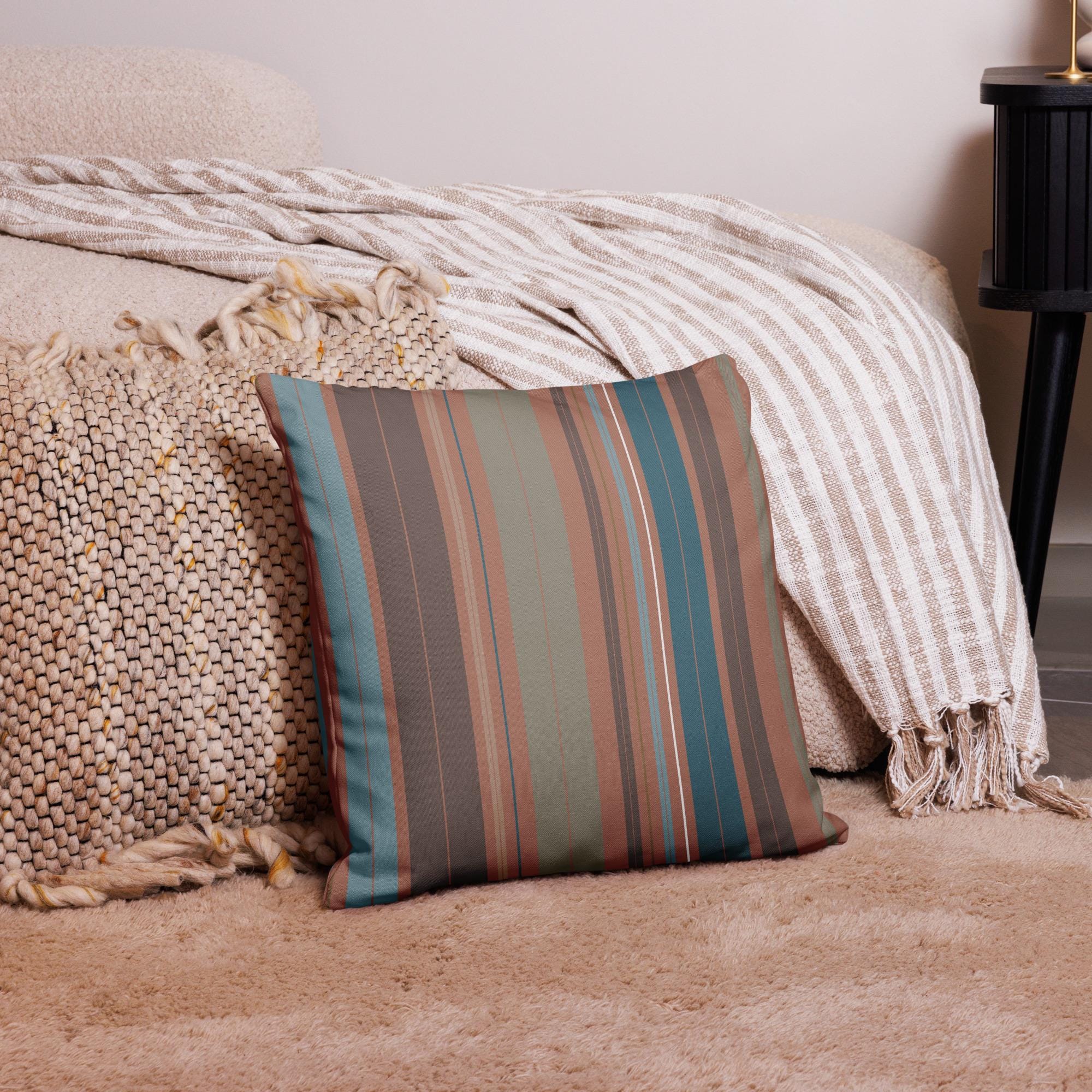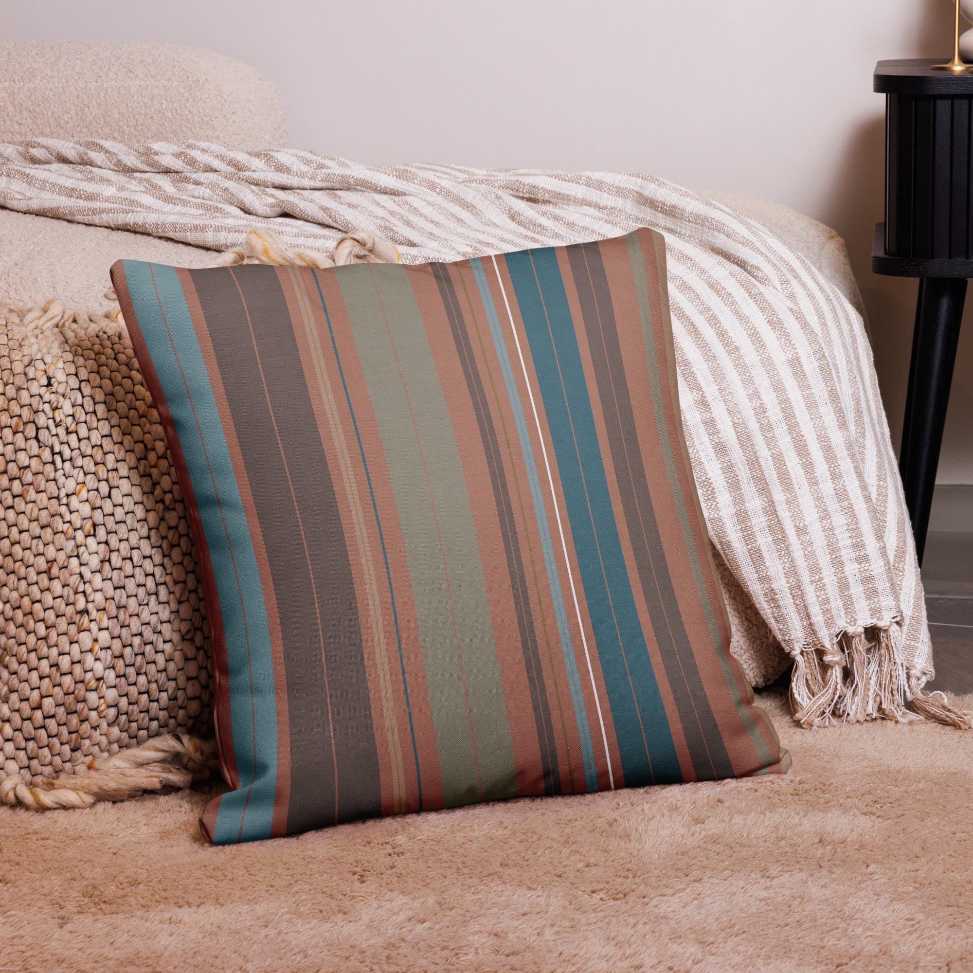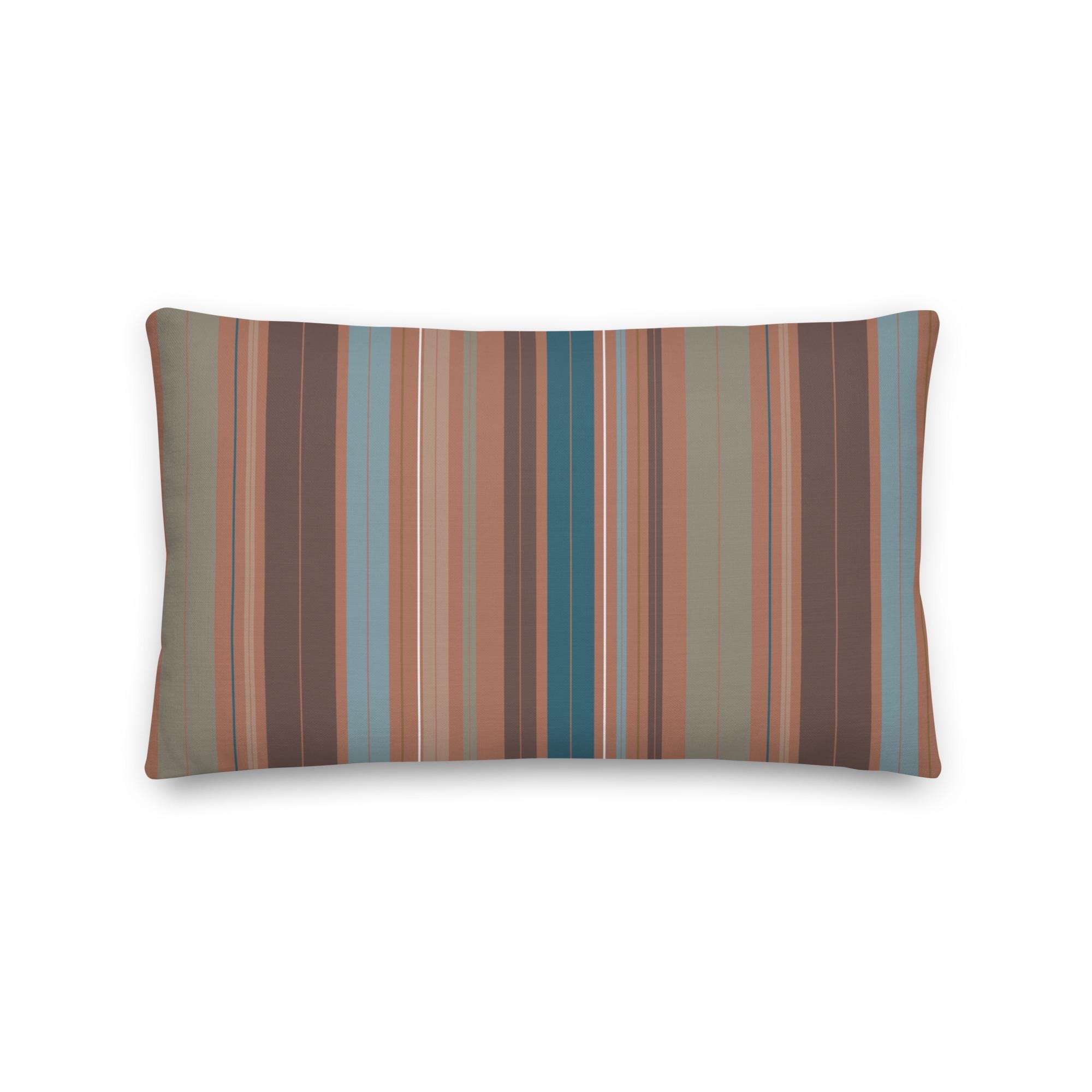 Premium Throw Pillow- Stripes Coffee Mocha Foam Green Blue