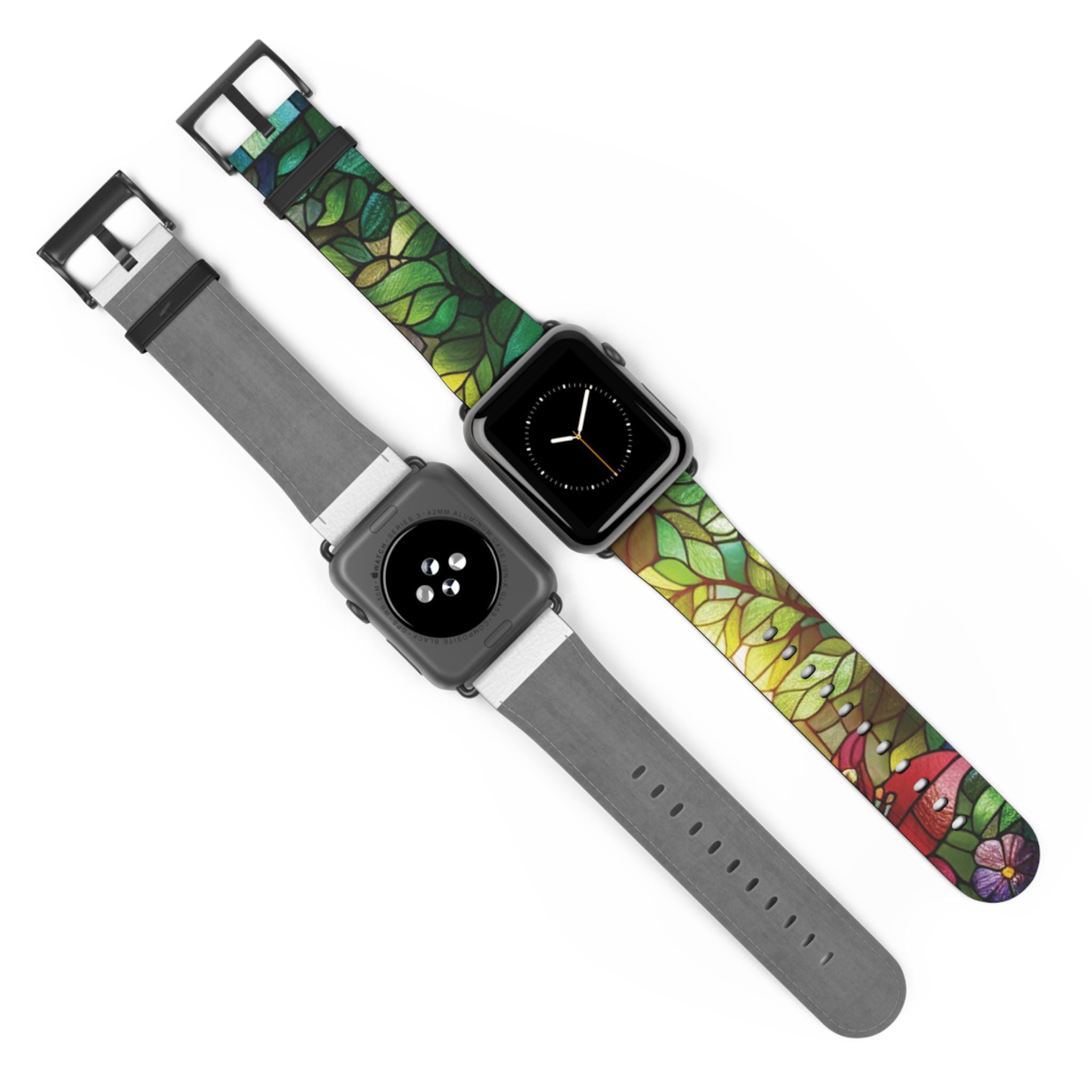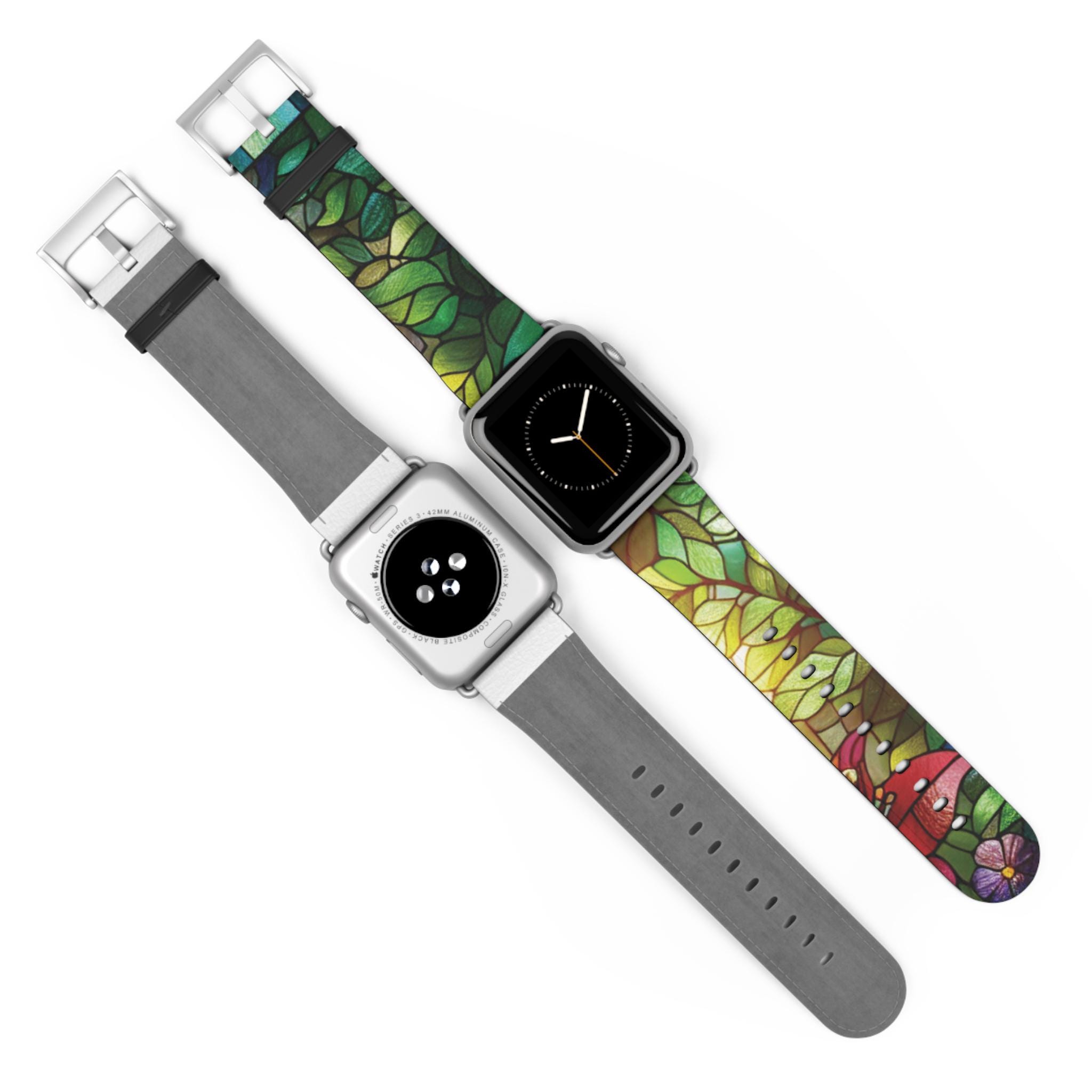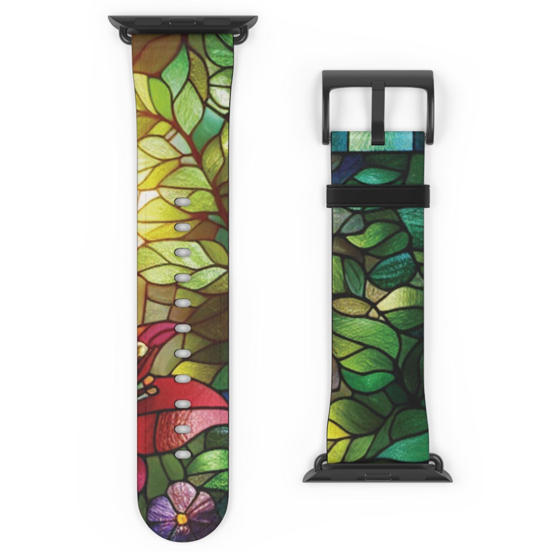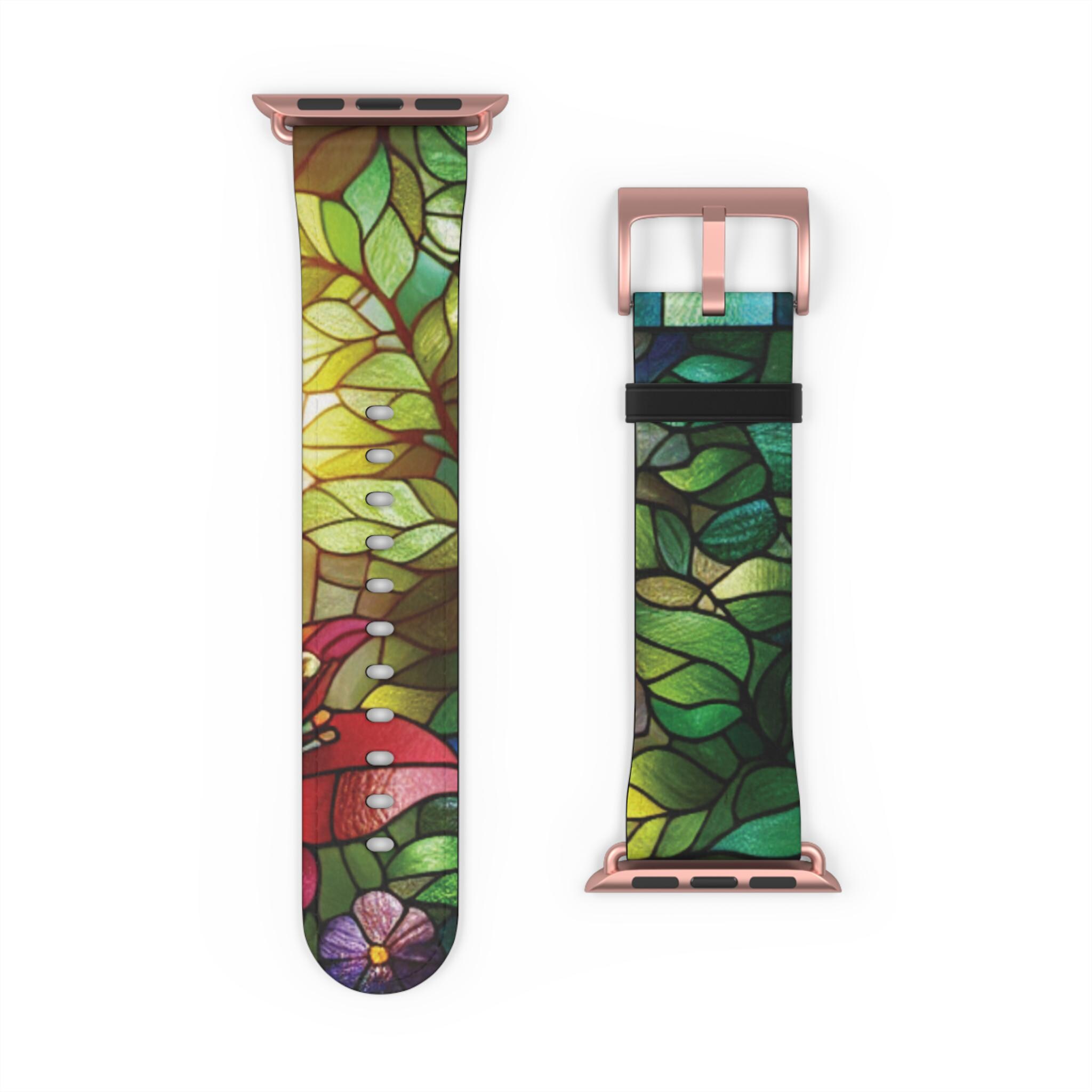 Floral Stained Glass Apple Watch Band: Vibrant Spring Cottagecore Design