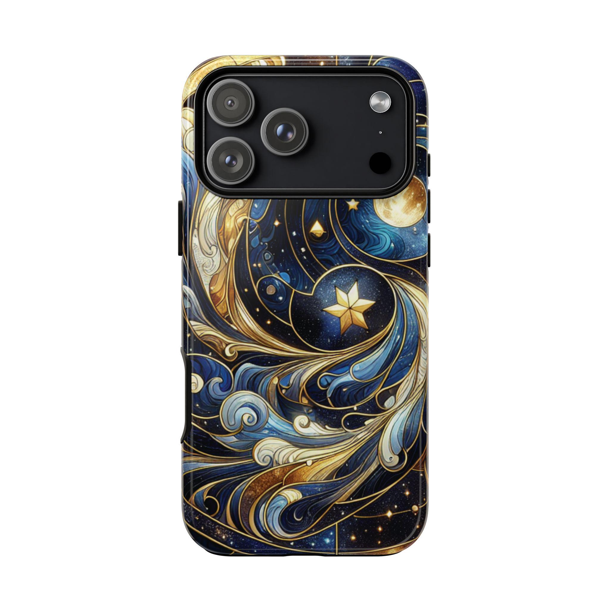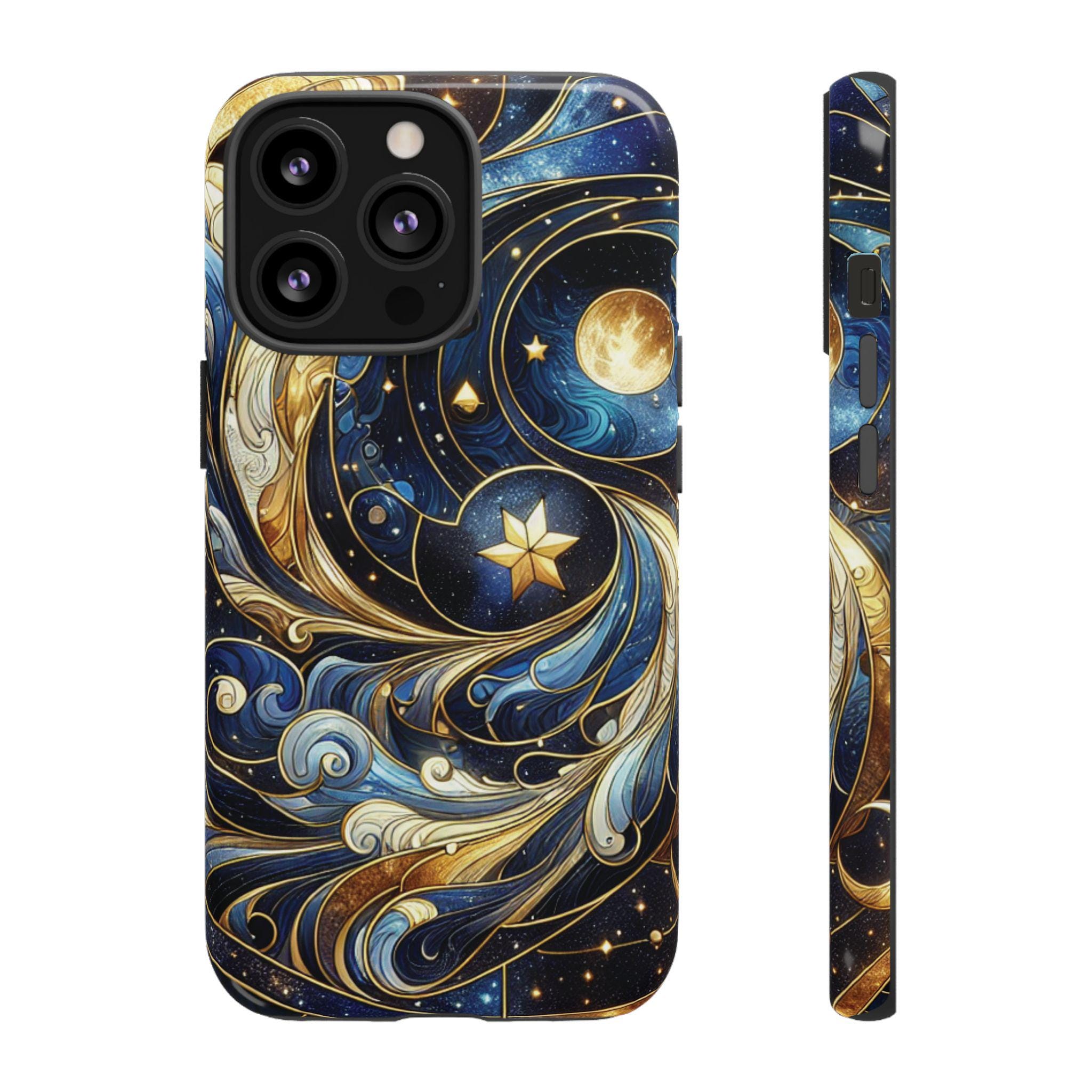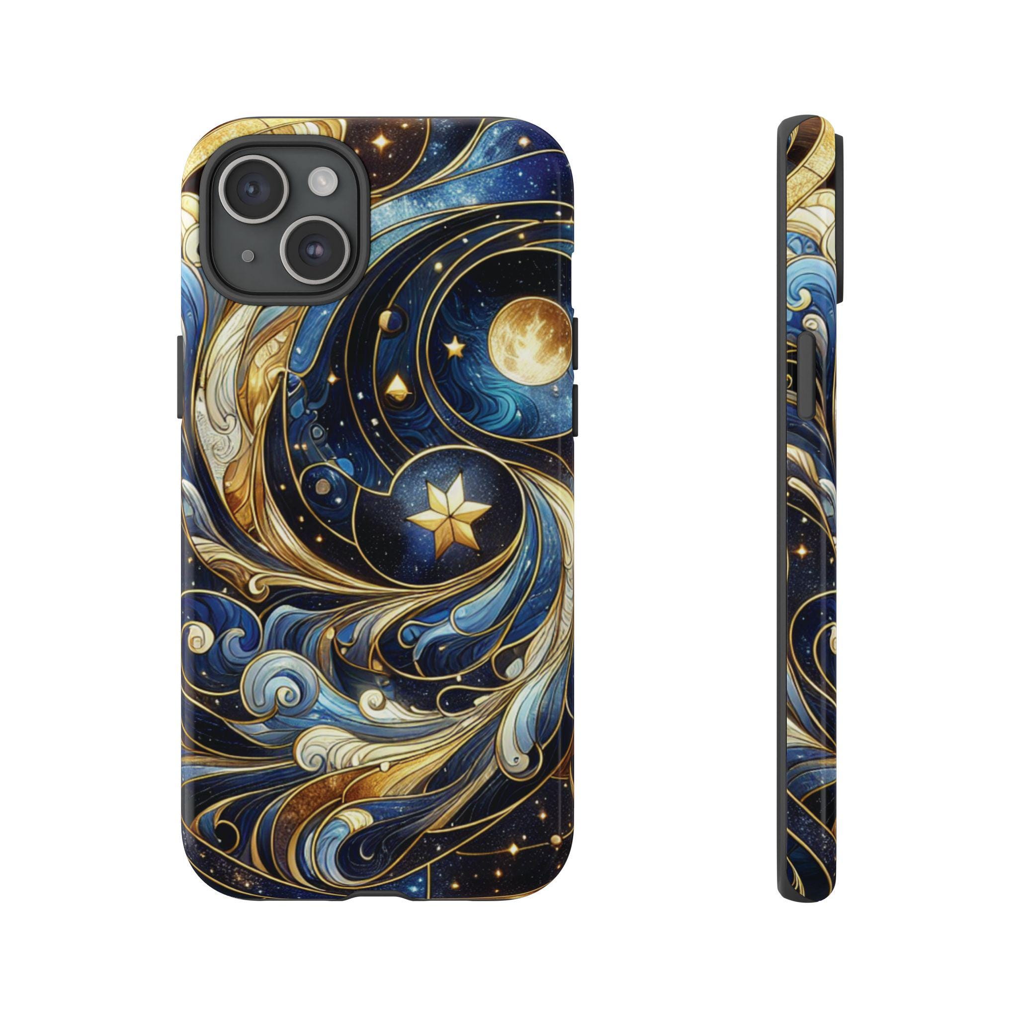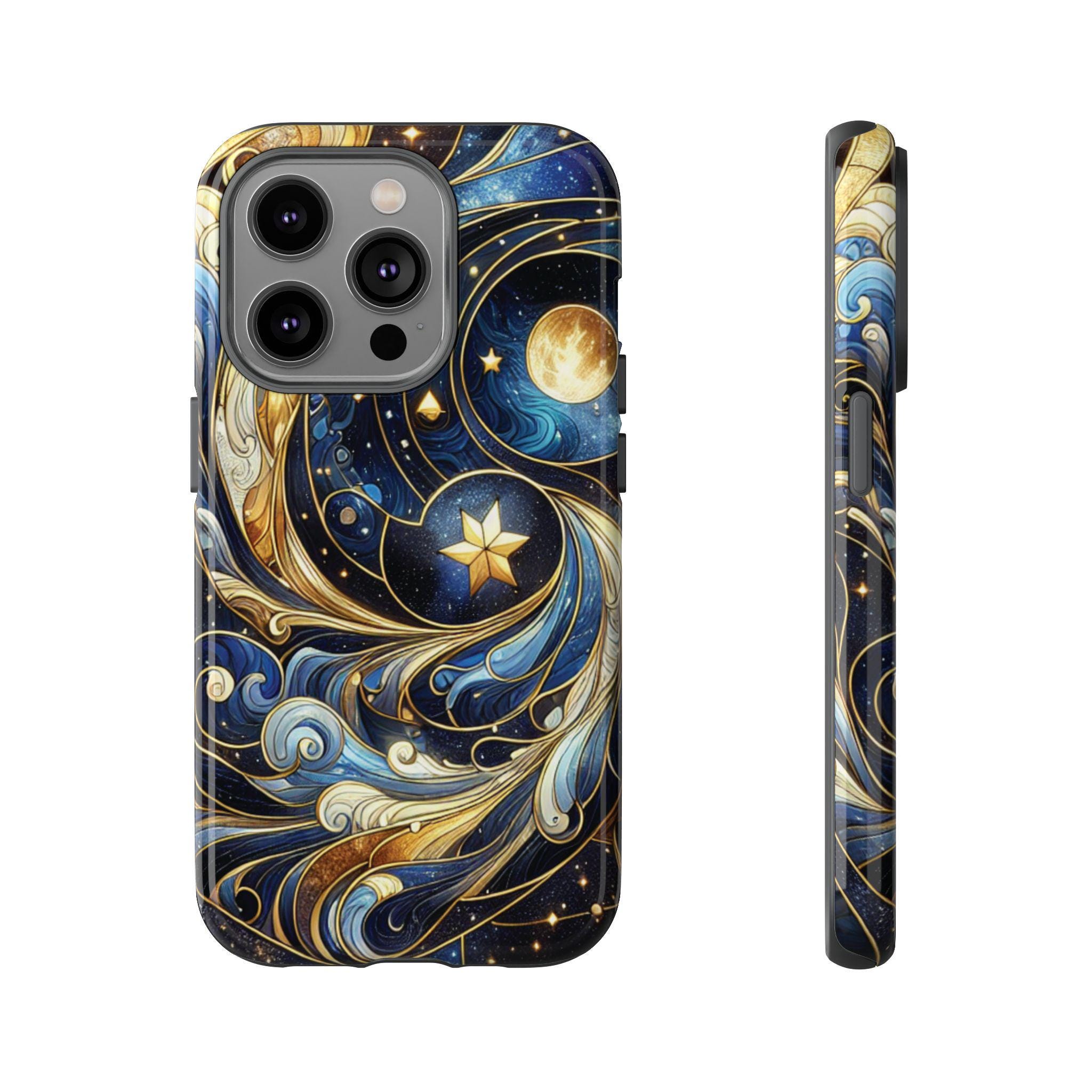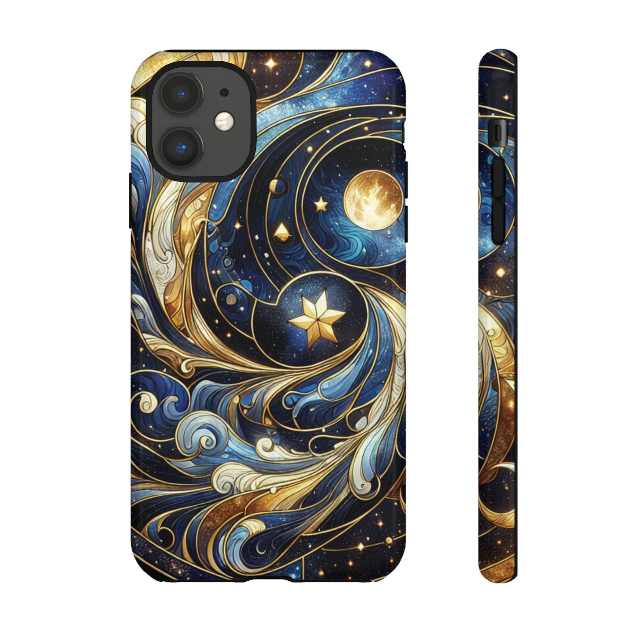 Starry night celestial stained glass IPhone tough case. Introducing our vibrant phone case, designed to brighten your everyday life with stunning artwork. This product adds a cheerful and artistic touch to your phone, making it not just a protective accessory but also a statement piece. Perfect for nature lovers, this sturdy case is ideal for adults seeking both style and durability. Great for gifting during holidays like birthdays, Mother's Day, or any occasion where you want to bring a smile. Use it to enhance your daily routines, whether at work, school, or leisure activities, and enjoy the subconscious uplift that beautiful designs can bring to your life.