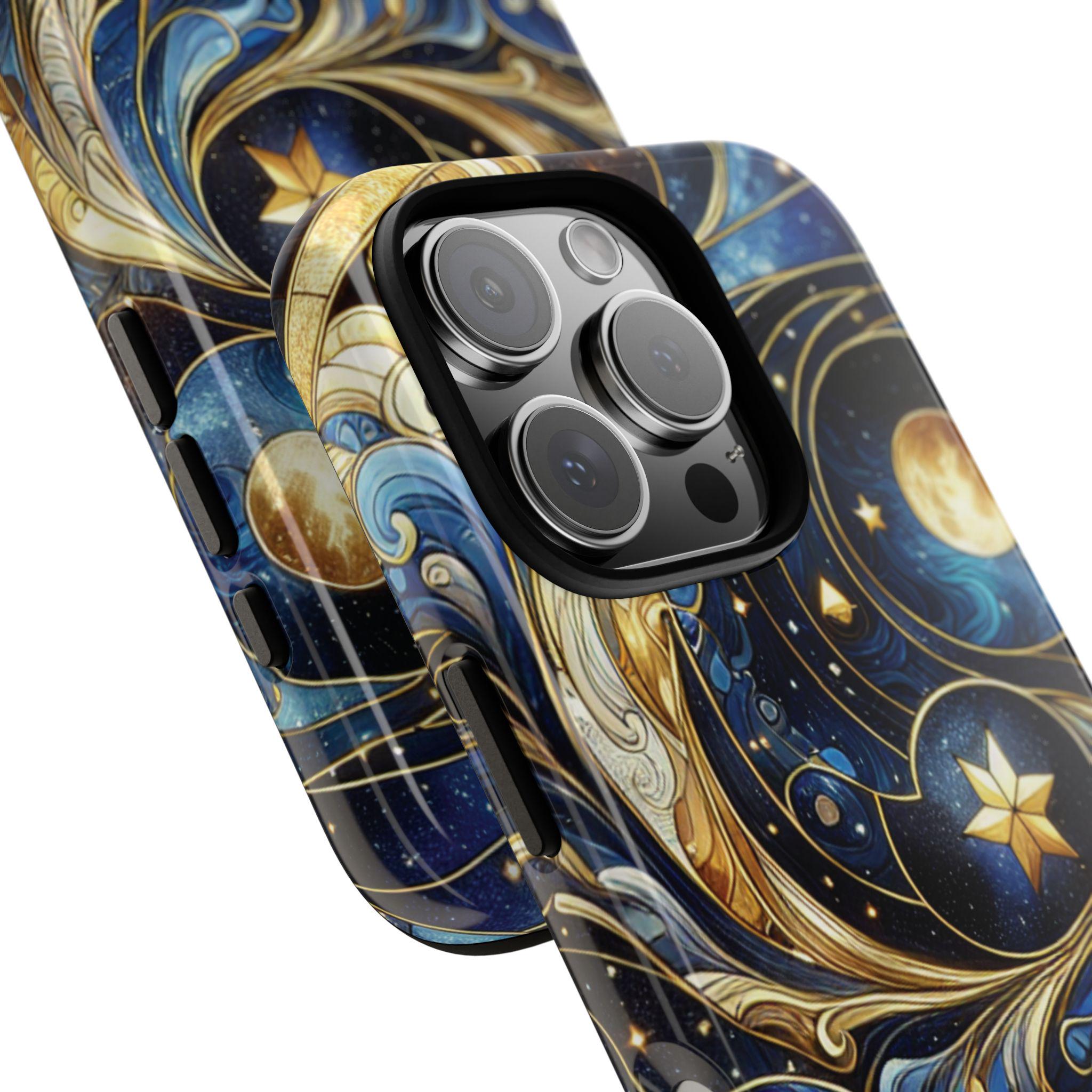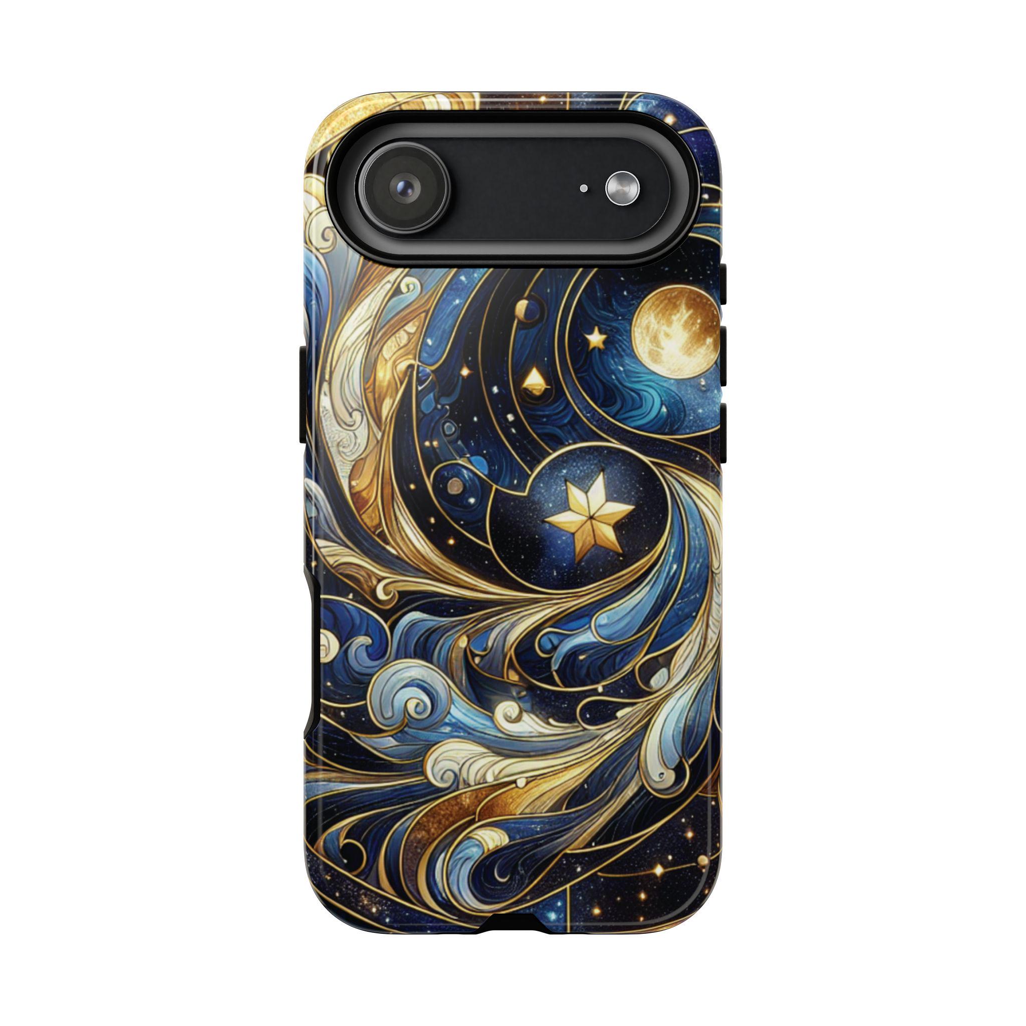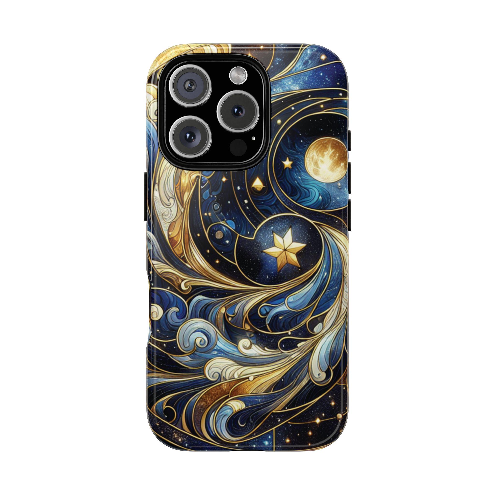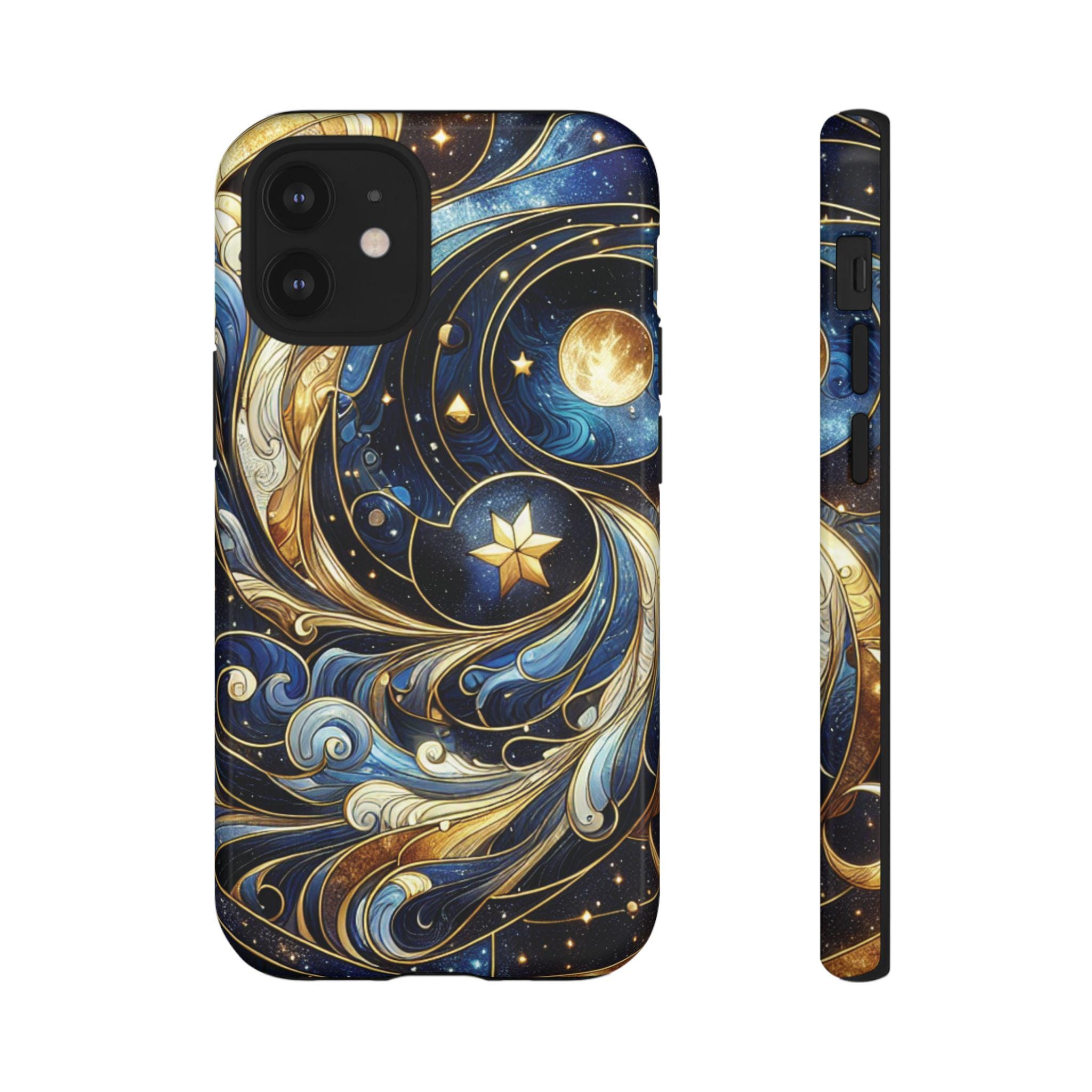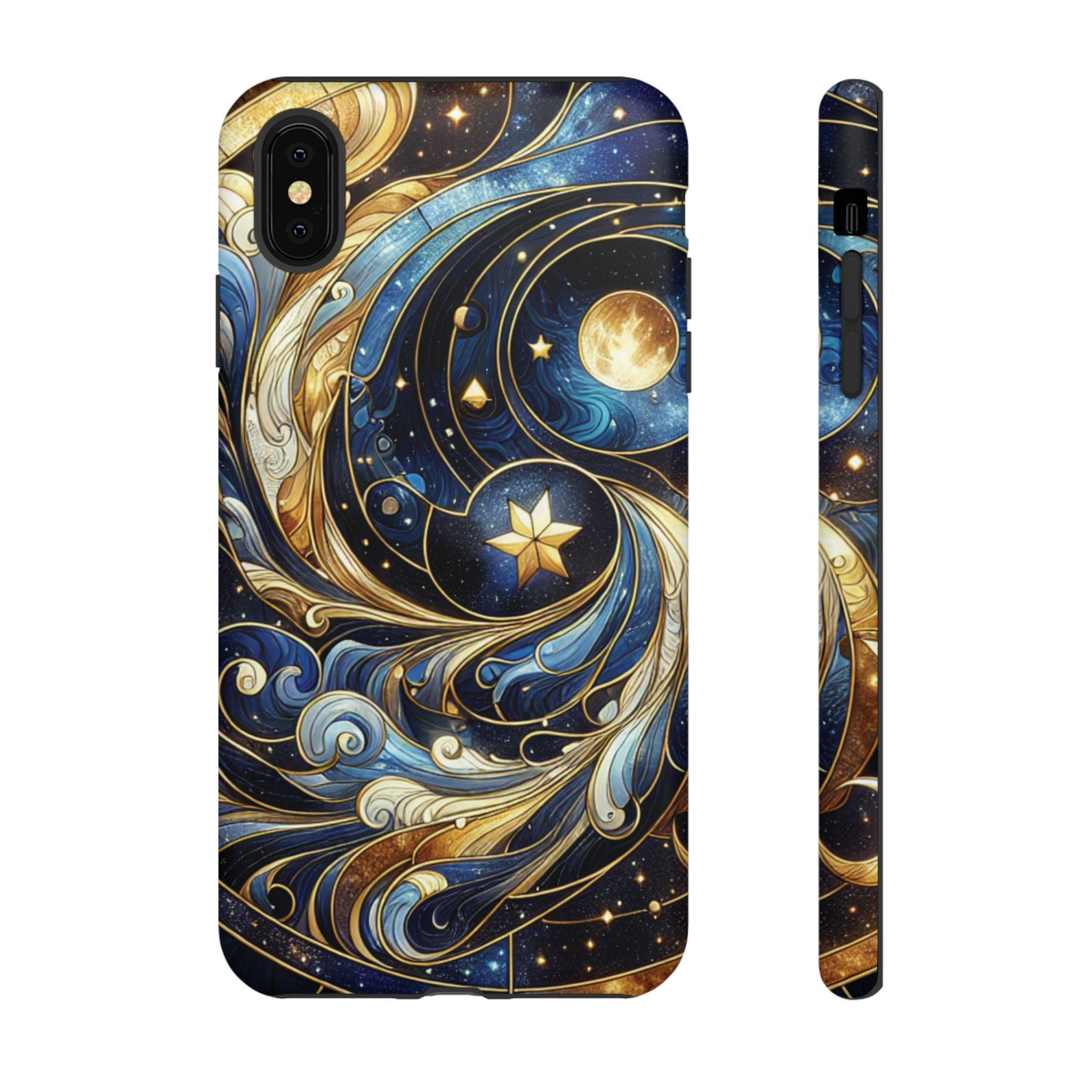 Starry night celestial stained glass IPhone tough case. Introducing our vibrant phone case, designed to brighten your everyday life with stunning artwork. This product adds a cheerful and artistic touch to your phone, making it not just a protective accessory but also a statement piece. Perfect for nature lovers, this sturdy case is ideal for adults seeking both style and durability. Great for gifting during holidays like birthdays, Mother's Day, or any occasion where you want to bring a smile. Use it to enhance your daily routines, whether at work, school, or leisure activities, and enjoy the subconscious uplift that beautiful designs can bring to your life.