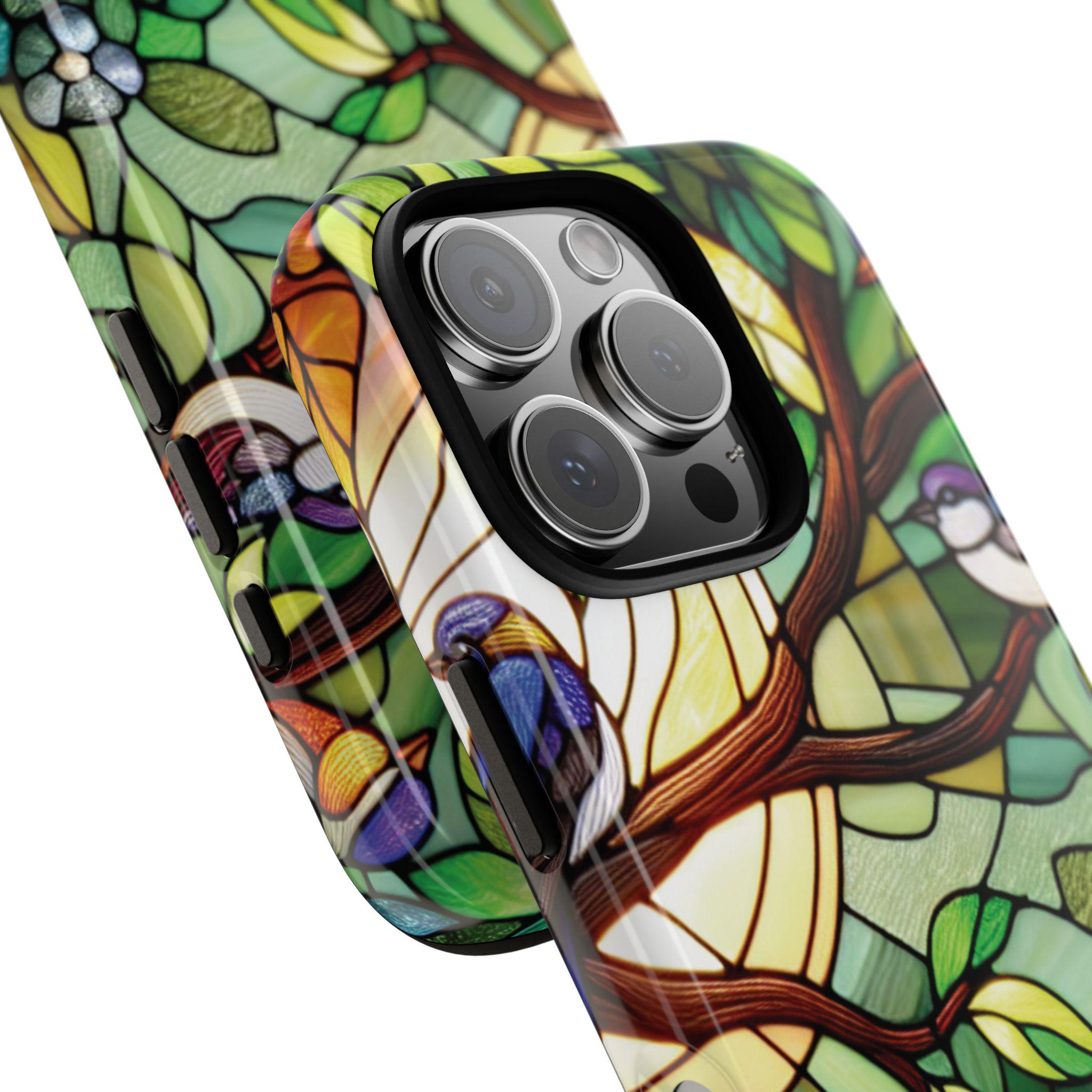 Stained Glass Birds iPhone Tough Case: Vibrant Tree Design