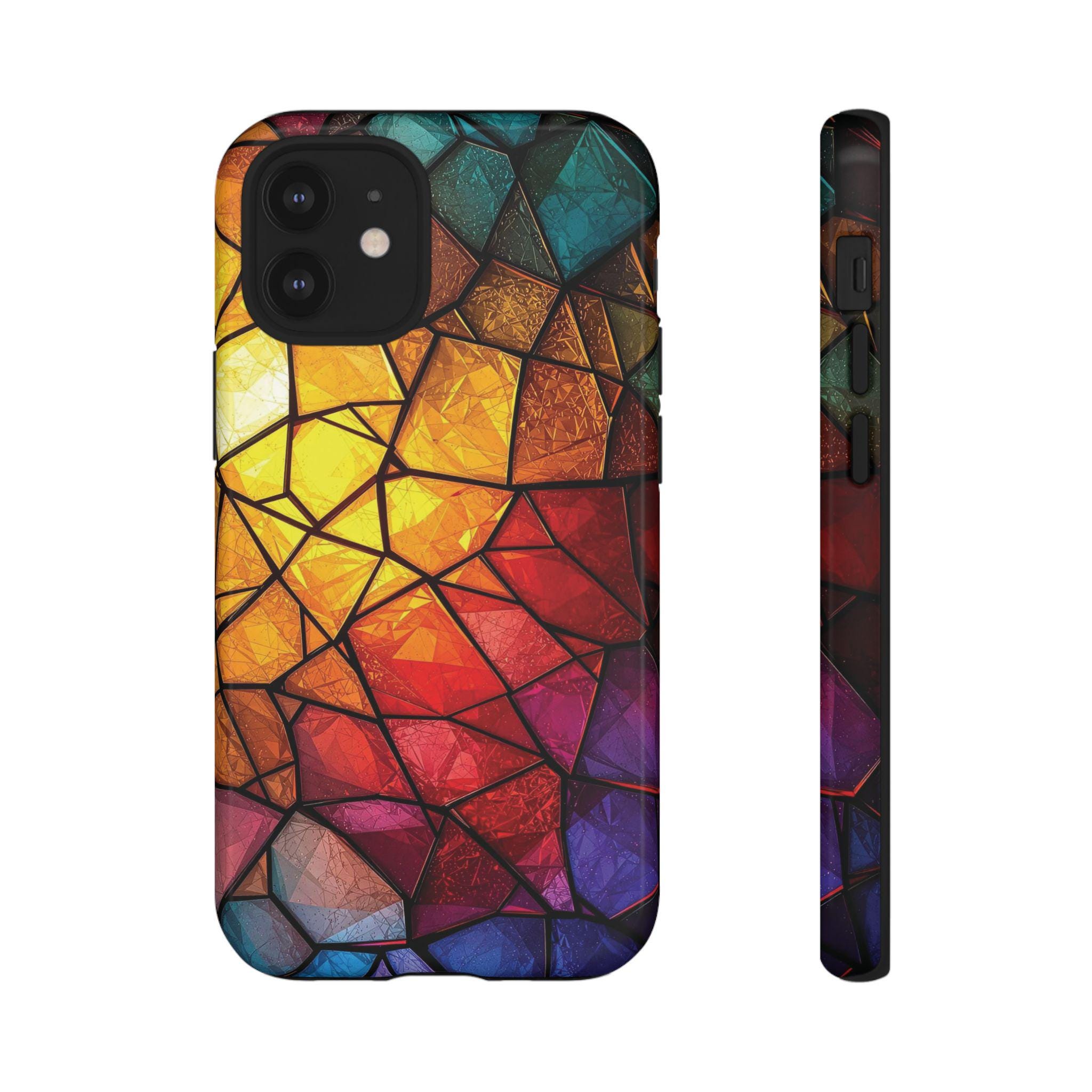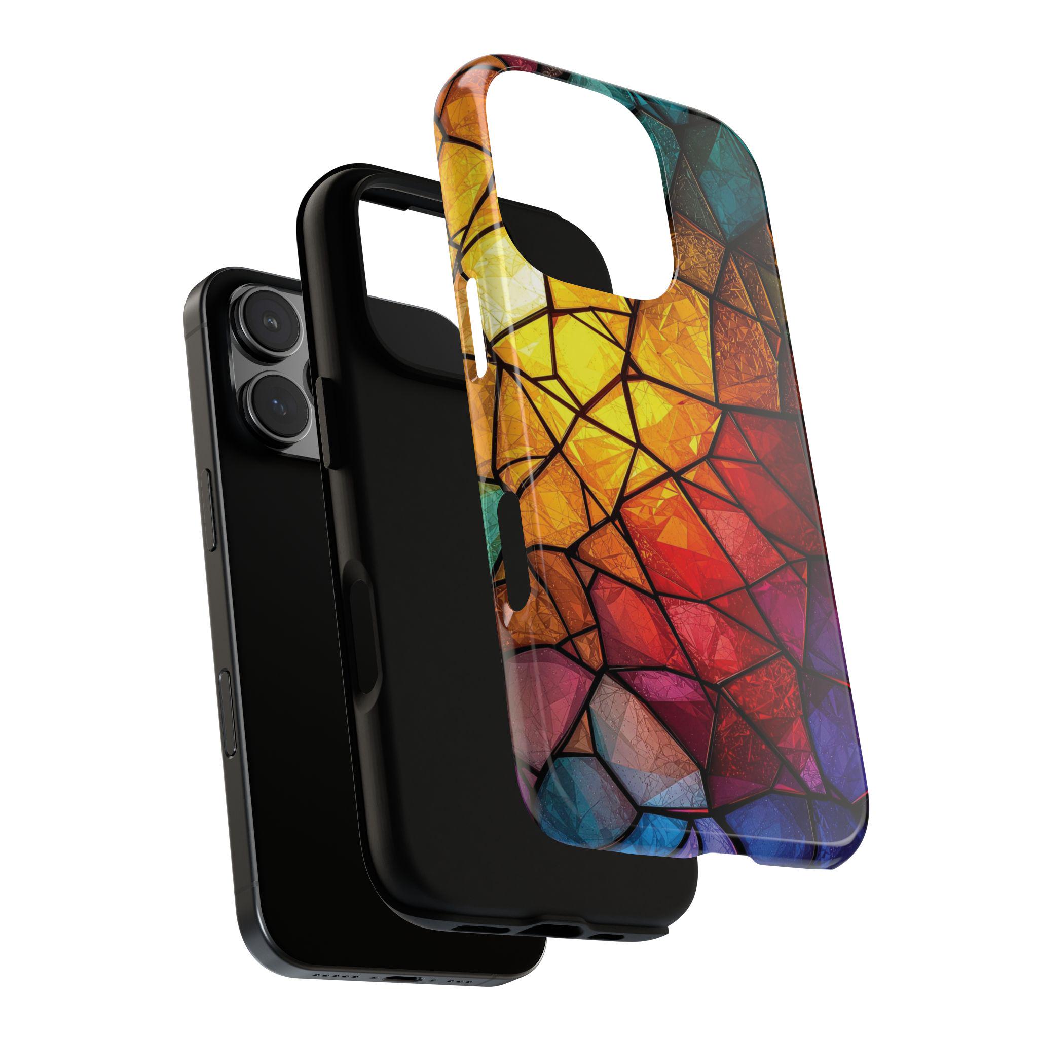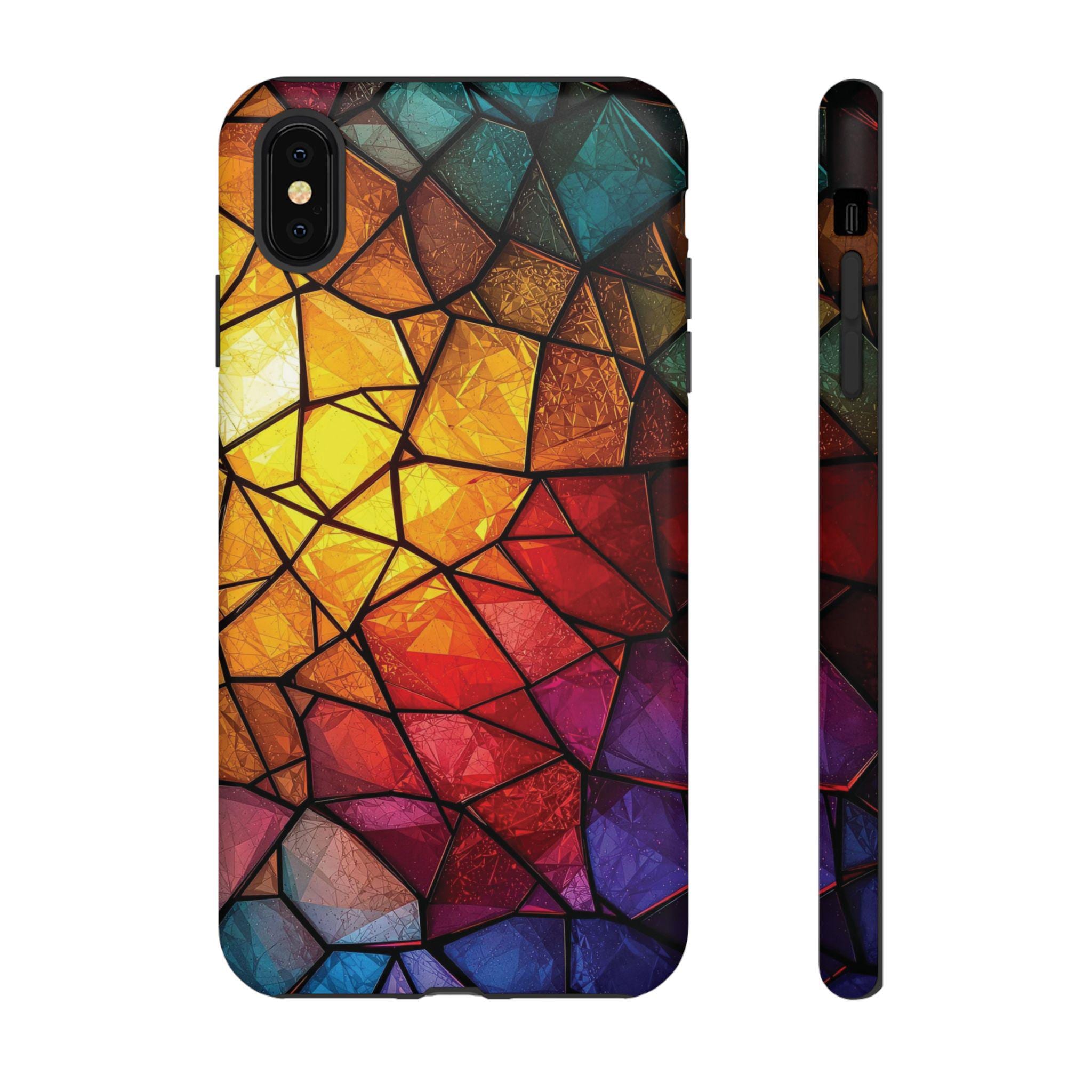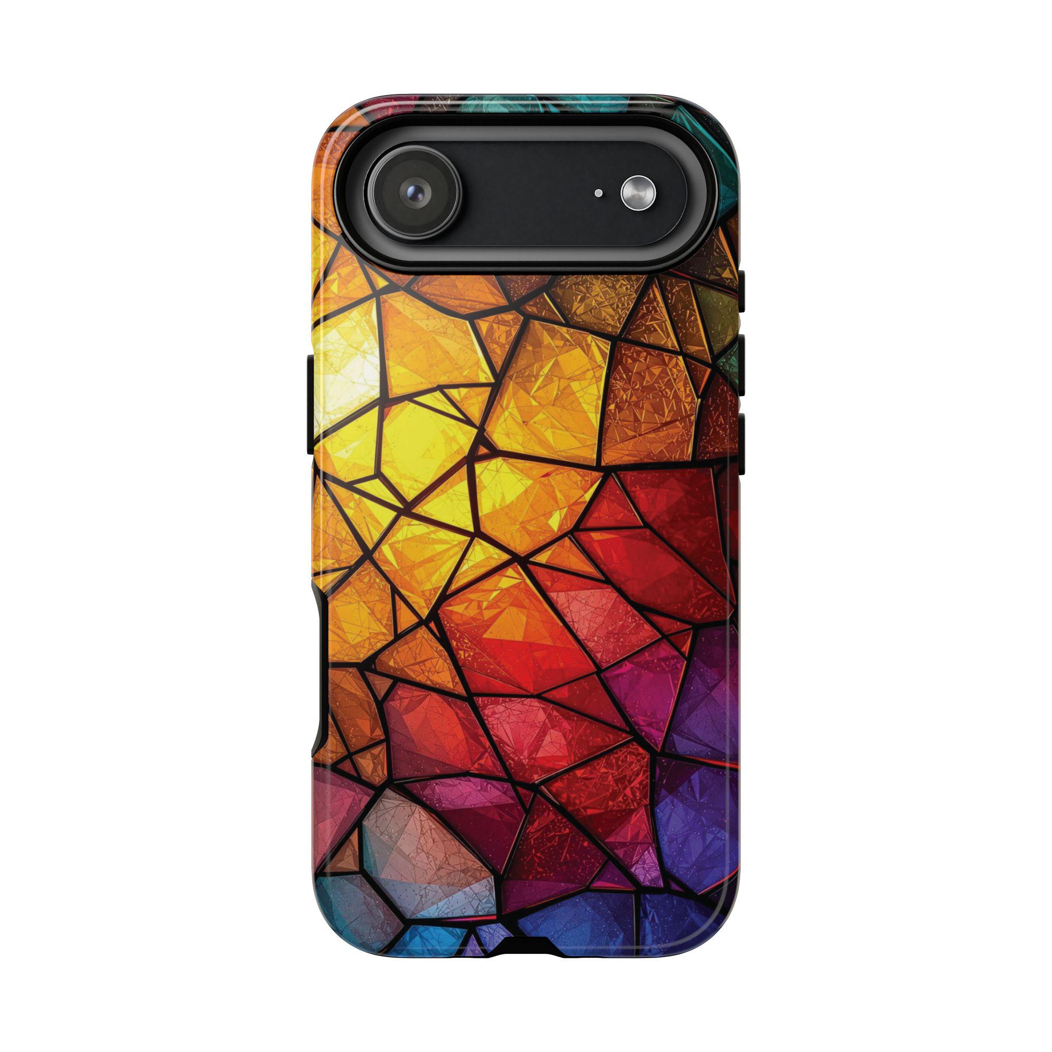 Vibrant stained glass Mosaic IPhone tough case. Introducing our vibrant phone case, designed to brighten your everyday life with stunning artwork. This product adds a cheerful and artistic touch to your phone, making it not just a protective accessory but also a statement piece. This sturdy case is ideal for adults seeking both style and durability. Great for gifting during holidays like birthdays, Mother's Day, or any occasion where you want to bring a smile. Use it to enhance your daily routines, whether at work, school, or leisure activities, and enjoy the subconscious uplift that beautiful designs can bring to your life.