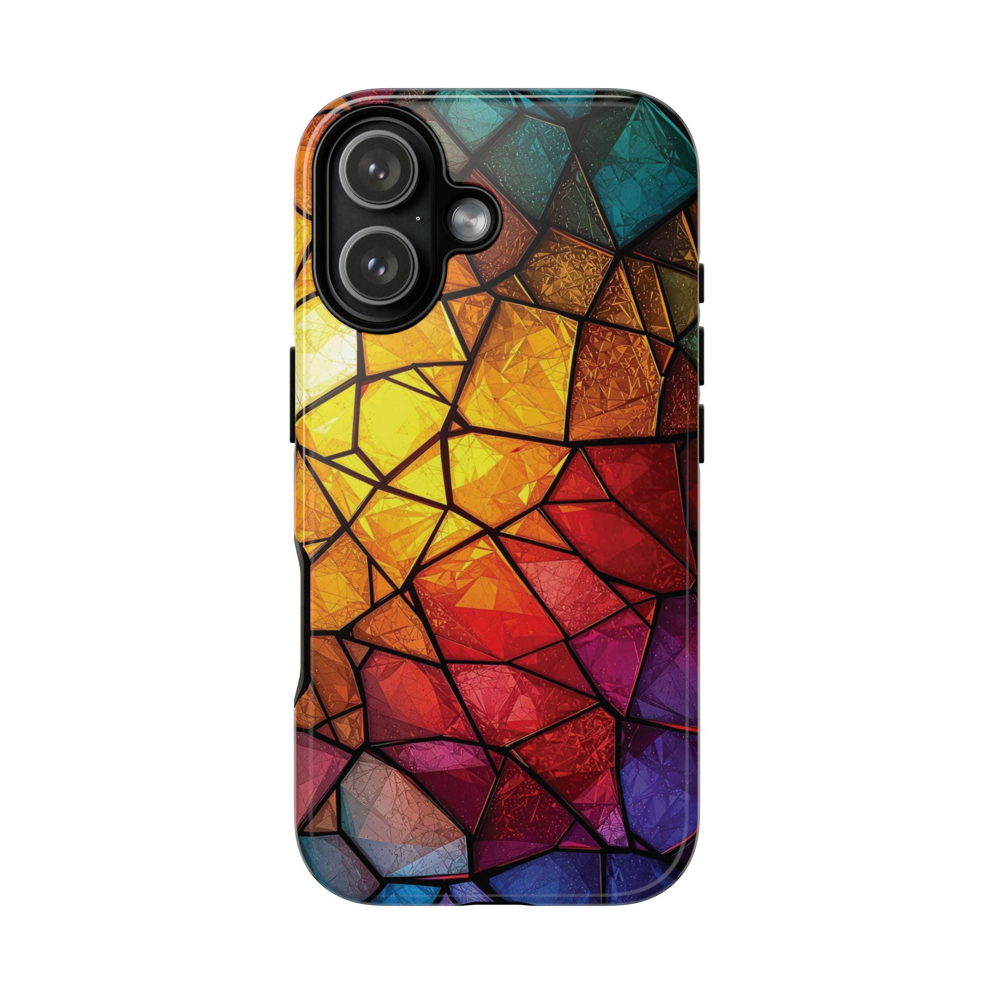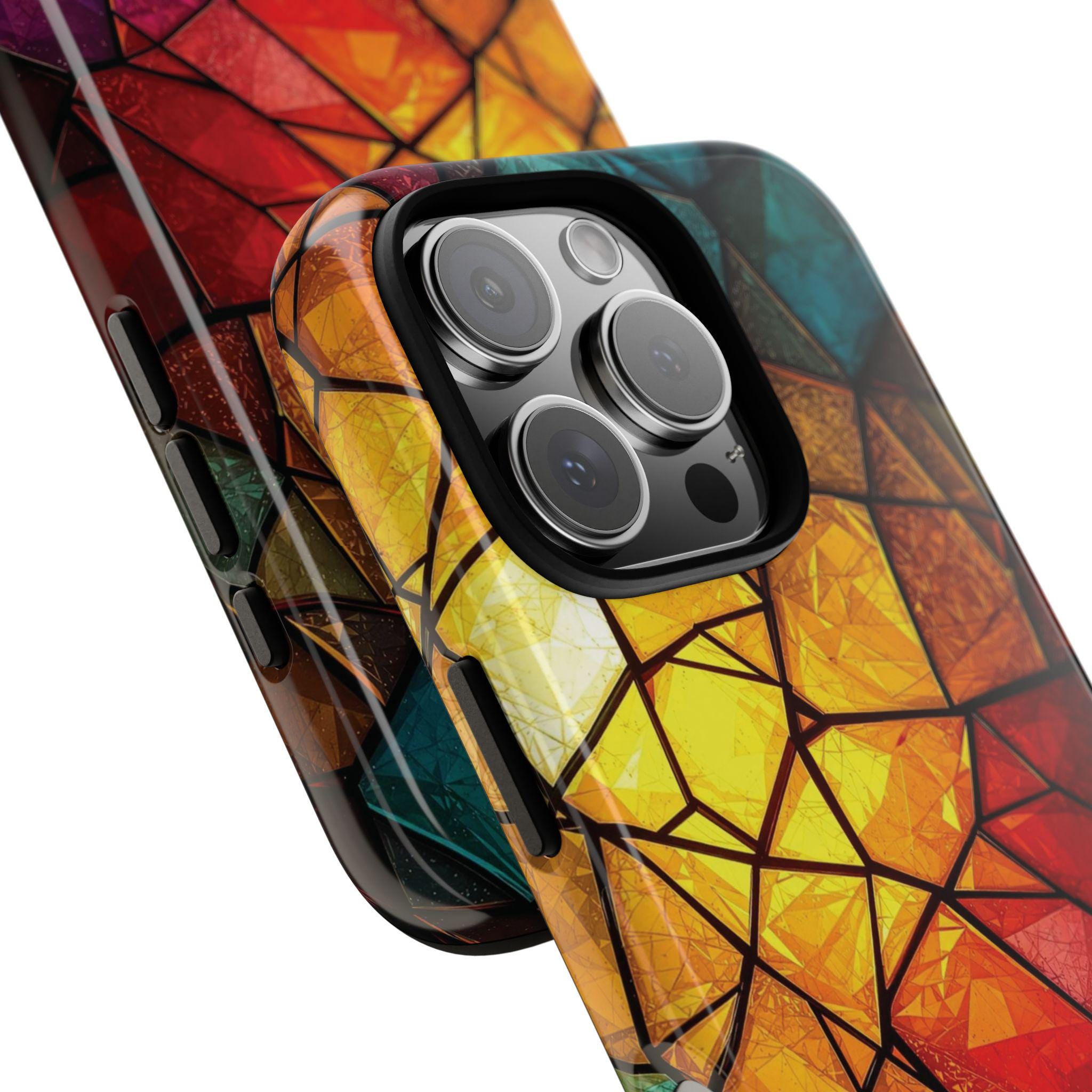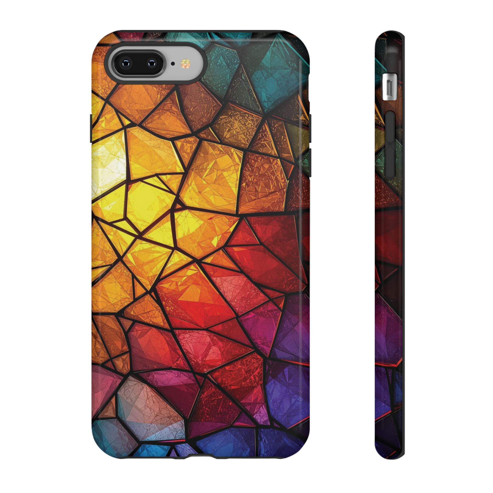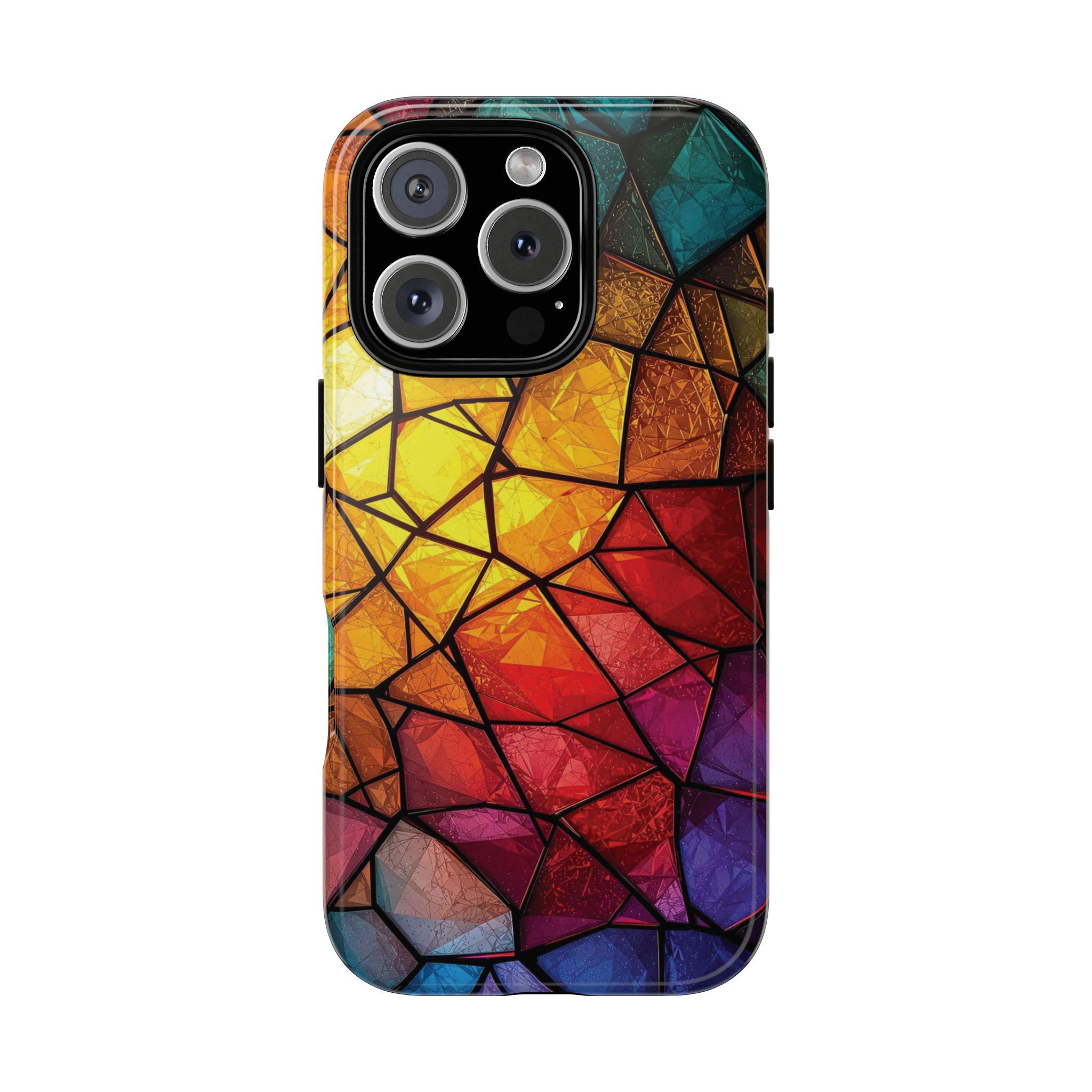 Vibrant stained glass Mosaic IPhone tough case. Introducing our vibrant phone case, designed to brighten your everyday life with stunning artwork. This product adds a cheerful and artistic touch to your phone, making it not just a protective accessory but also a statement piece. This sturdy case is ideal for adults seeking both style and durability. Great for gifting during holidays like birthdays, Mother's Day, or any occasion where you want to bring a smile. Use it to enhance your daily routines, whether at work, school, or leisure activities, and enjoy the subconscious uplift that beautiful designs can bring to your life.