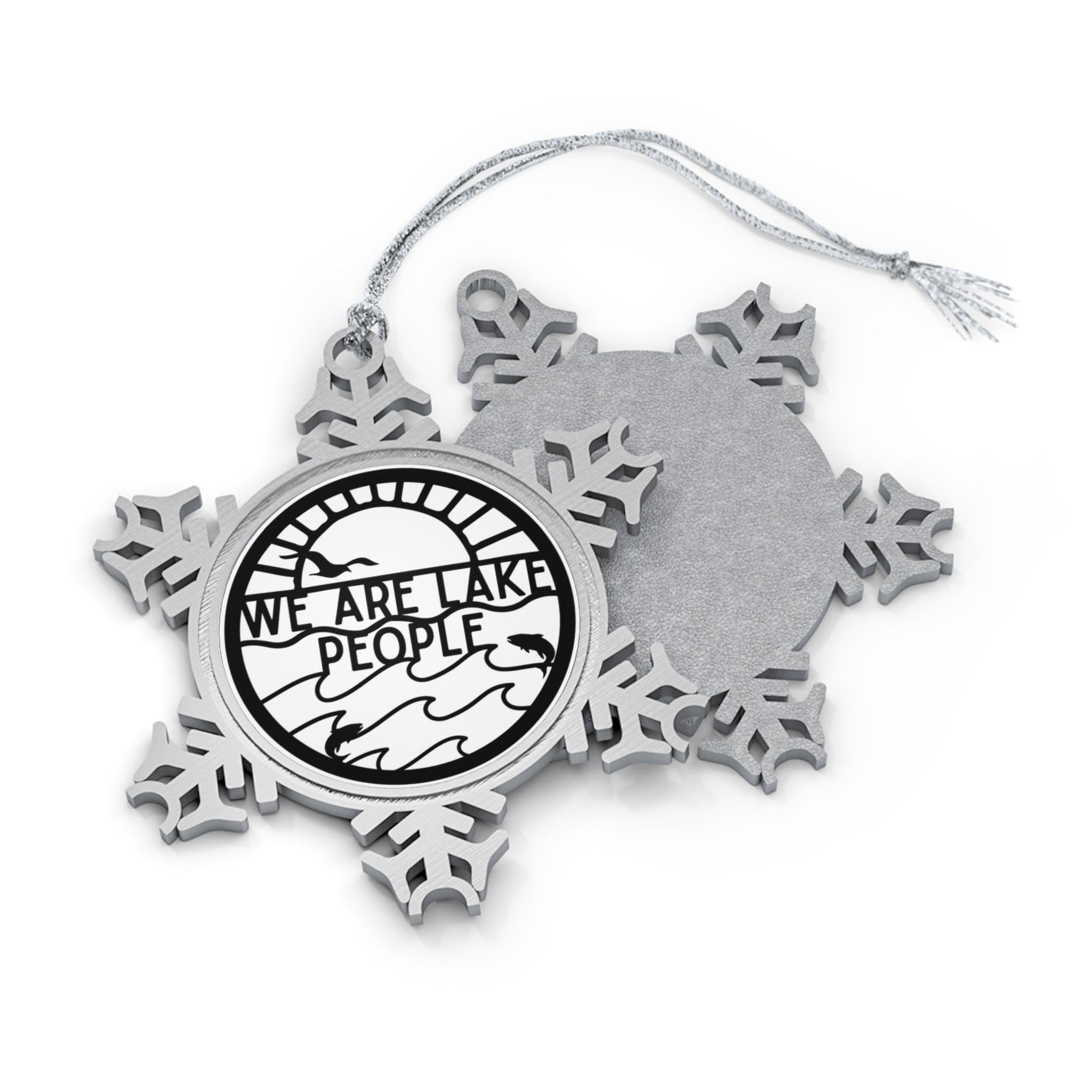 Snowflake Ornament, Lake Decor Pewter Snowflake Christmas Tree Hanging Decoration, Winter Holiday Gift, Rustic Lodge Cabin Decor, Lake House