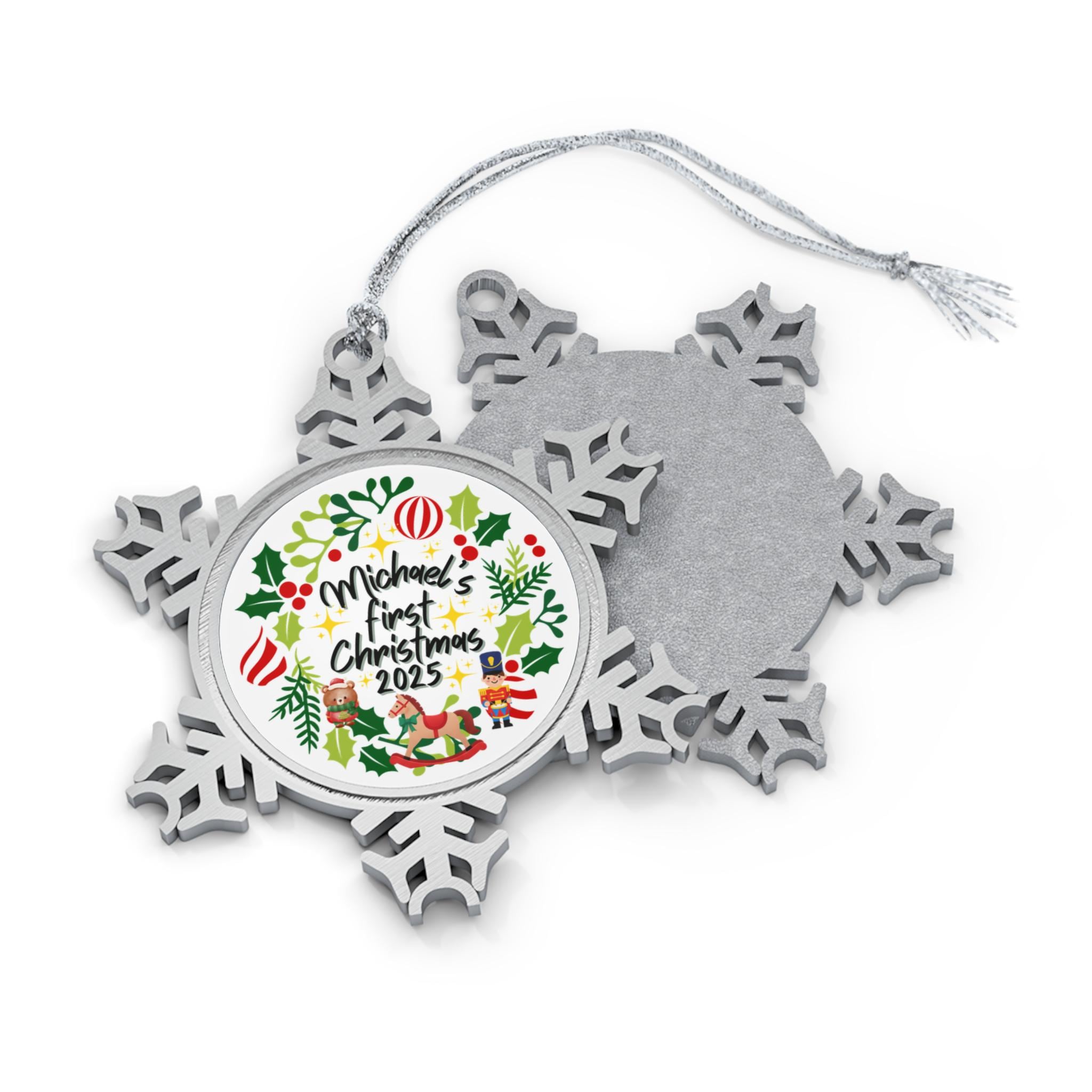 Personalized Christmas Ornament Baby First Christmas, Pewter Snowflake, First Christmas New Baby Boy, Baby Shower Gift, Family Heirloom