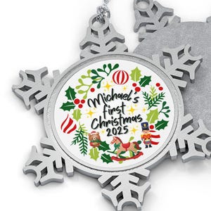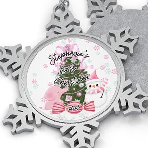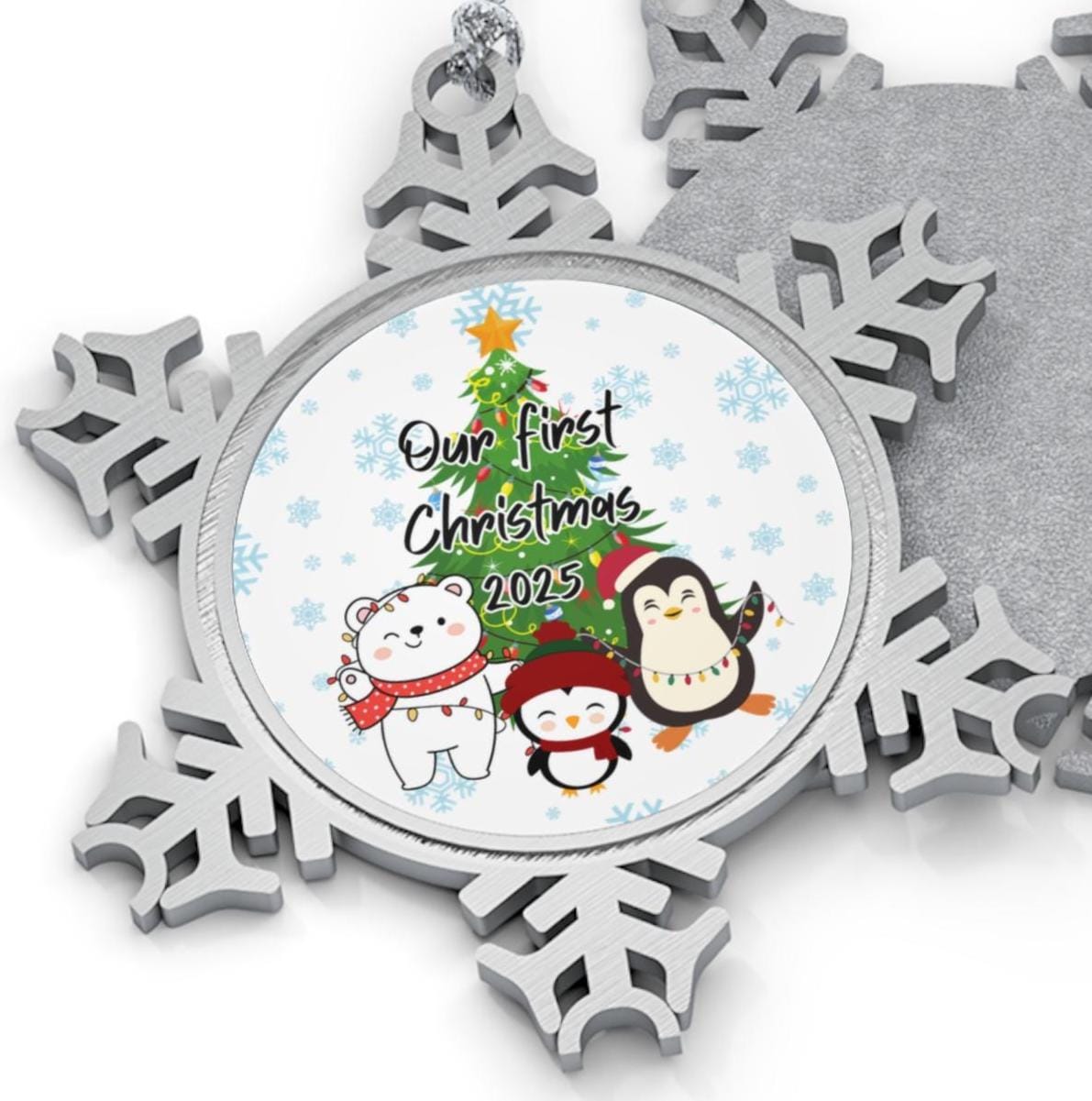 Personalized Snowflake Ornament for Christmas, Wedding Date Gift Holiday Decor, Keepsake Wedding Gift, FirstChristmas, Cute Animal Design