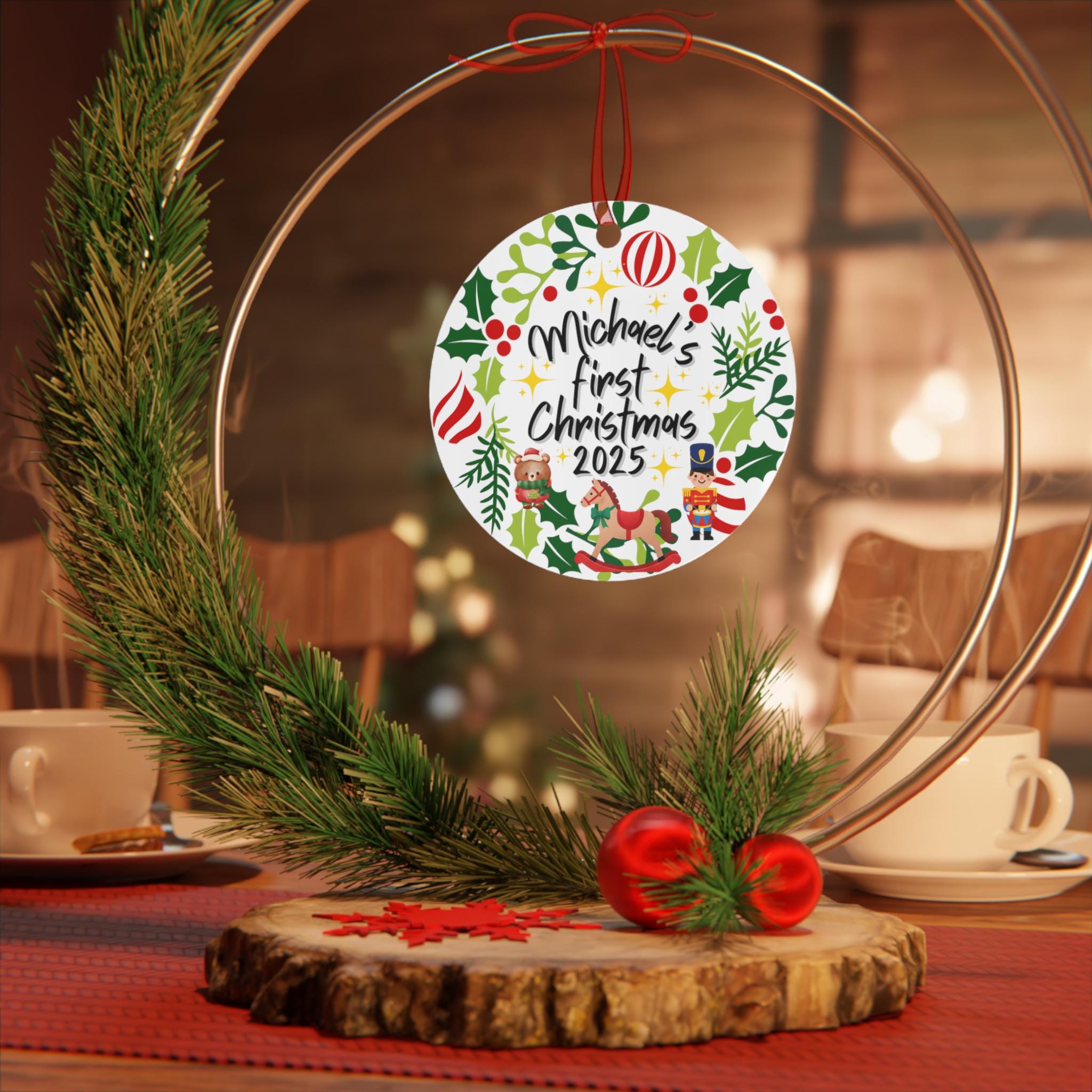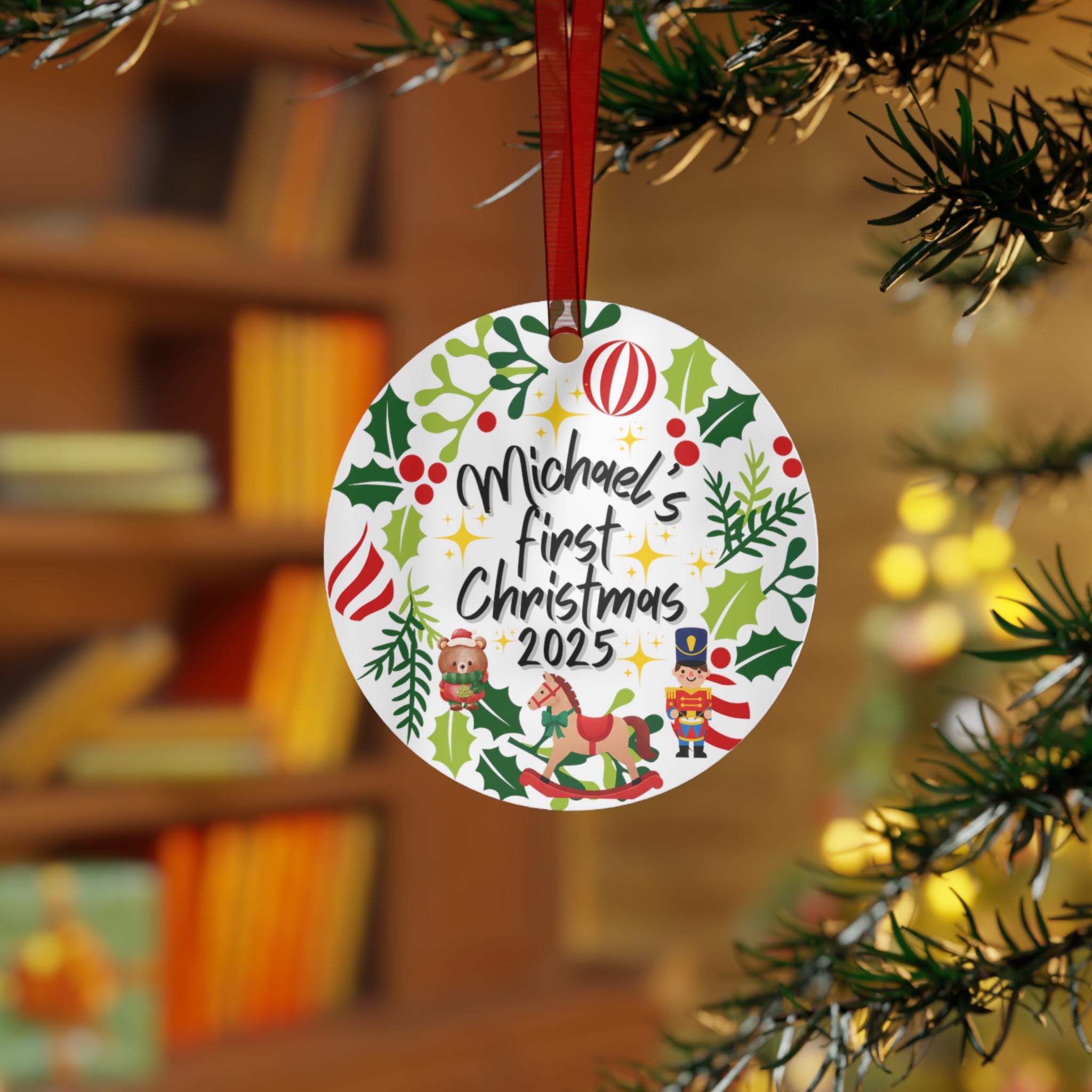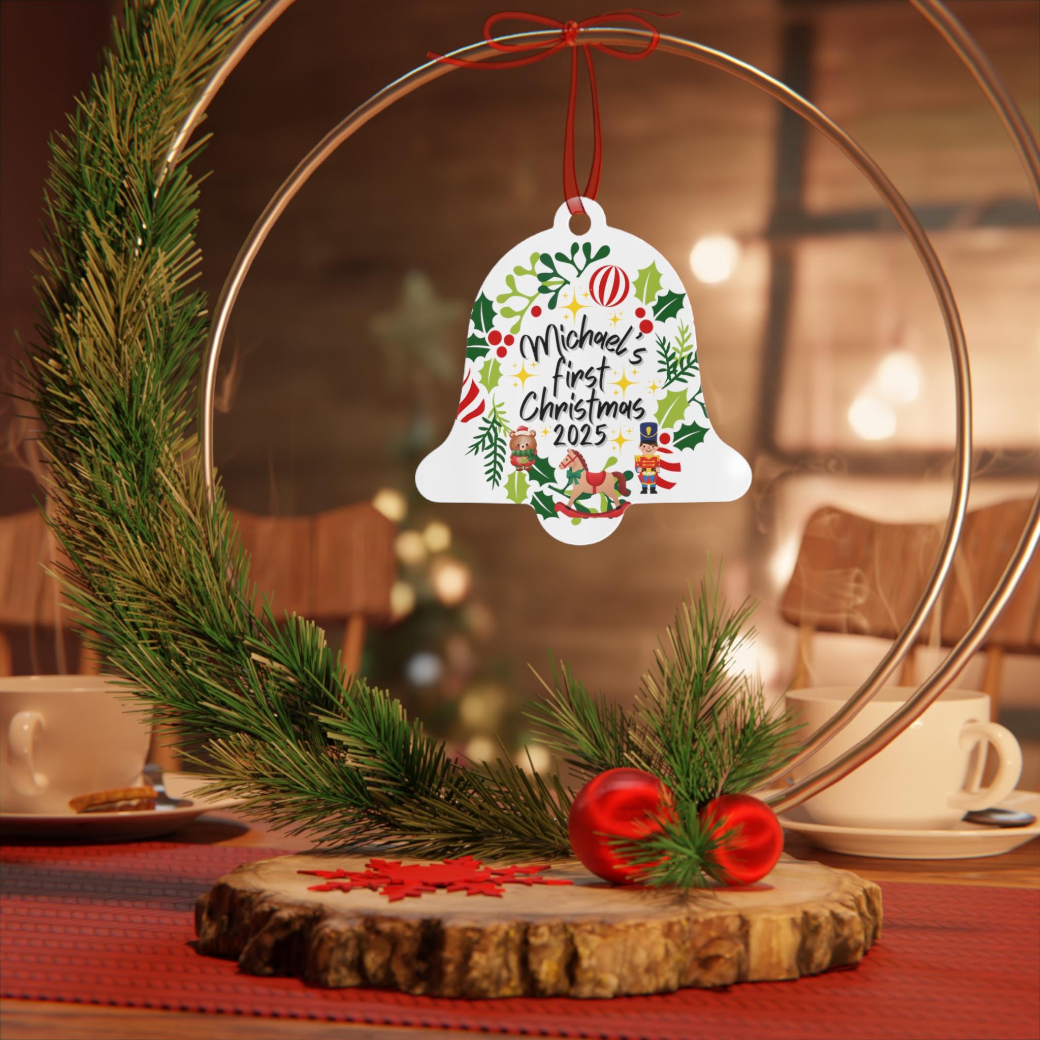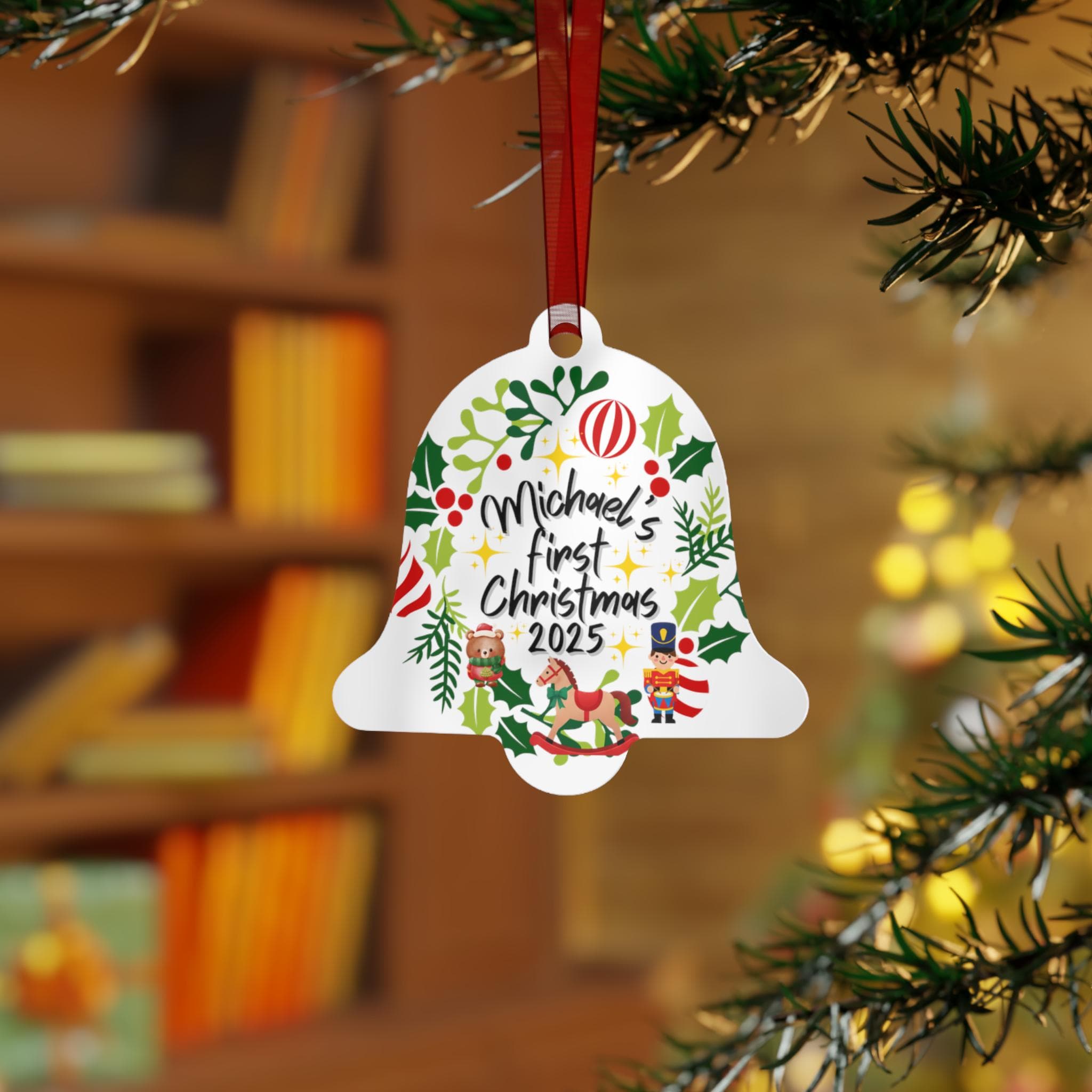 Celebrate your baby boy’s first Christmas with these adorable metal ornaments, available in four shapes - Bell, Tree, Round, and Oval. Hang them on your Christmas tree for a festive and unique touch. Perfect for new parents or grandparents looking to commemorate this special occasion.