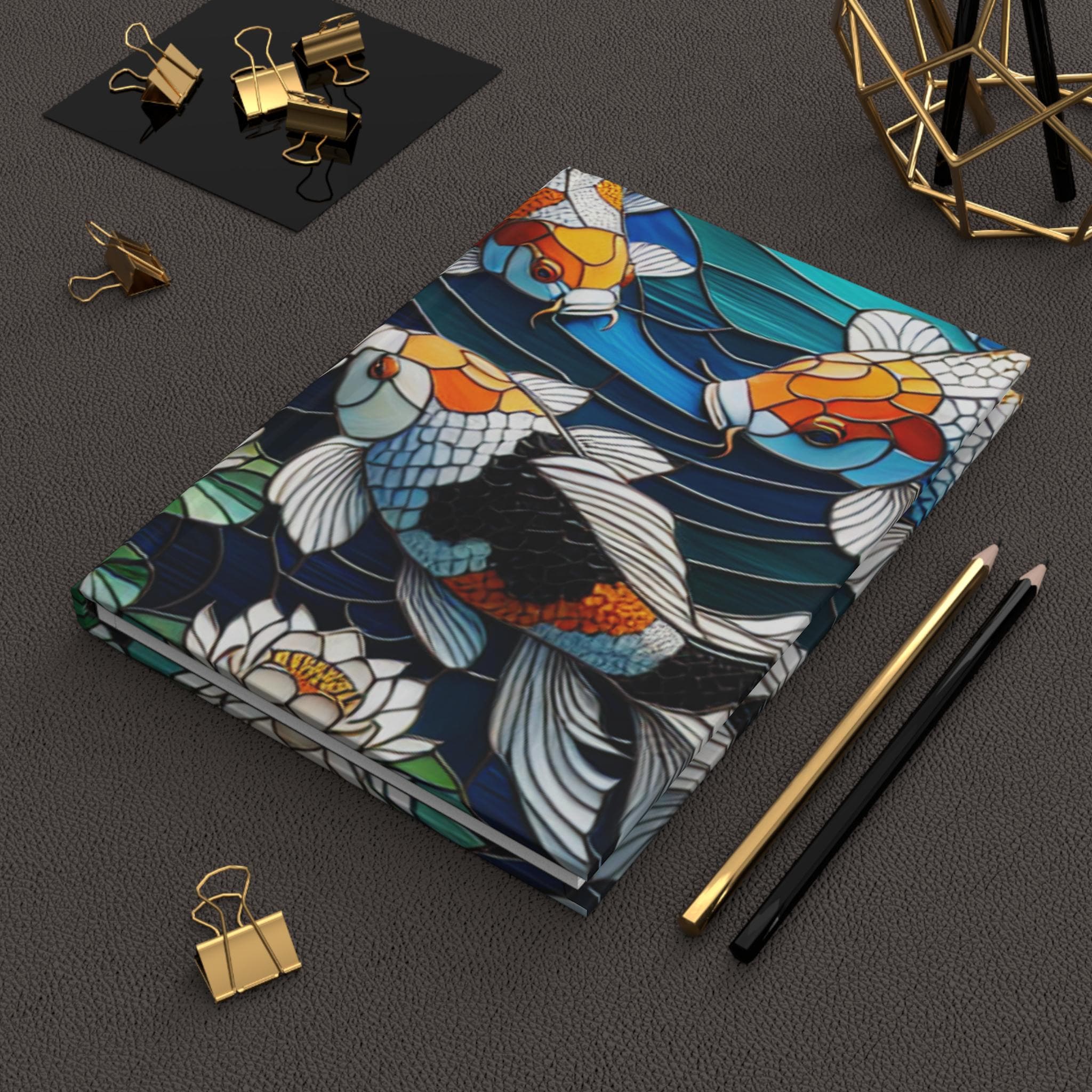 Koi Fish Stained Glass Journal, Lined Writing Notebook, Artistic Gift for Fish Lovers, Creative Diary