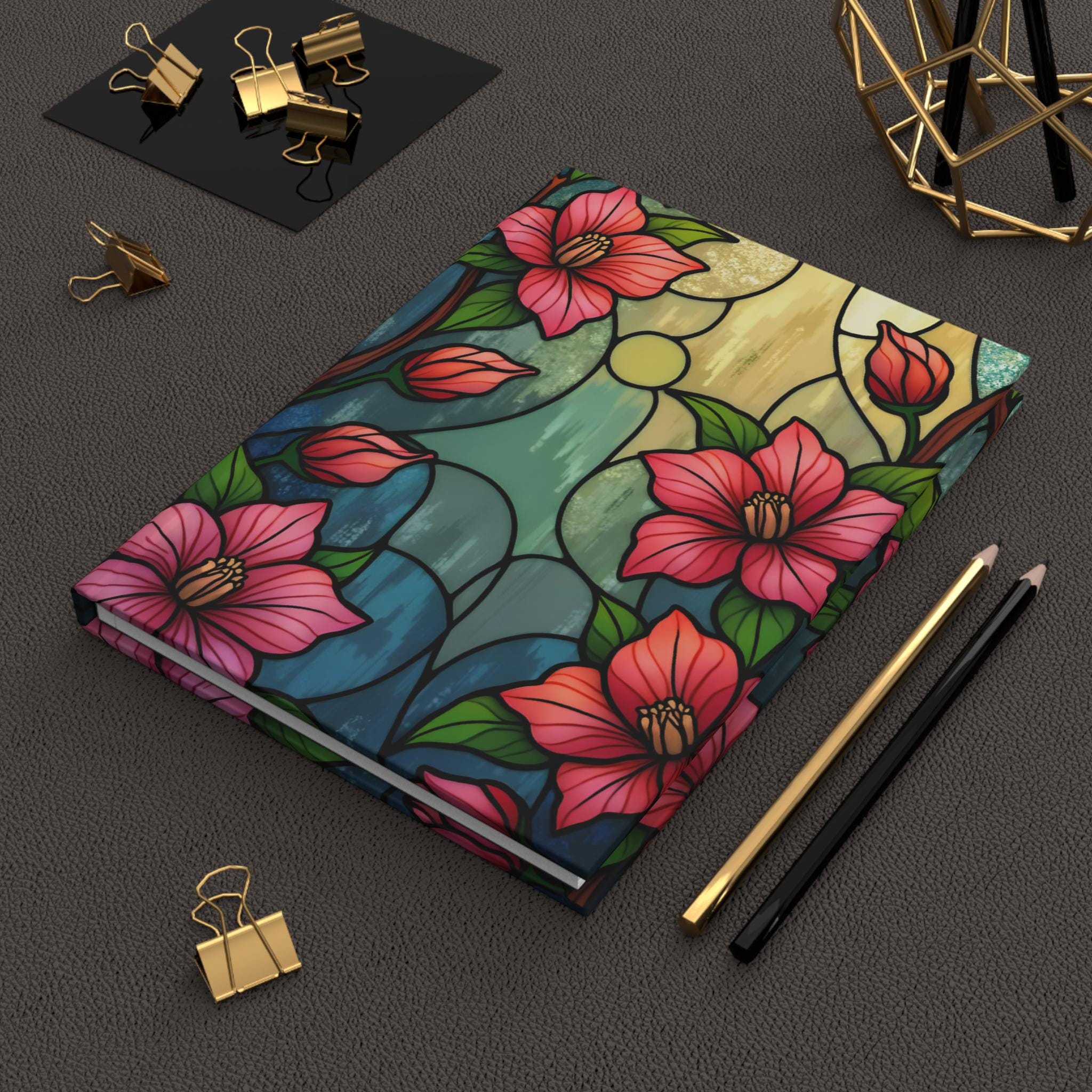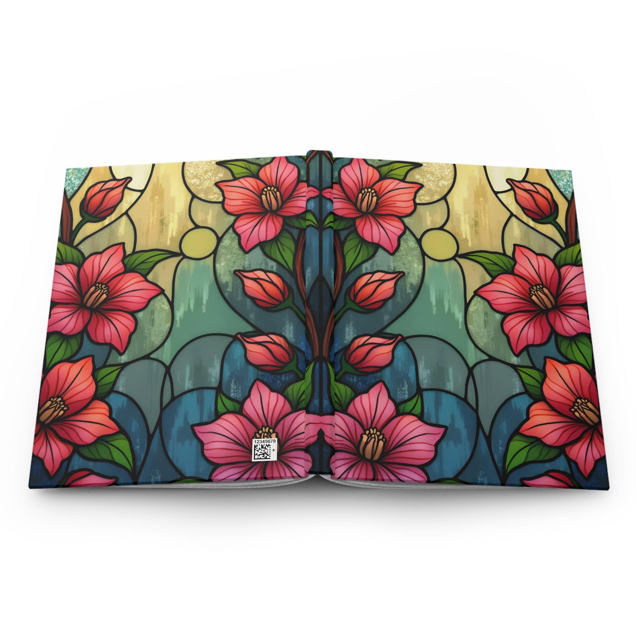 Floral Stained Glass Journal, Blossom Writing Notebook, Artistic Gift for Flower Lovers, Creative Hardcover Diary