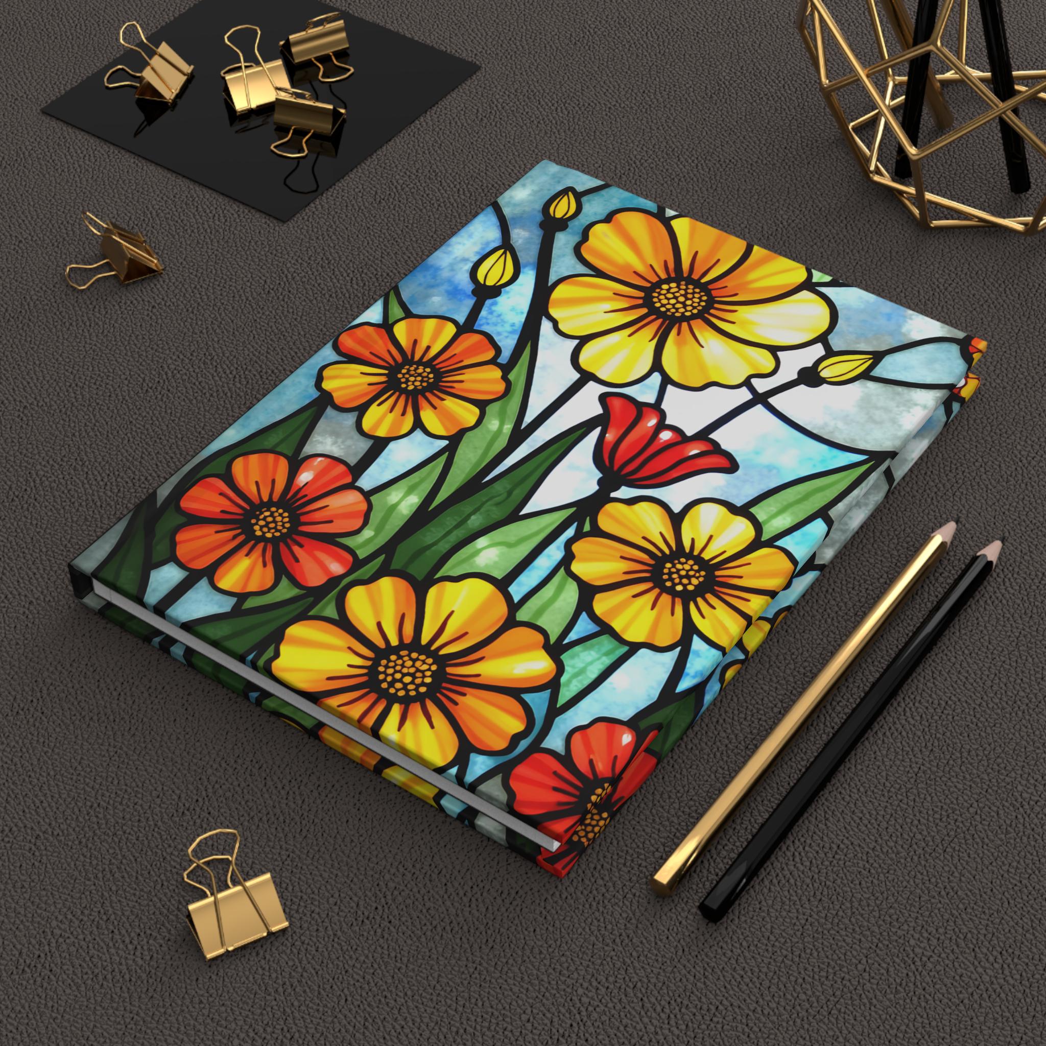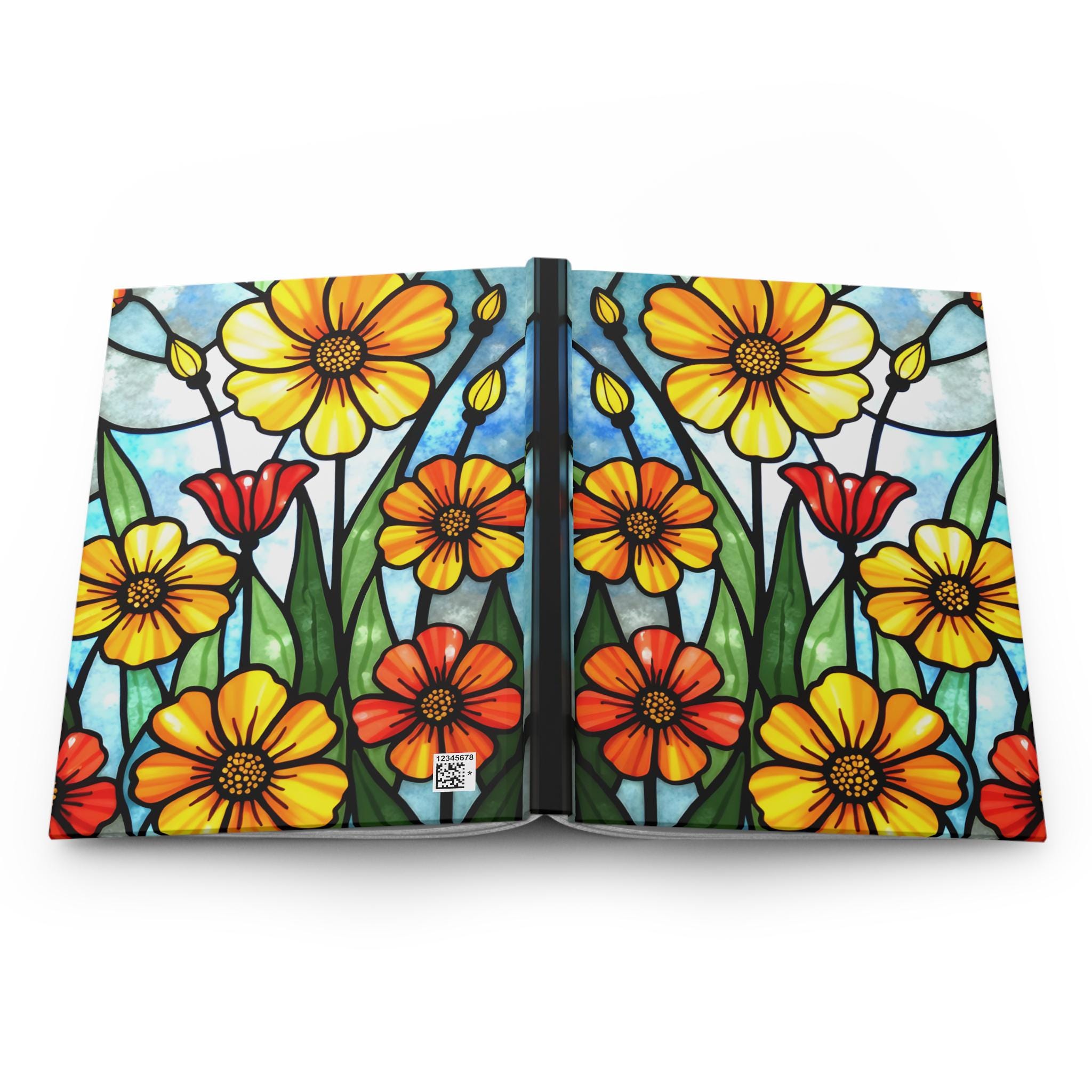 Wildflower Stained Glass Journal, Flowers Writing Notebook, Artistic Gift for Flower Lovers, Creative Hardcover Diary