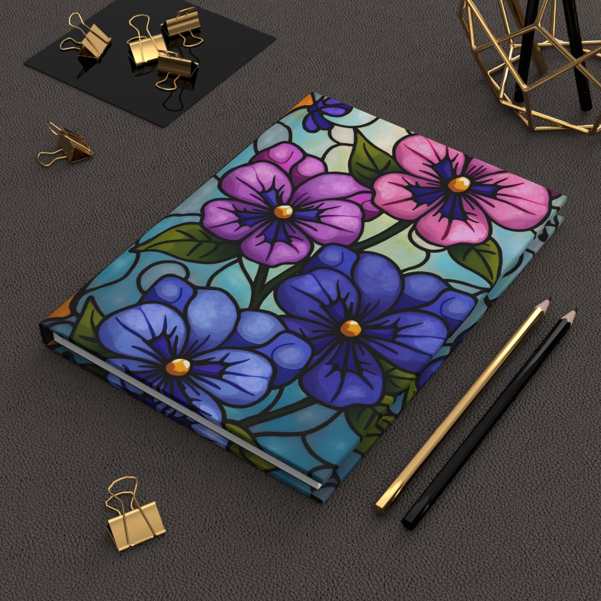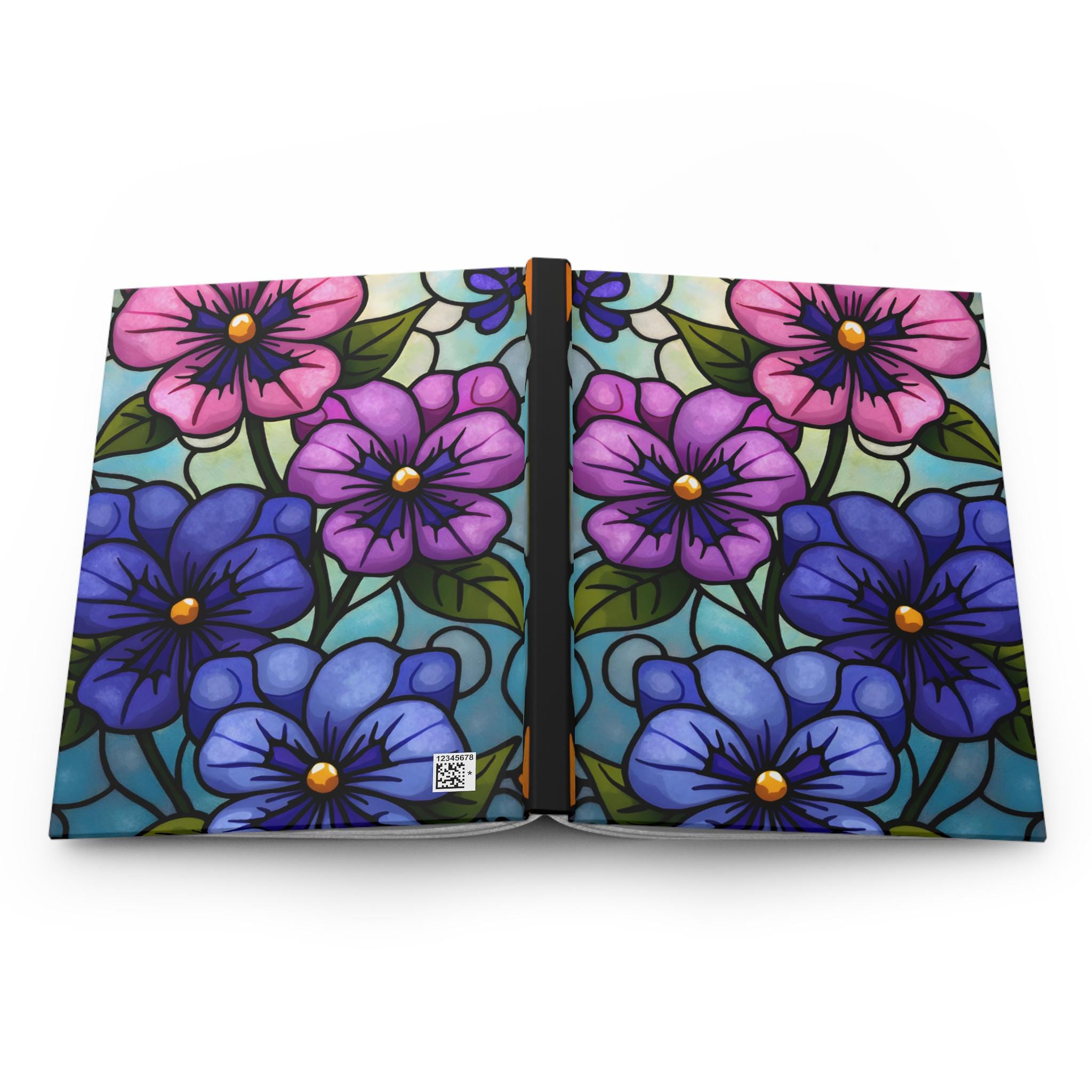 Pansy Stained Glass Journal, Hardcover Writing Notebook, Artistic Gift for Flower Lovers, Creative Hardcover Diary