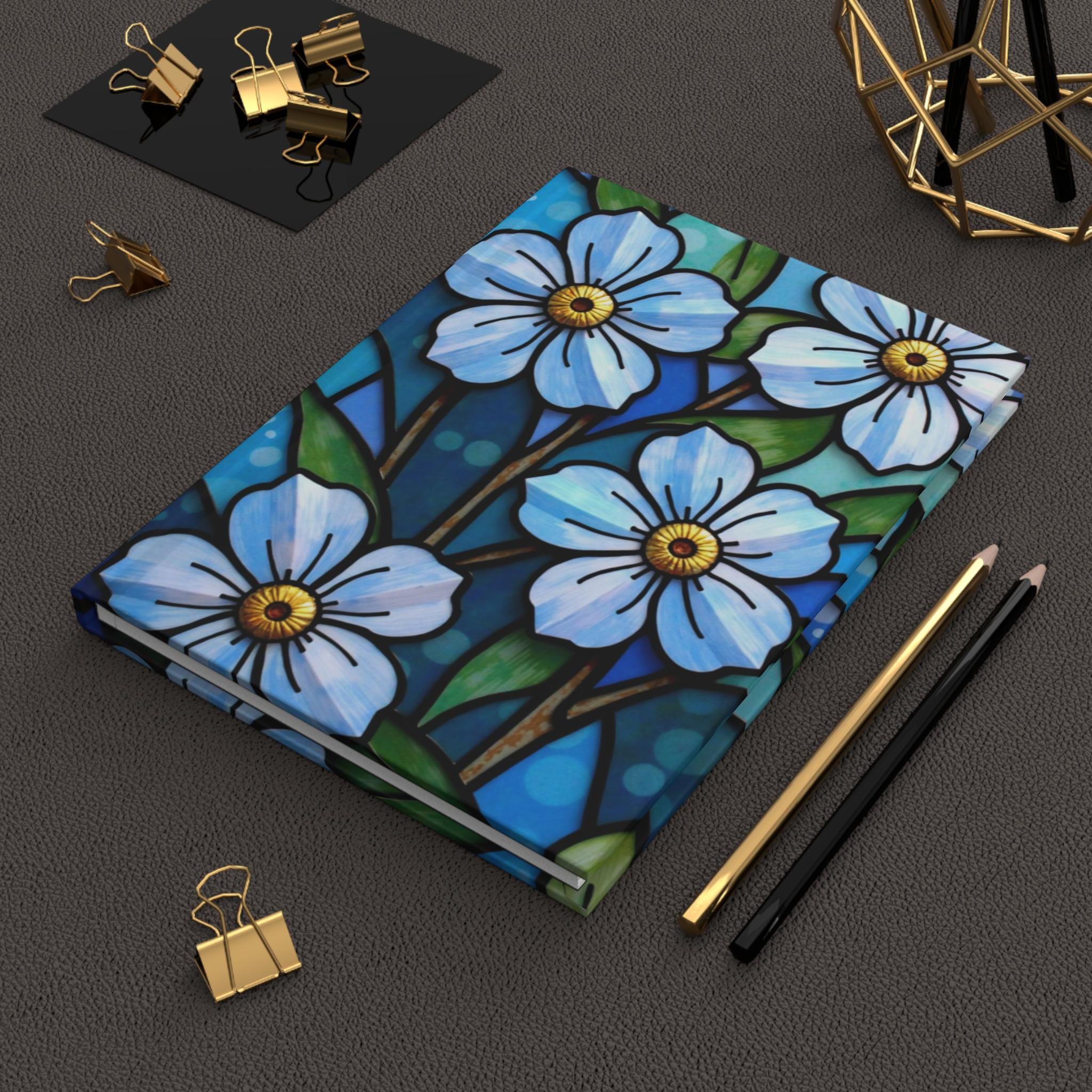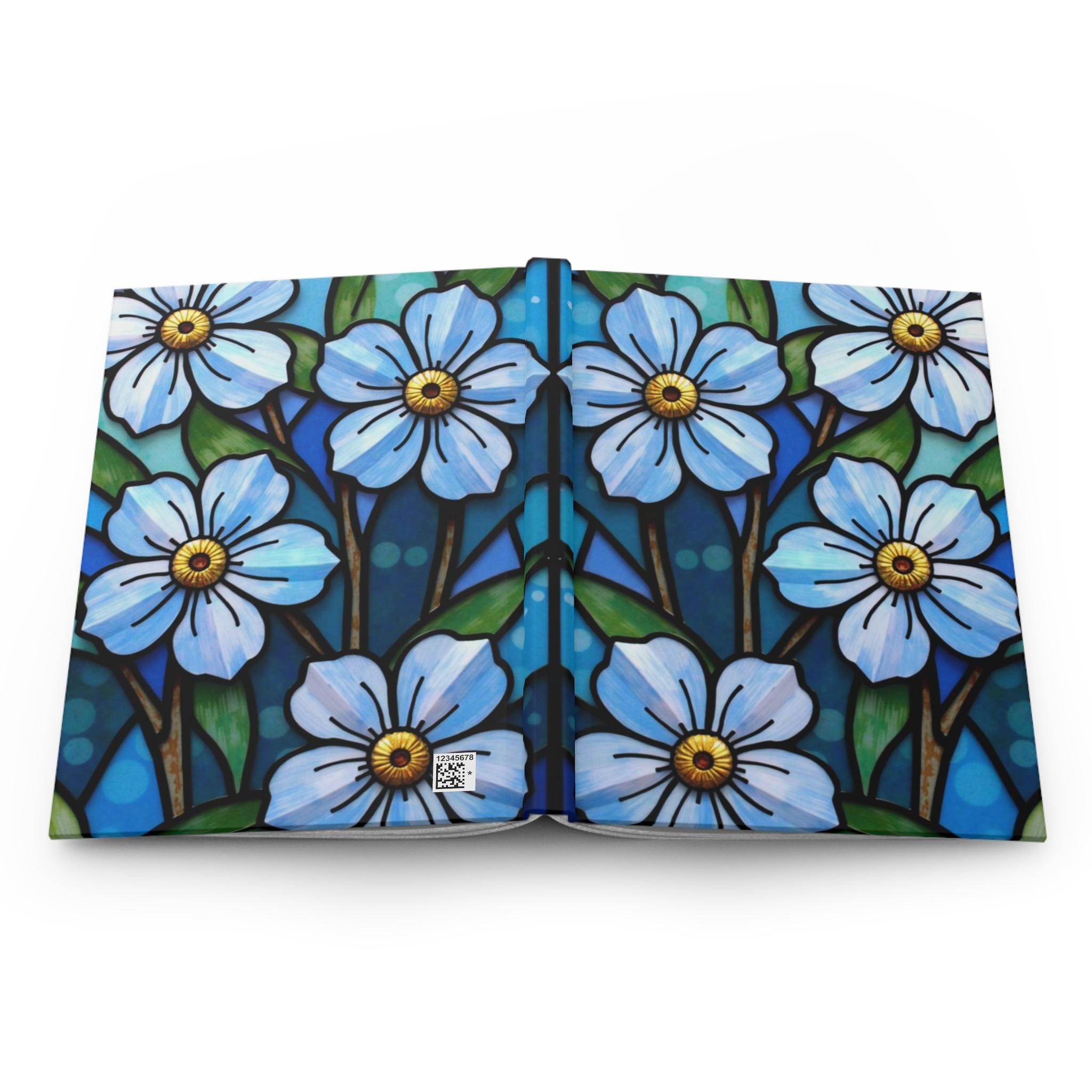 Forget Me Not Stained Glass Journal, Blue Floral Hardcover Writing Notebook, Artistic Gift for Flower Lovers, Creative Hardcover Diary