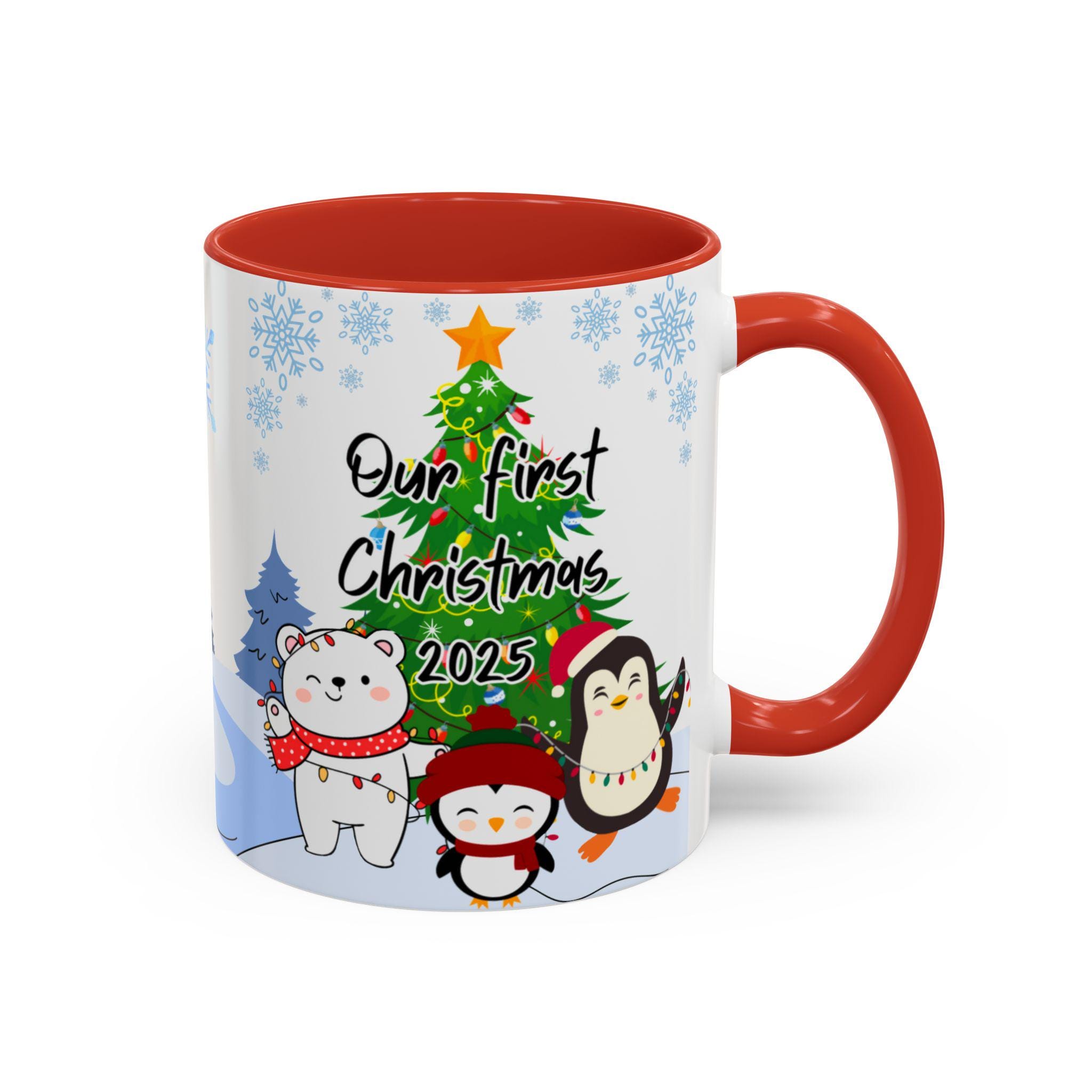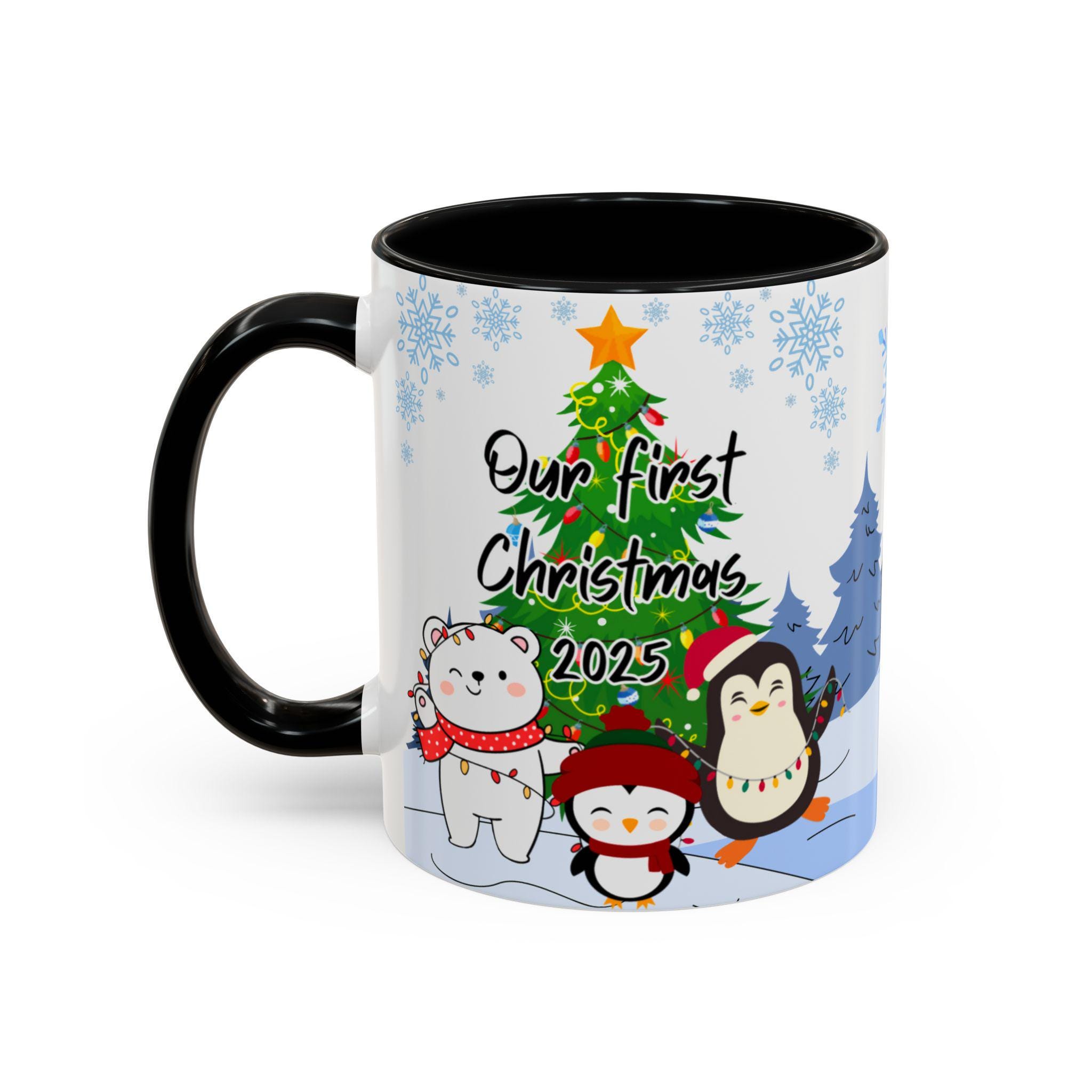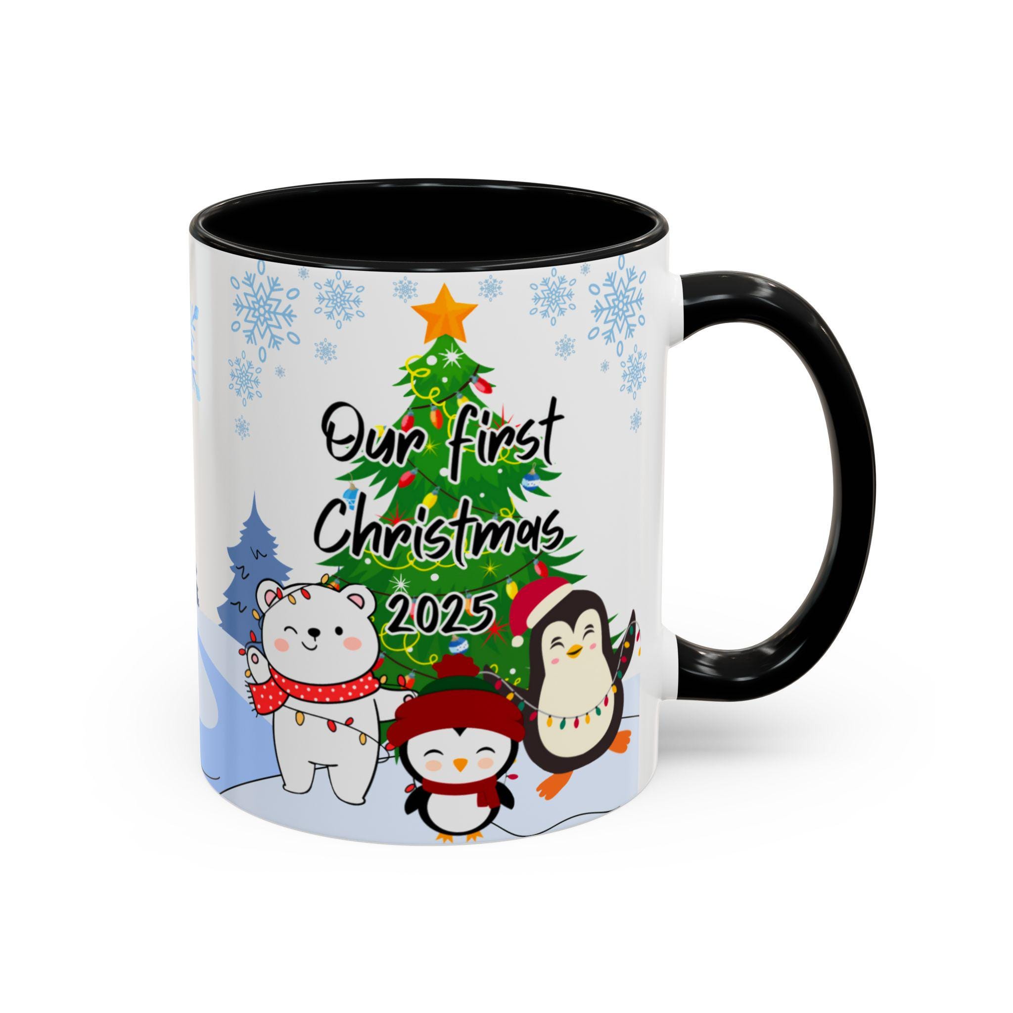 Personalized Holiday Coffee Mug, Cute Christmas Mug, Our First Christmas 2025 Gift, Penguin and Bear Design, Winter Decor