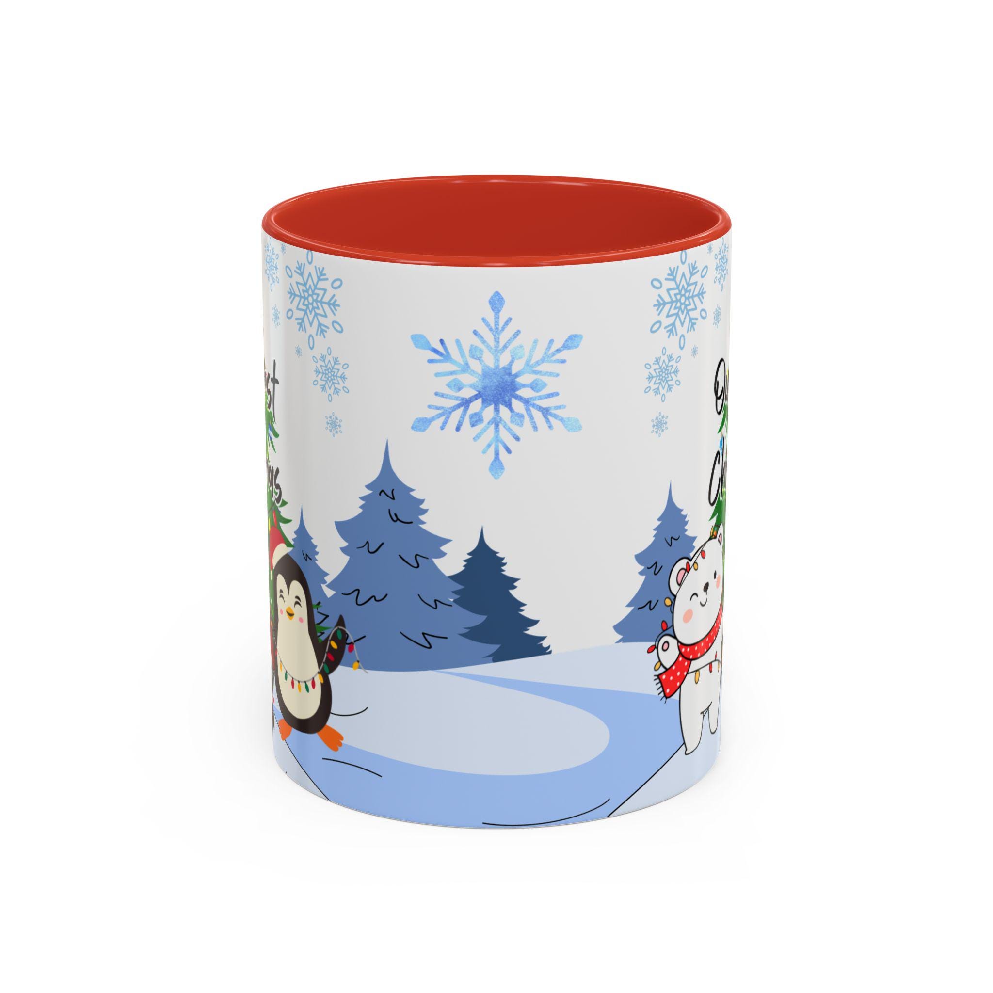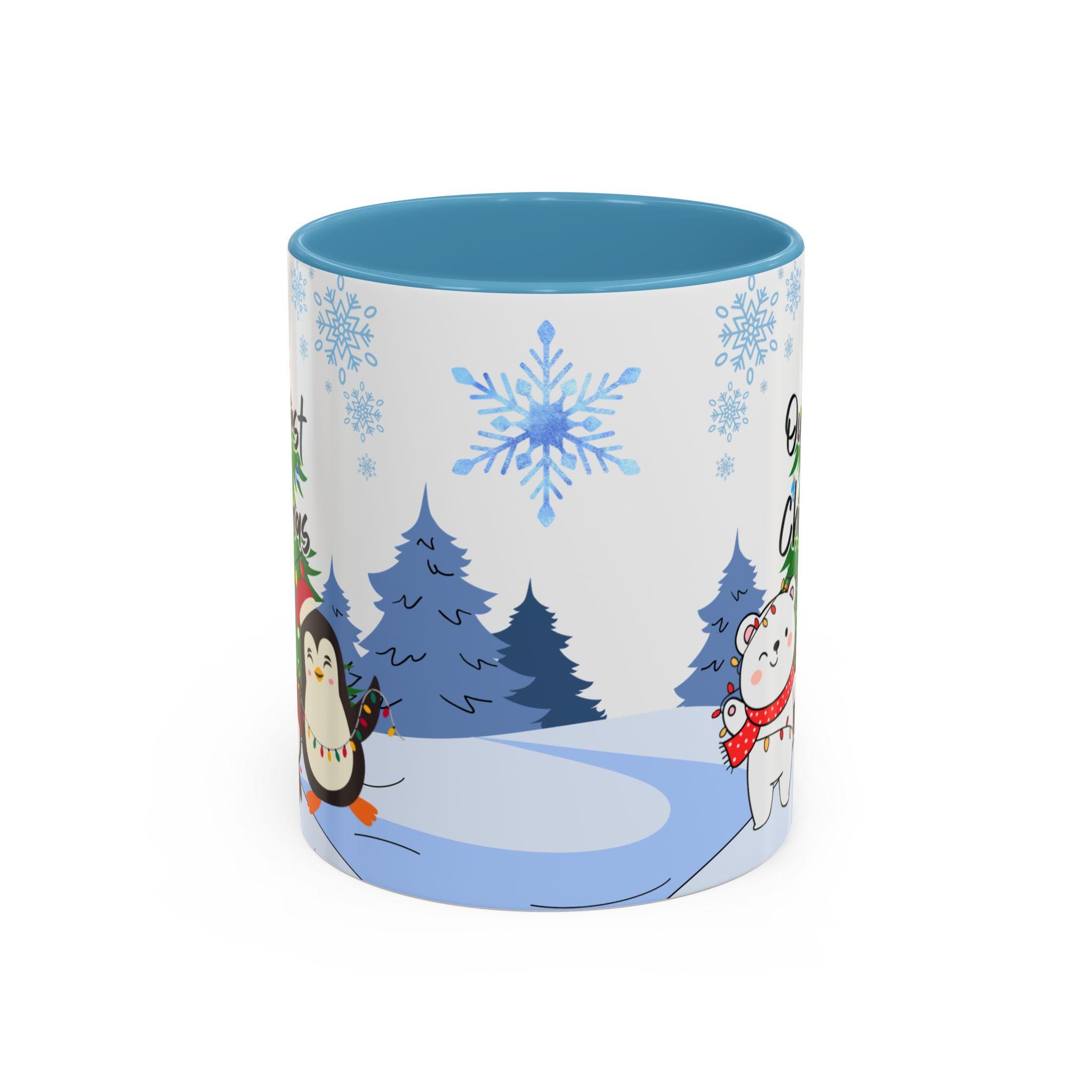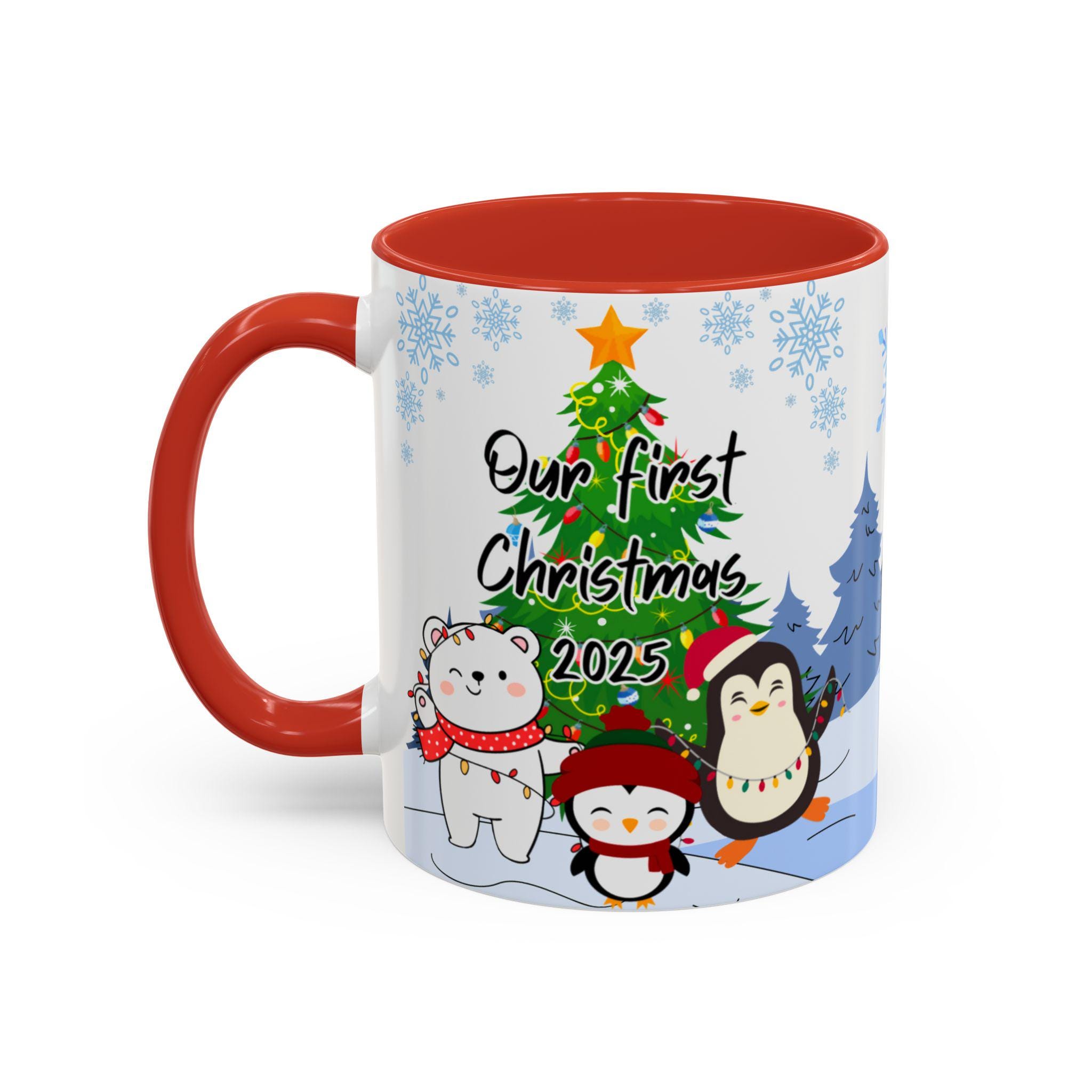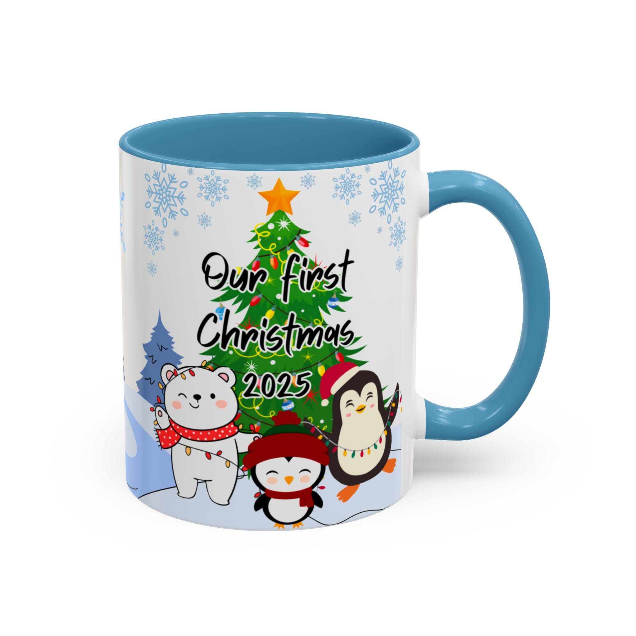 Personalized Holiday Coffee Mug, Cute Christmas Mug, Our First Christmas 2025 Gift, Penguin and Bear Design, Winter Decor