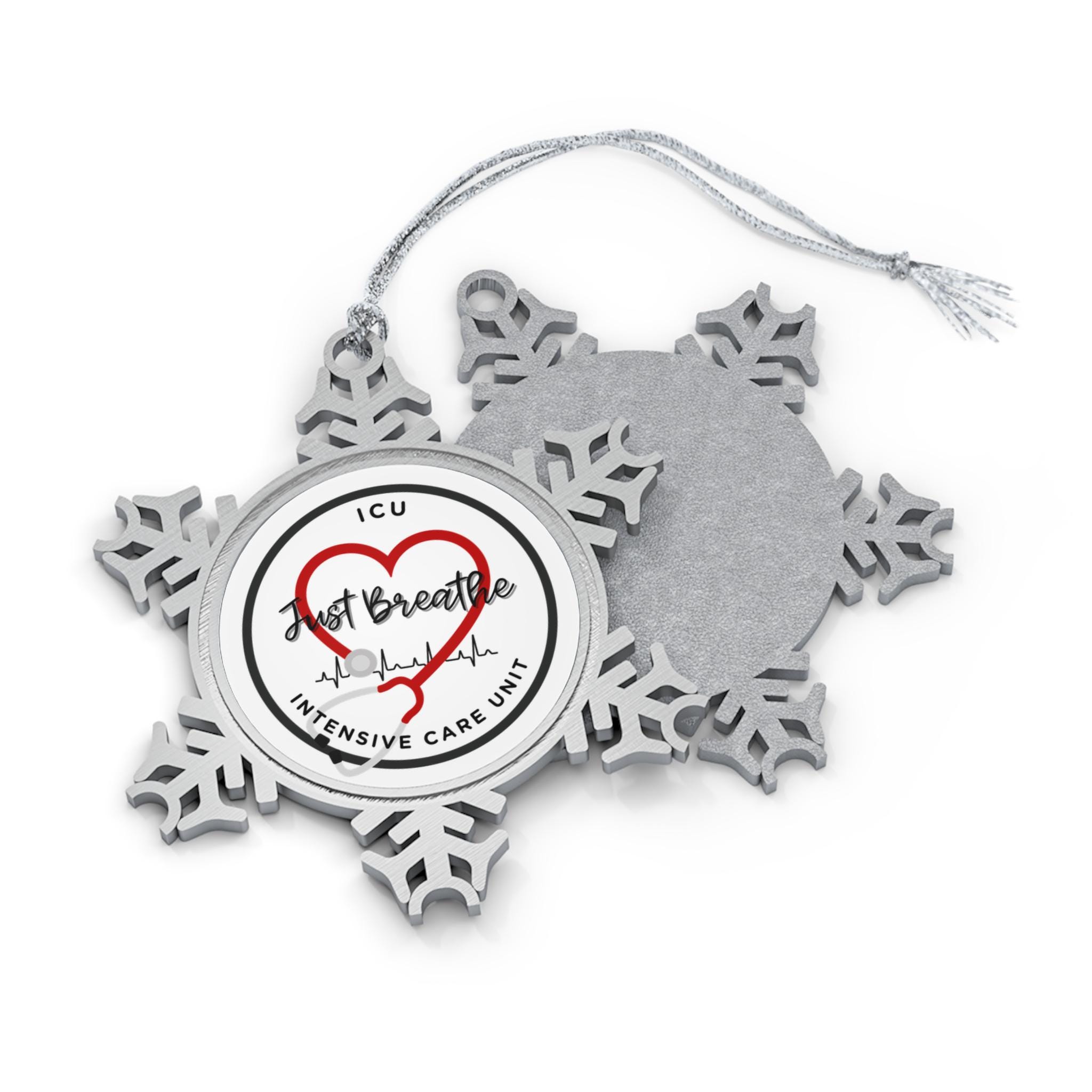 This ICU Nurse Snowflake Ornament is a personalized keepsake perfect for holiday decor. With vibrant colors and a unique snowflake shape, this pewter ornament adds a winter home accent. Ideal as a gift for ICU nurses or as a Christmas decoration.