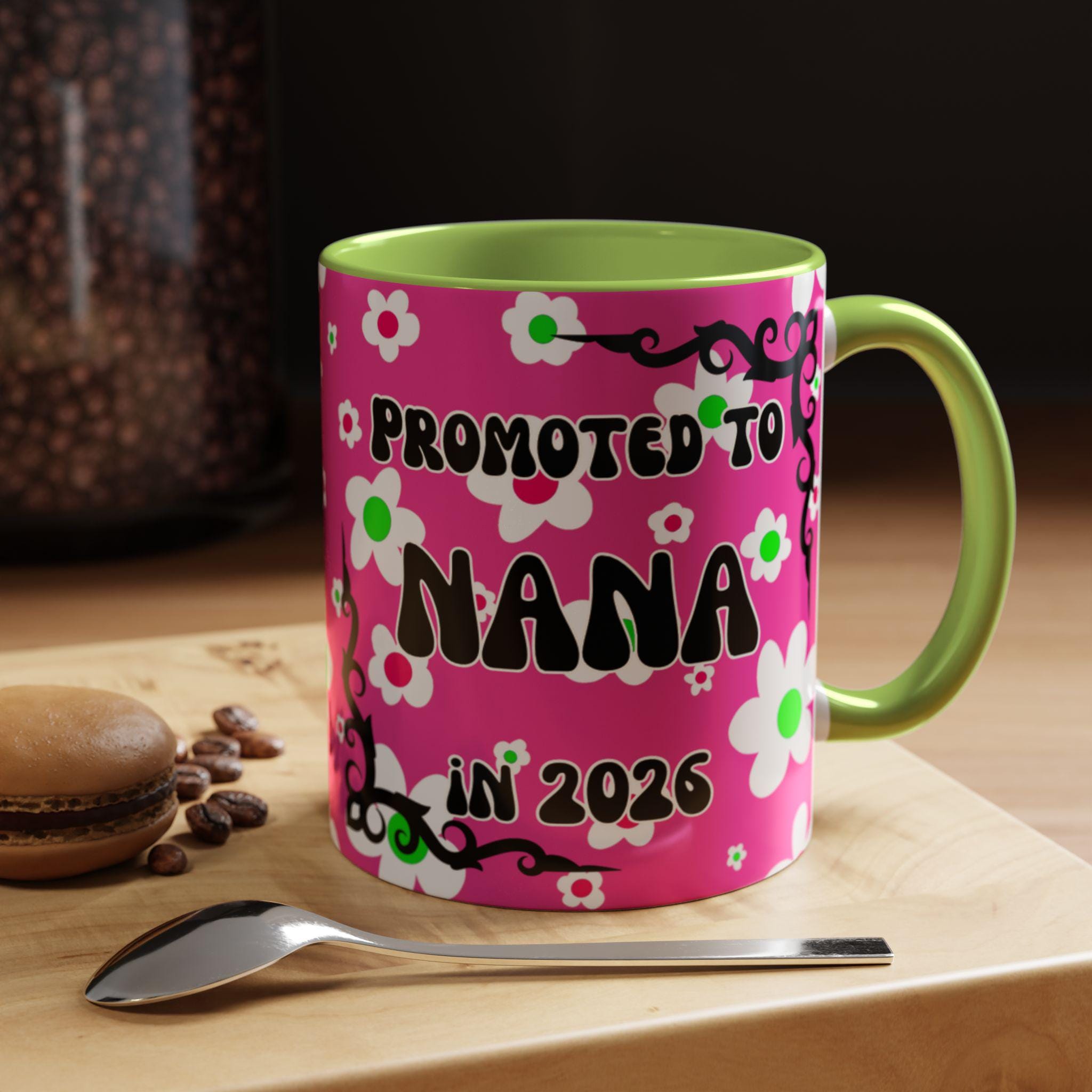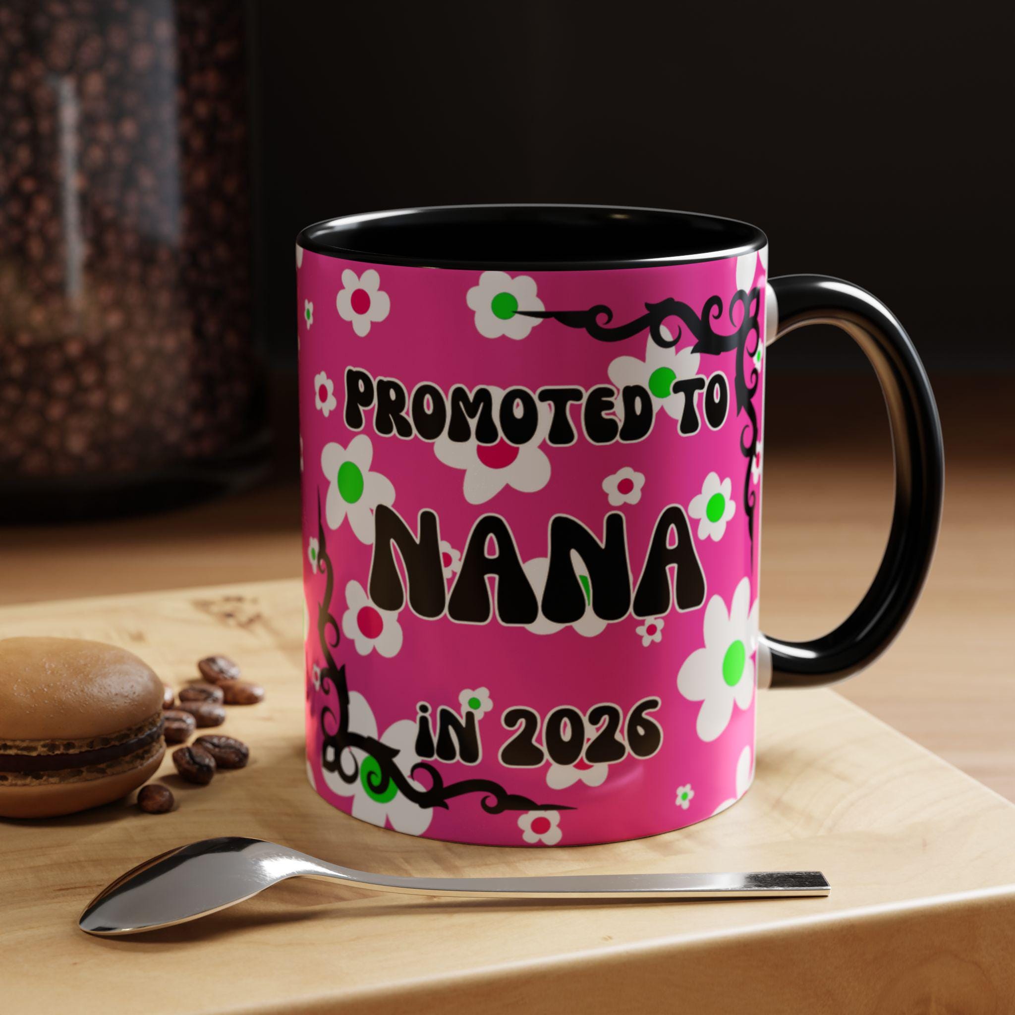 Personalized Nana Pregnancy Announcement Coffee Mug, Bright Floral Design, Grandma Mug, Ditsy Daisy Mug for Mom or Mother-in-Law