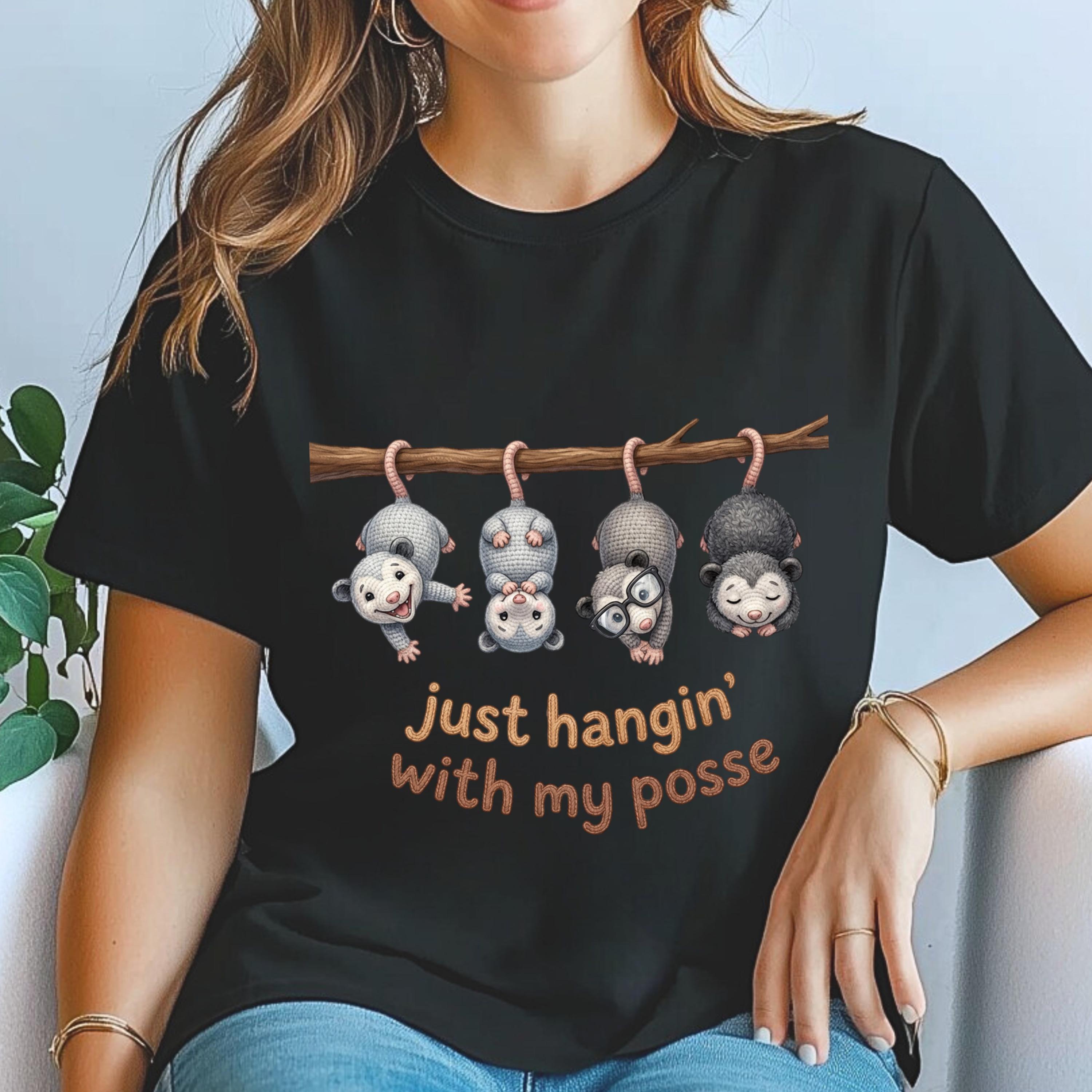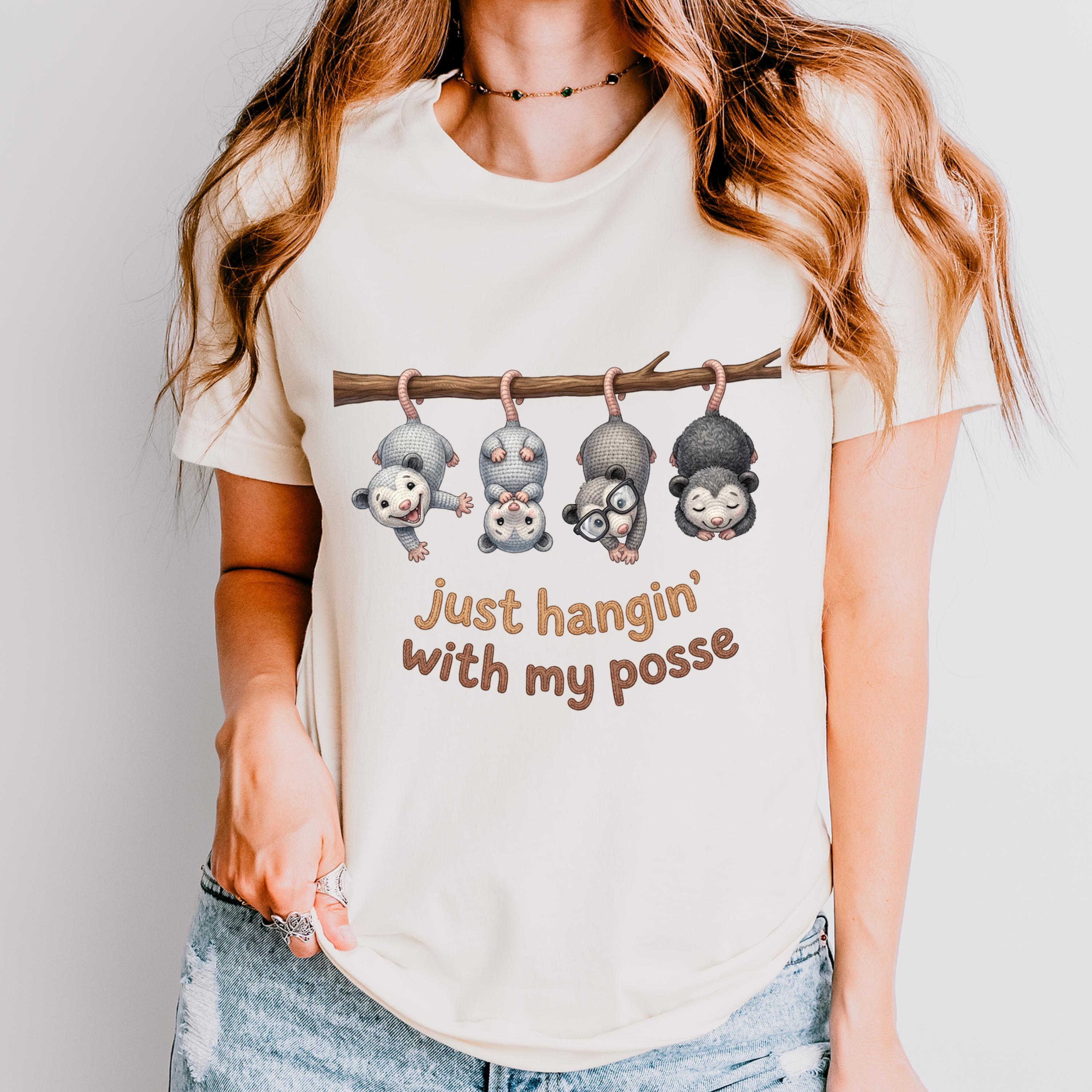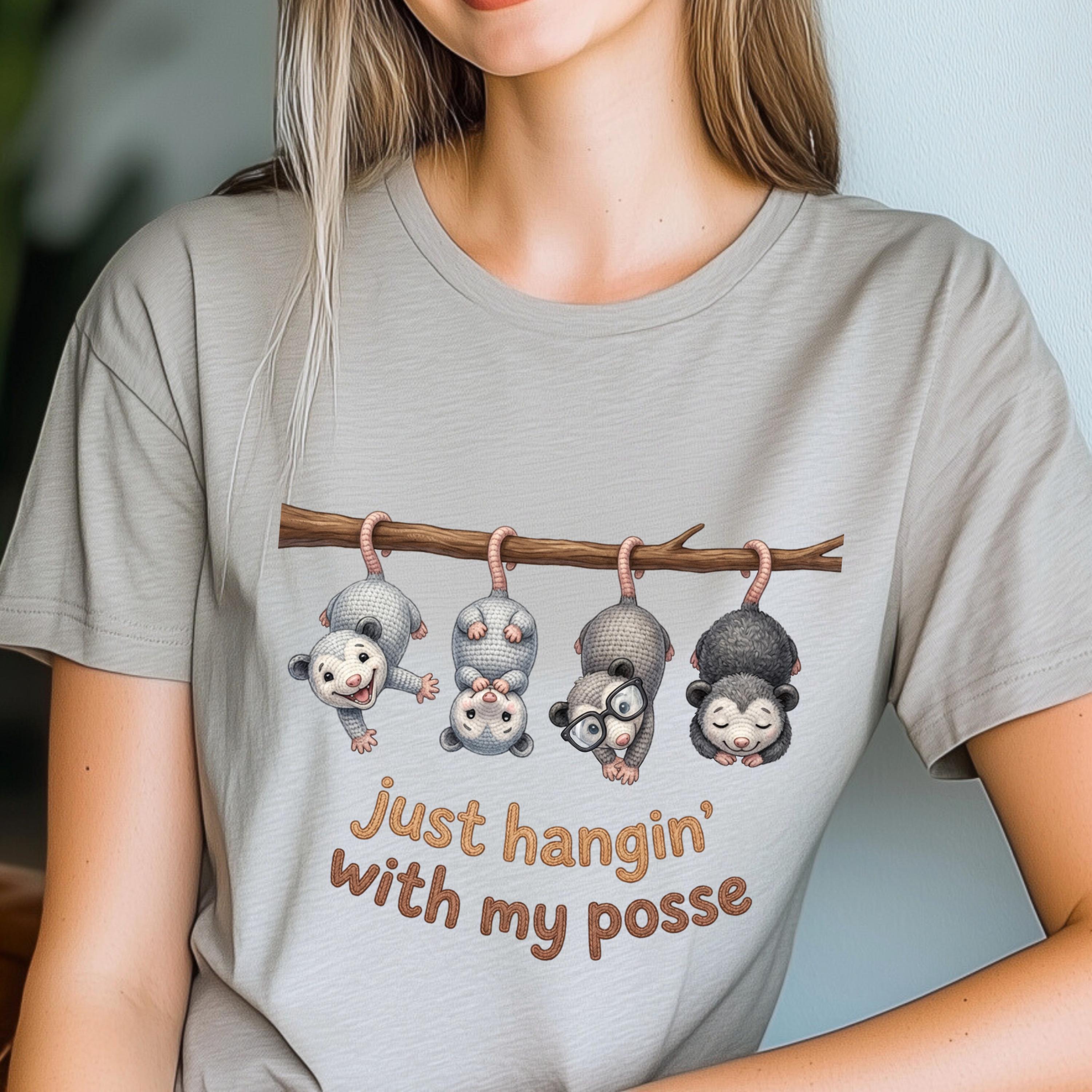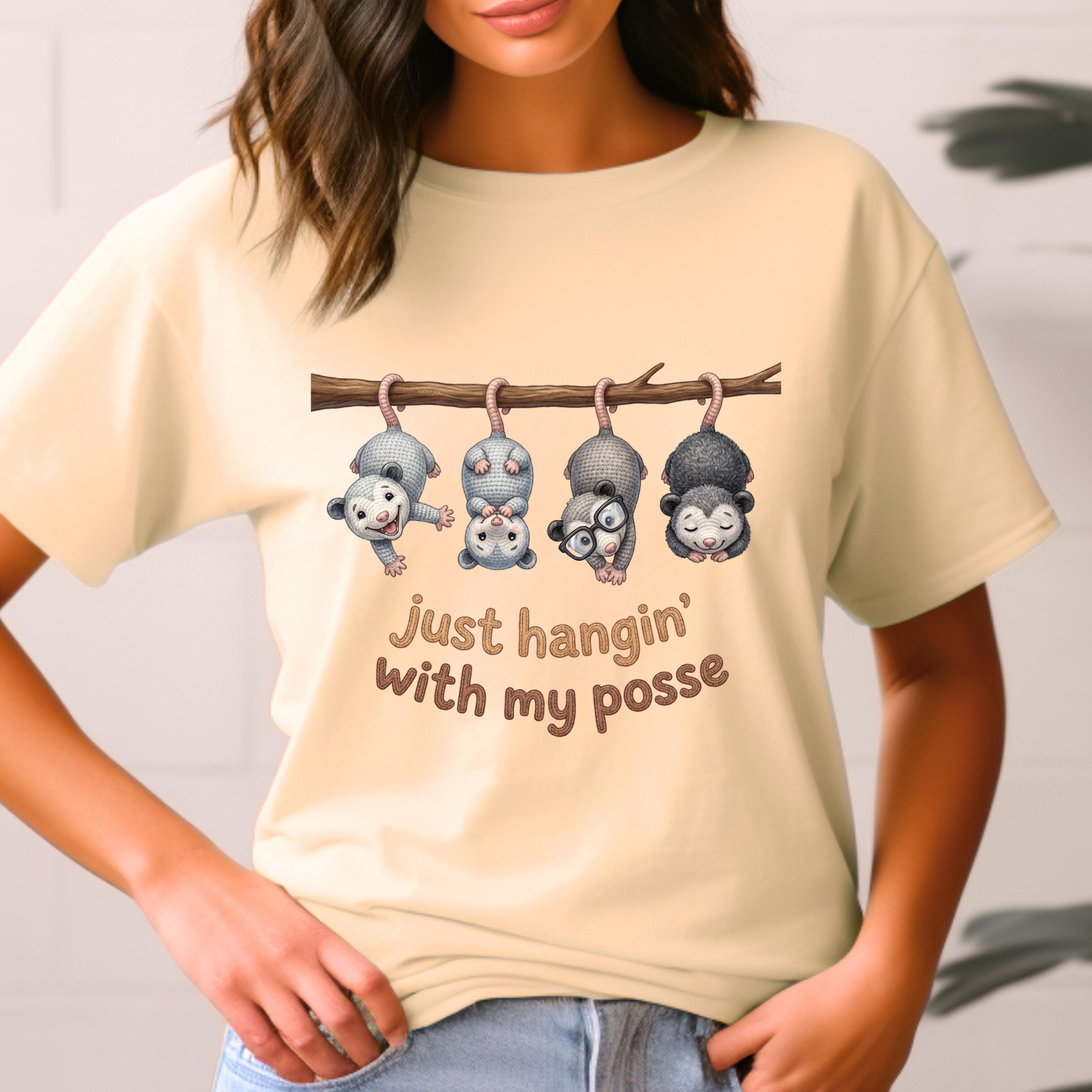 Possum Posse Tee Shirt: Woodland Whimsy Graphic T-Shirt Faux Yarn