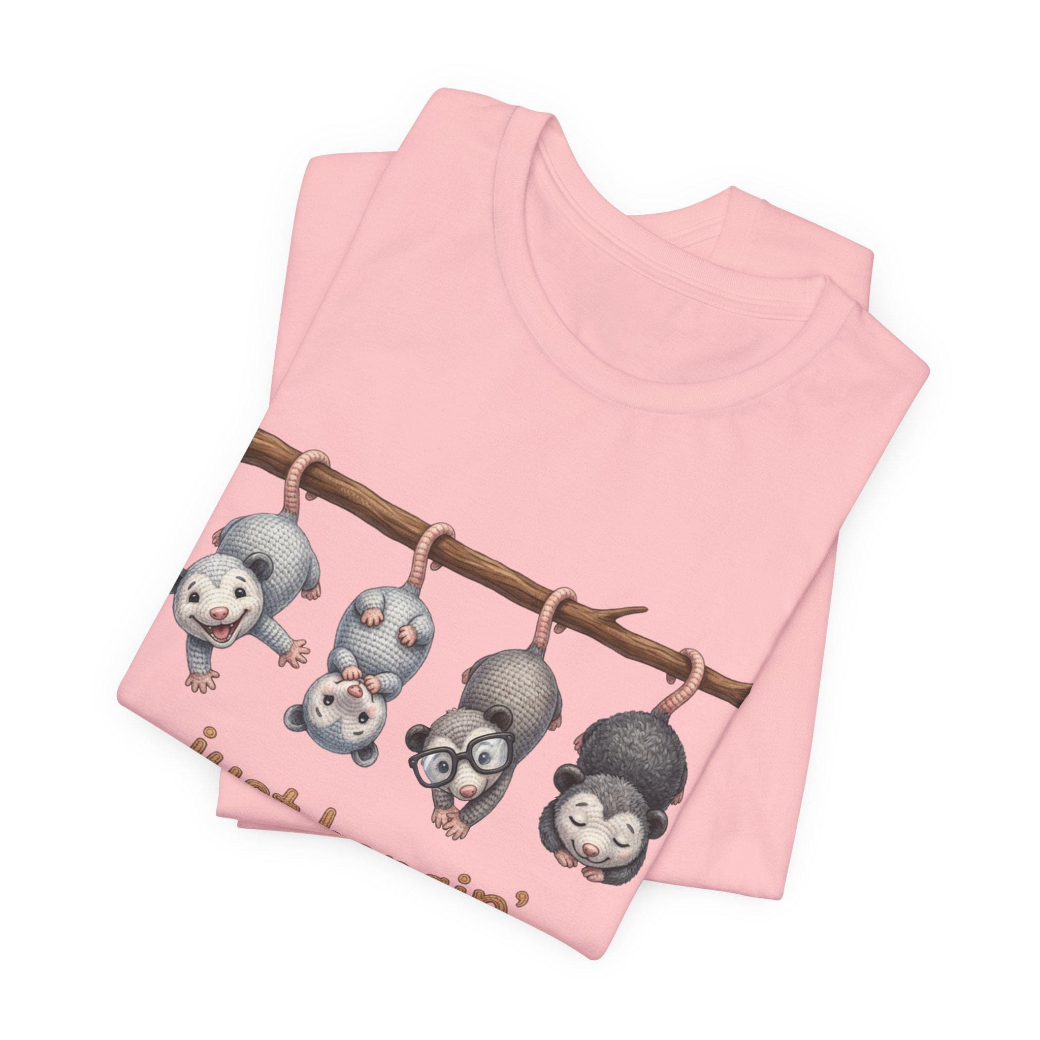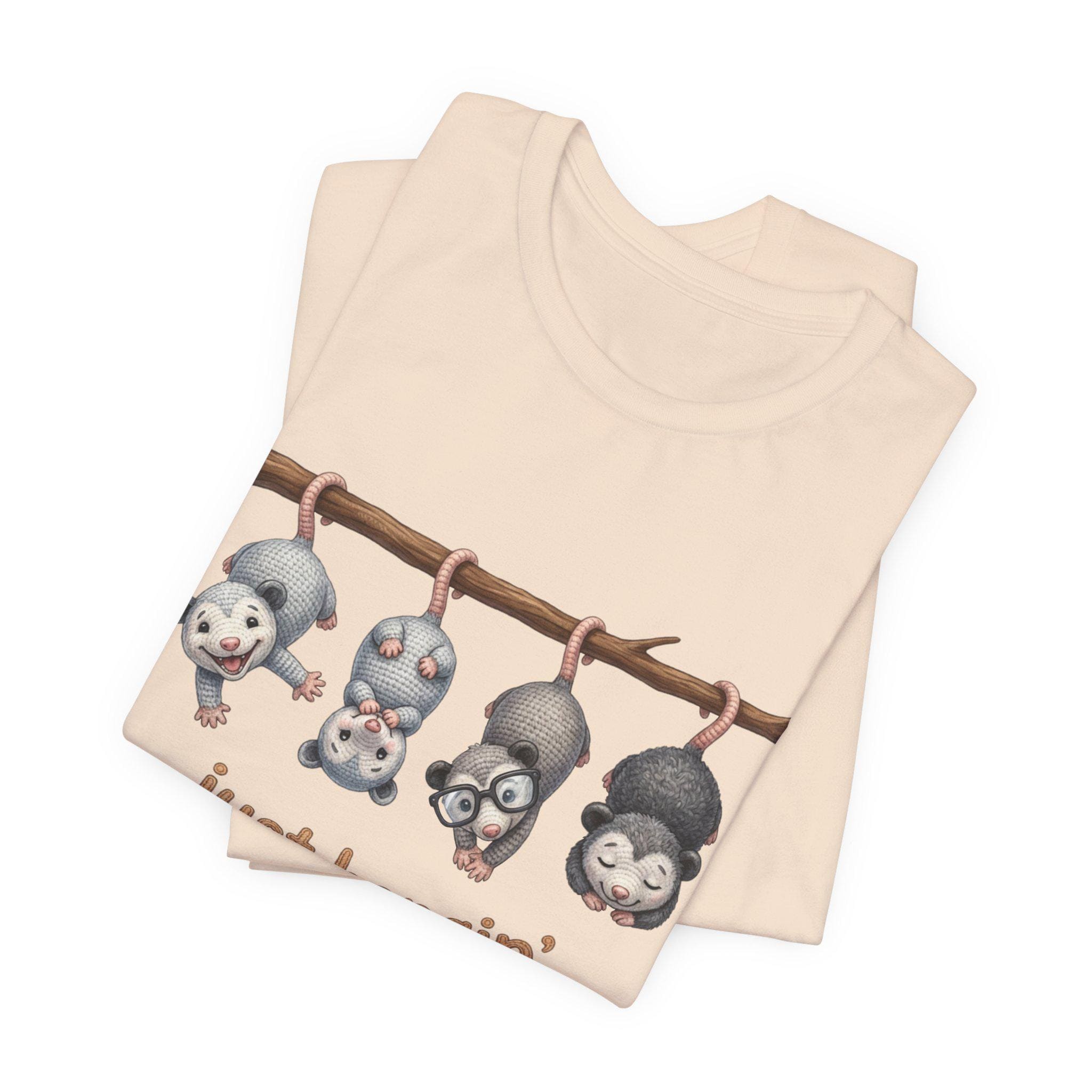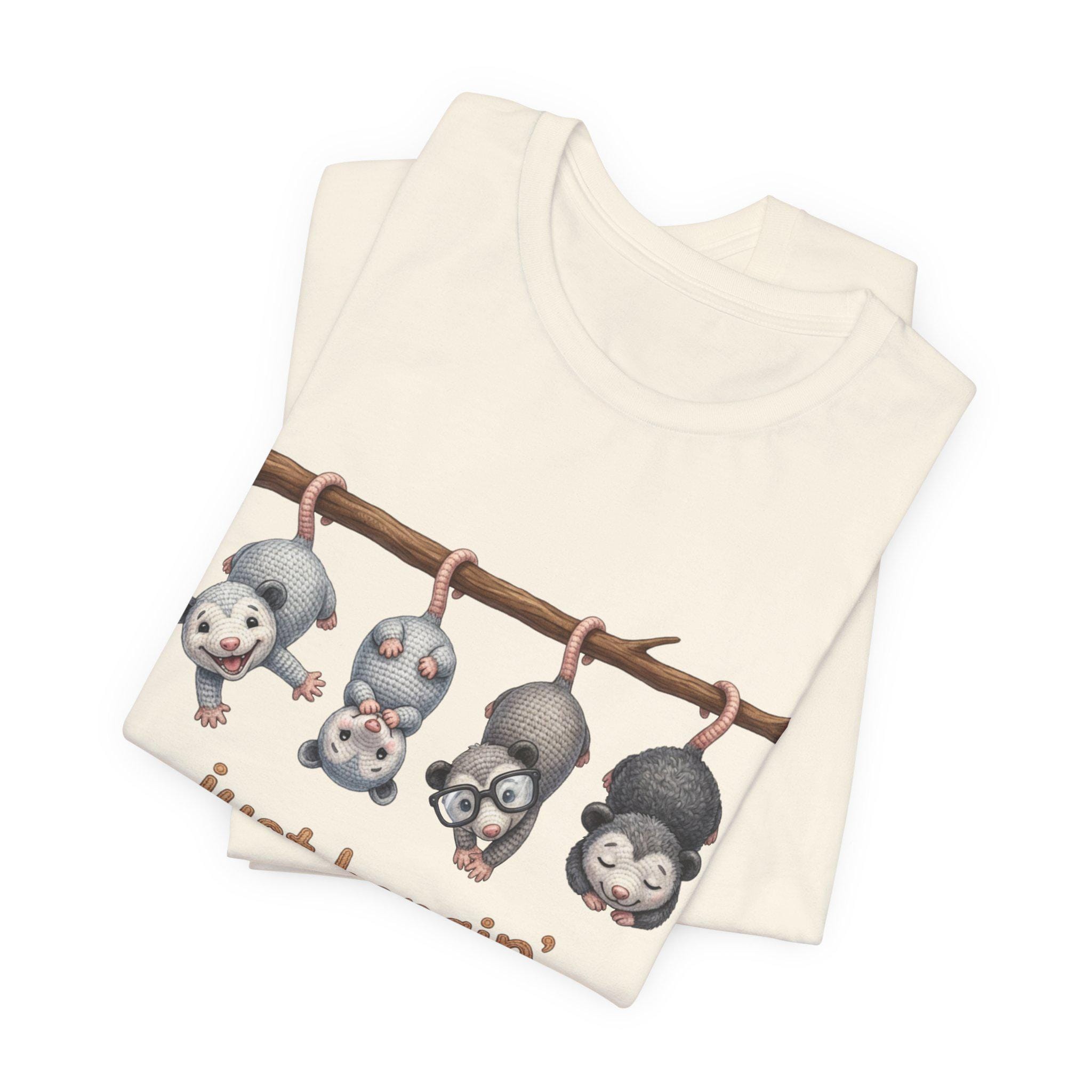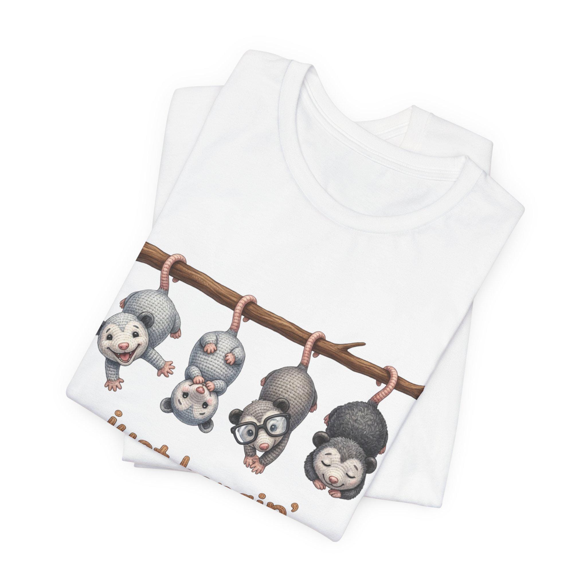 Possum Posse Tee Shirt: Woodland Whimsy Graphic T-Shirt Faux Yarn